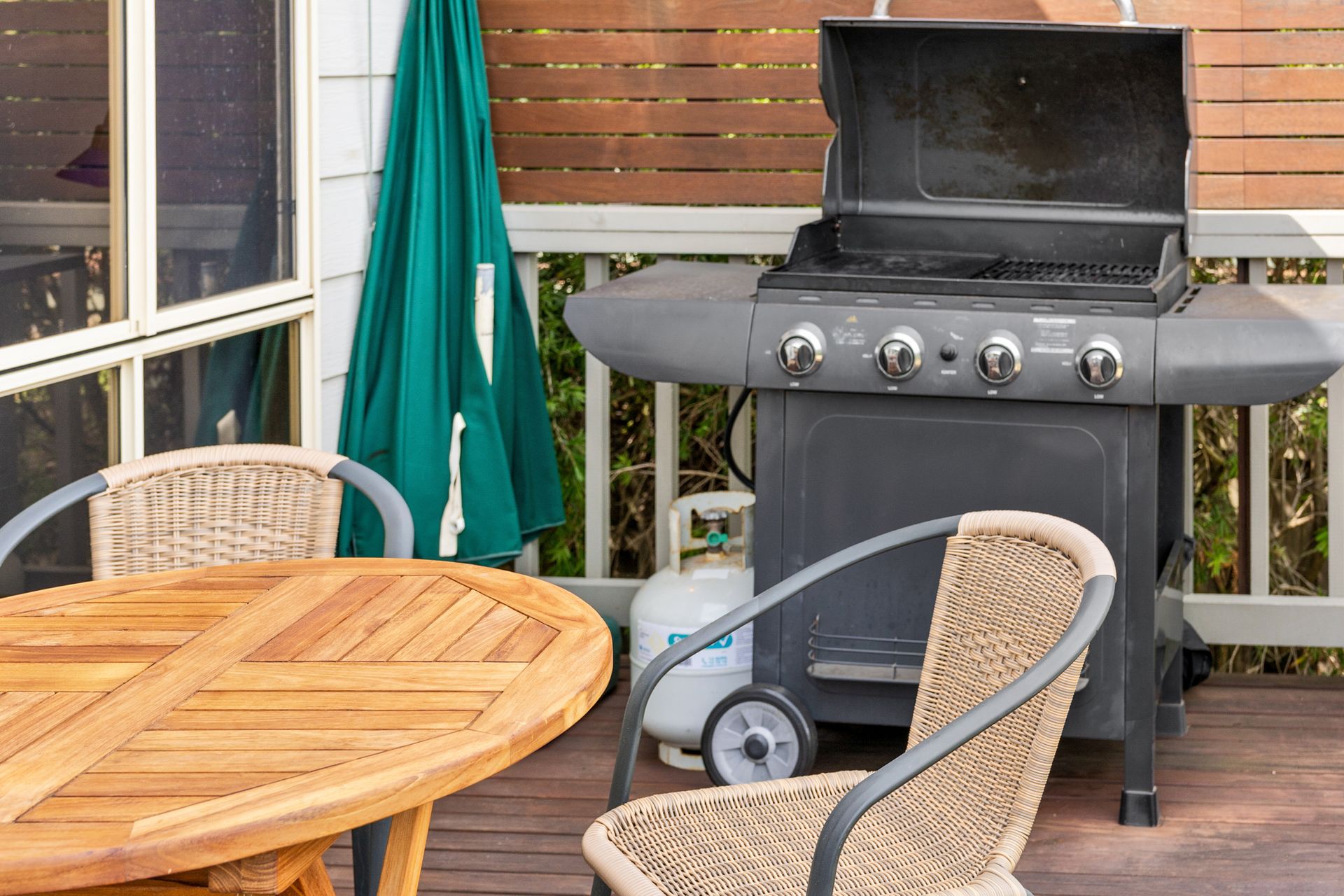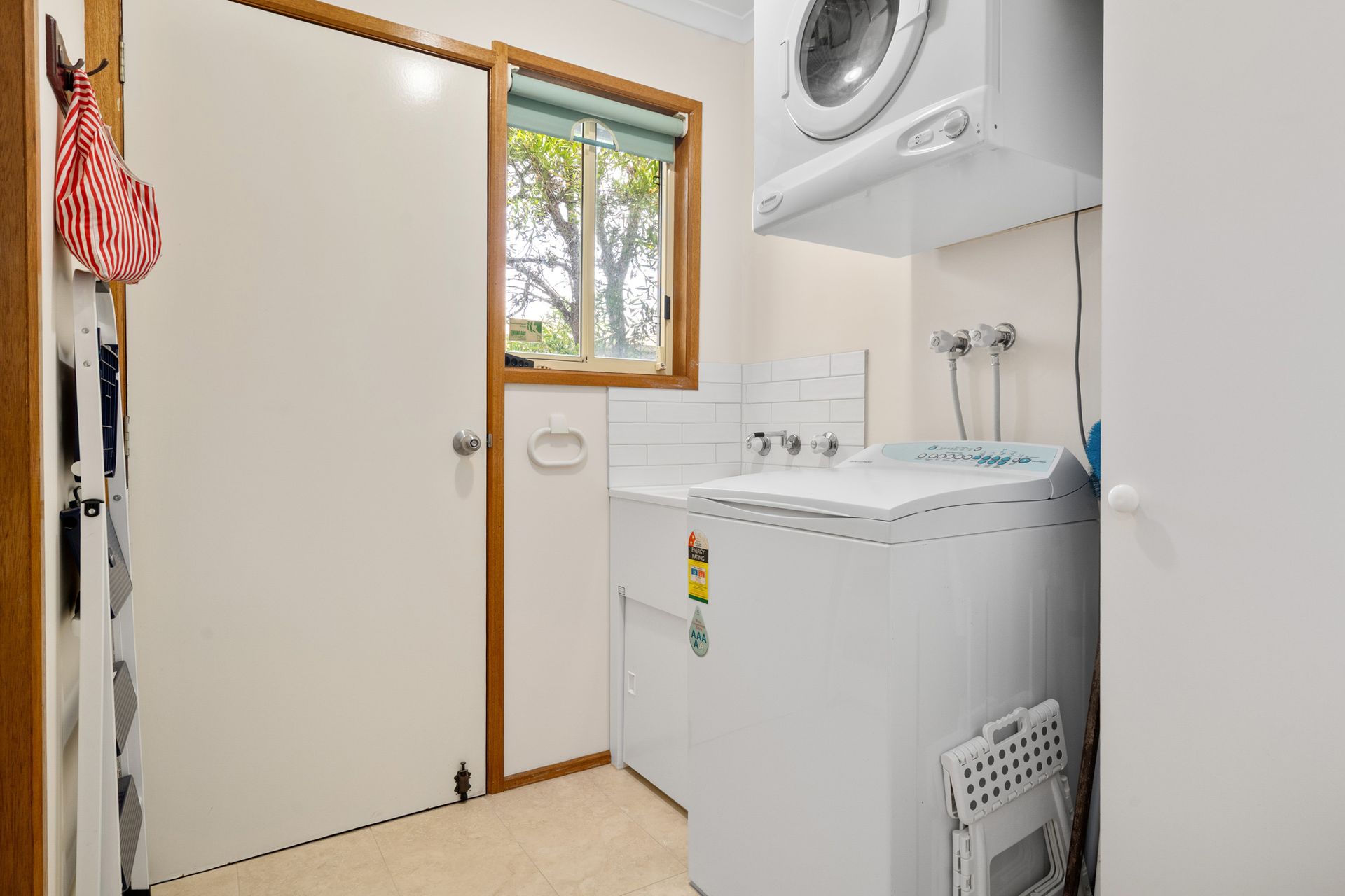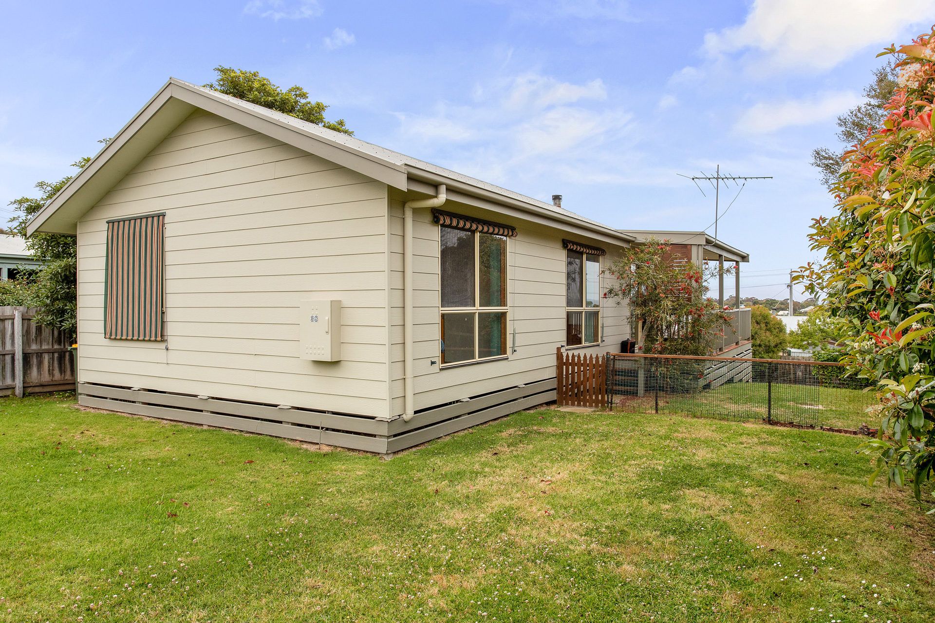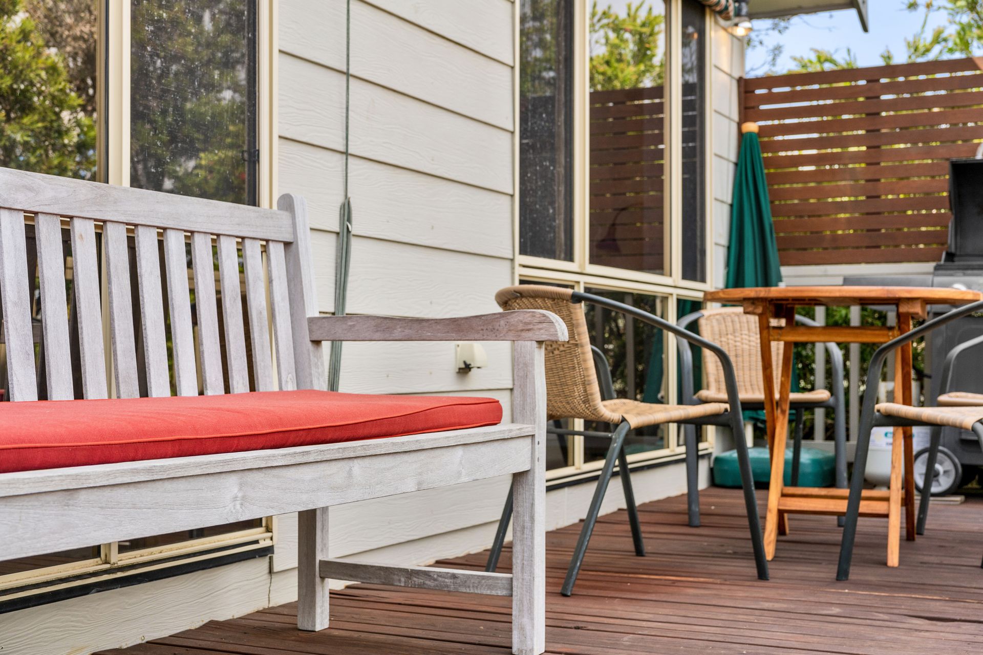 Step onto the rear deck and enjoy distant water views, a gas BBQ, and outdoor setting — perfect for summer evenings. The home includes three comfortable, carpeted bedrooms, a family bathroom, and a well-equipped laundry with washer, dryer, and ironing facilities.