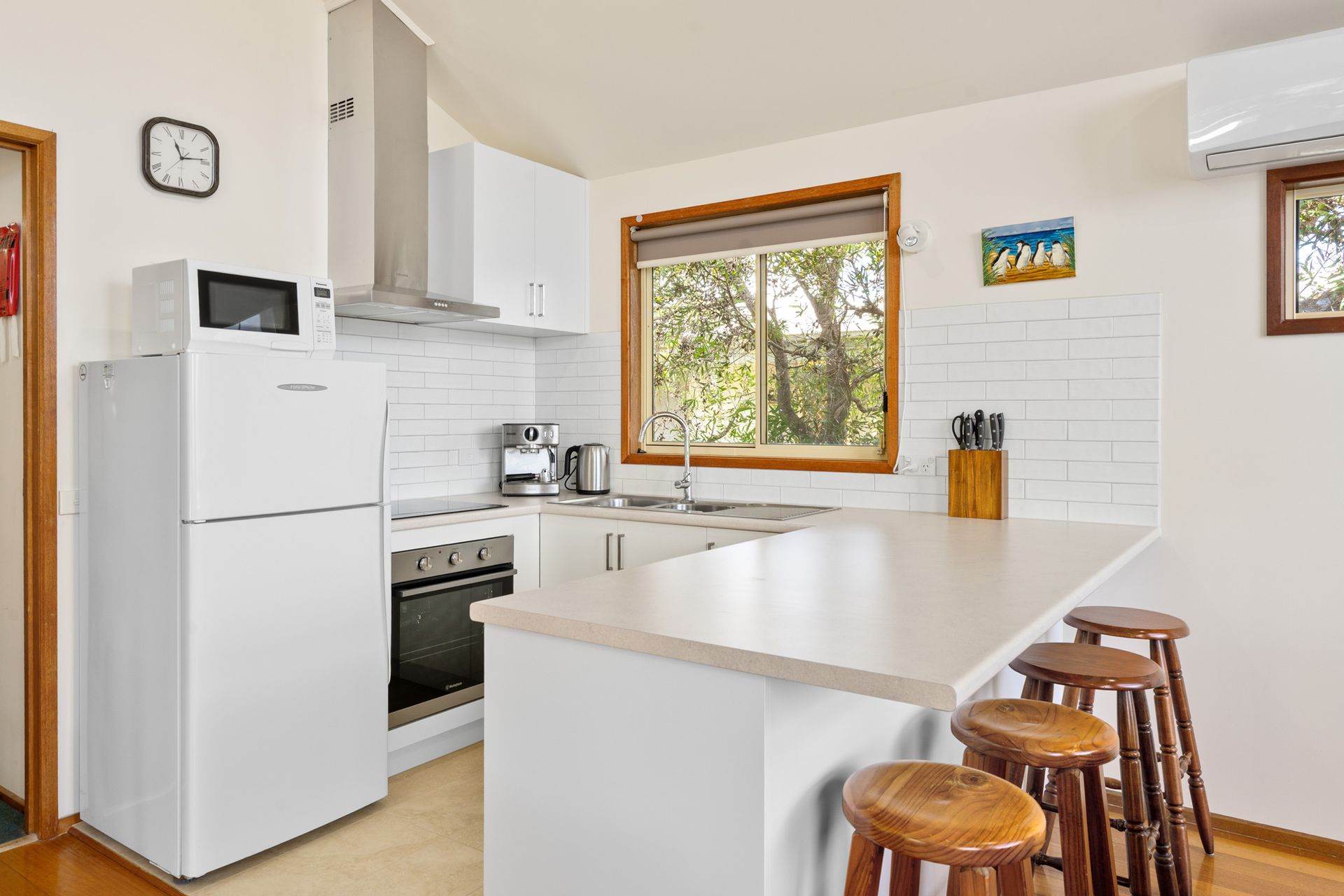 The fully fenced backyard is great for kids, and there’s ample parking for cars or a boat. Pet-friendly (outside only, by application). Sleeps 6. Just a short drive to the Penguin Parade, Grand Prix Circuit, and Cowes town centre.