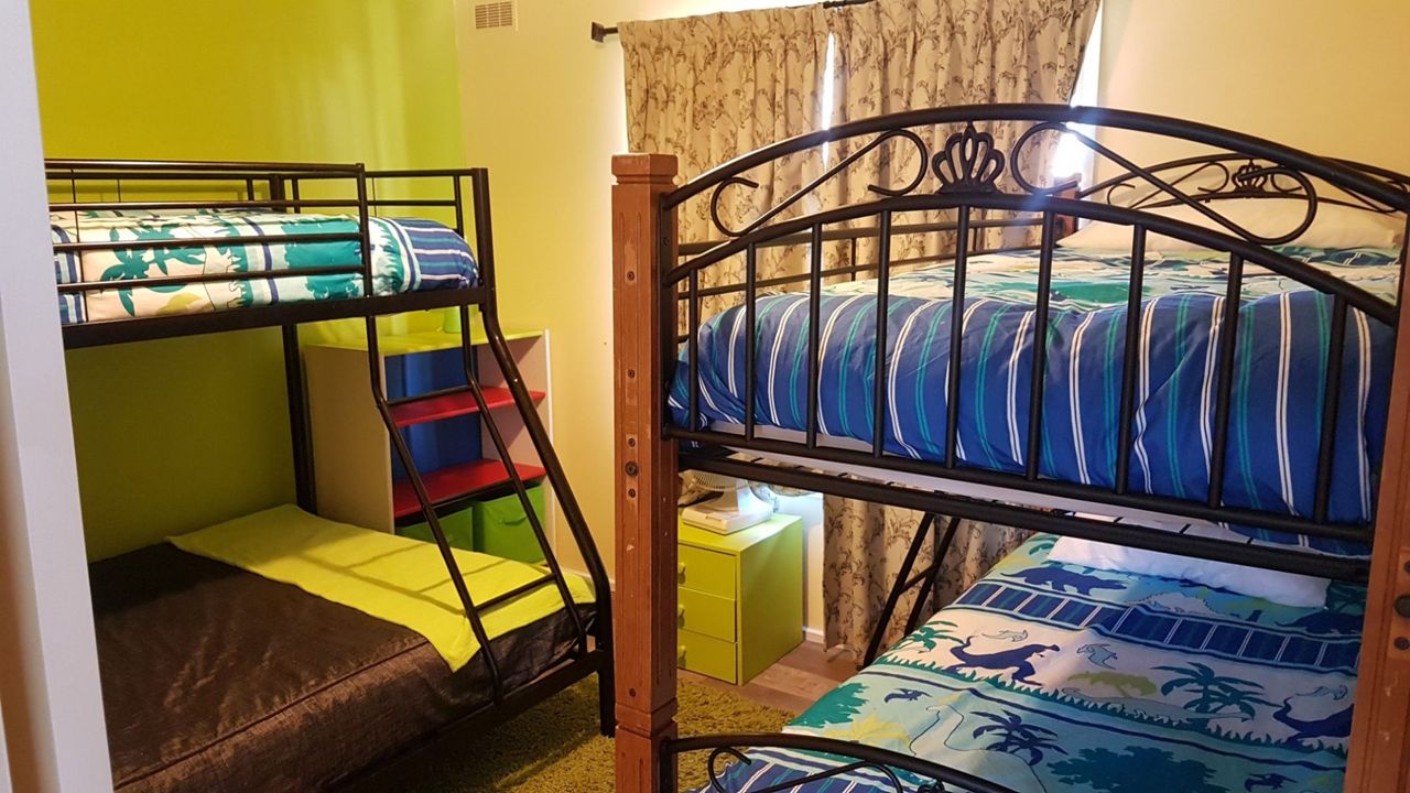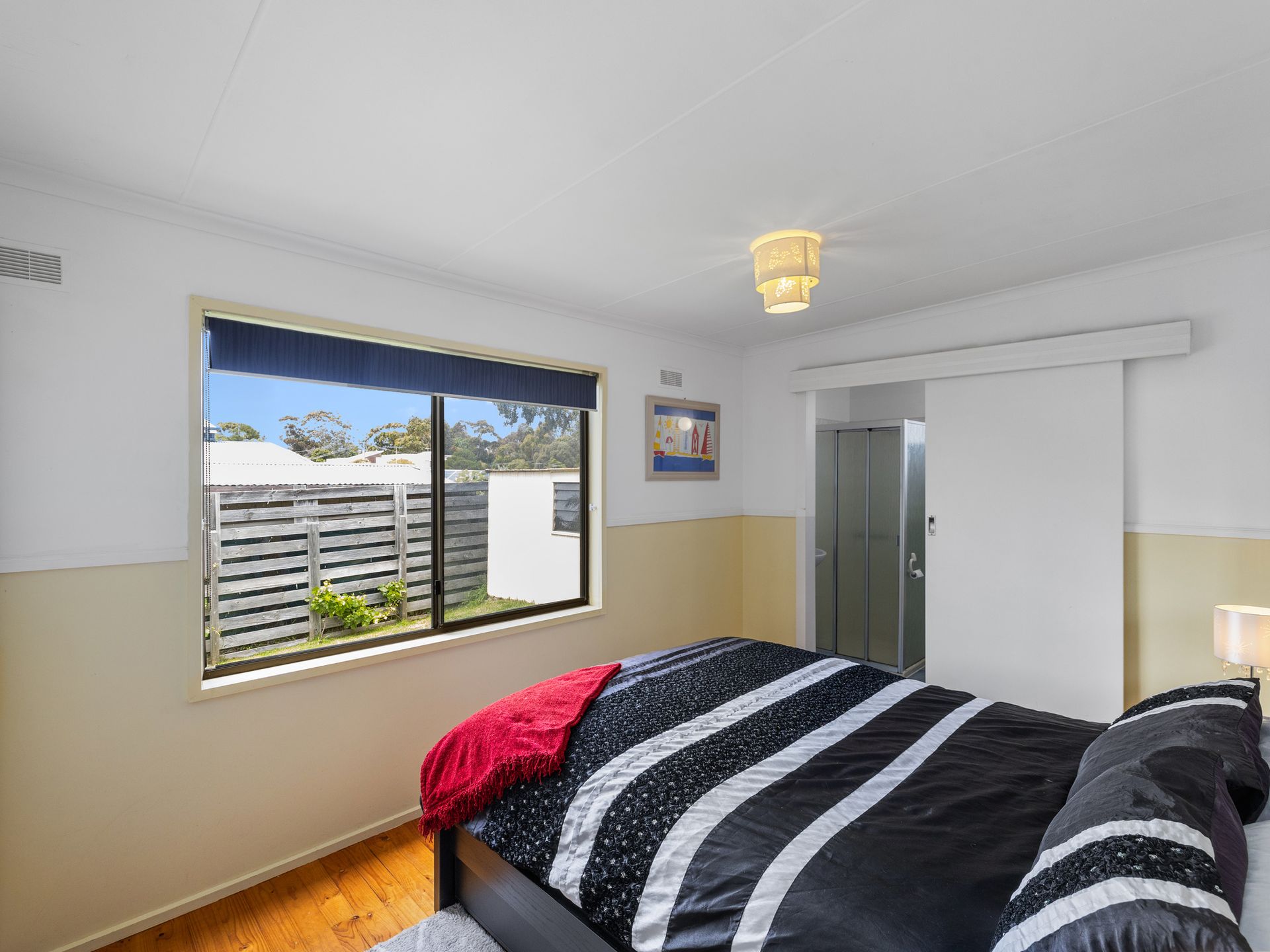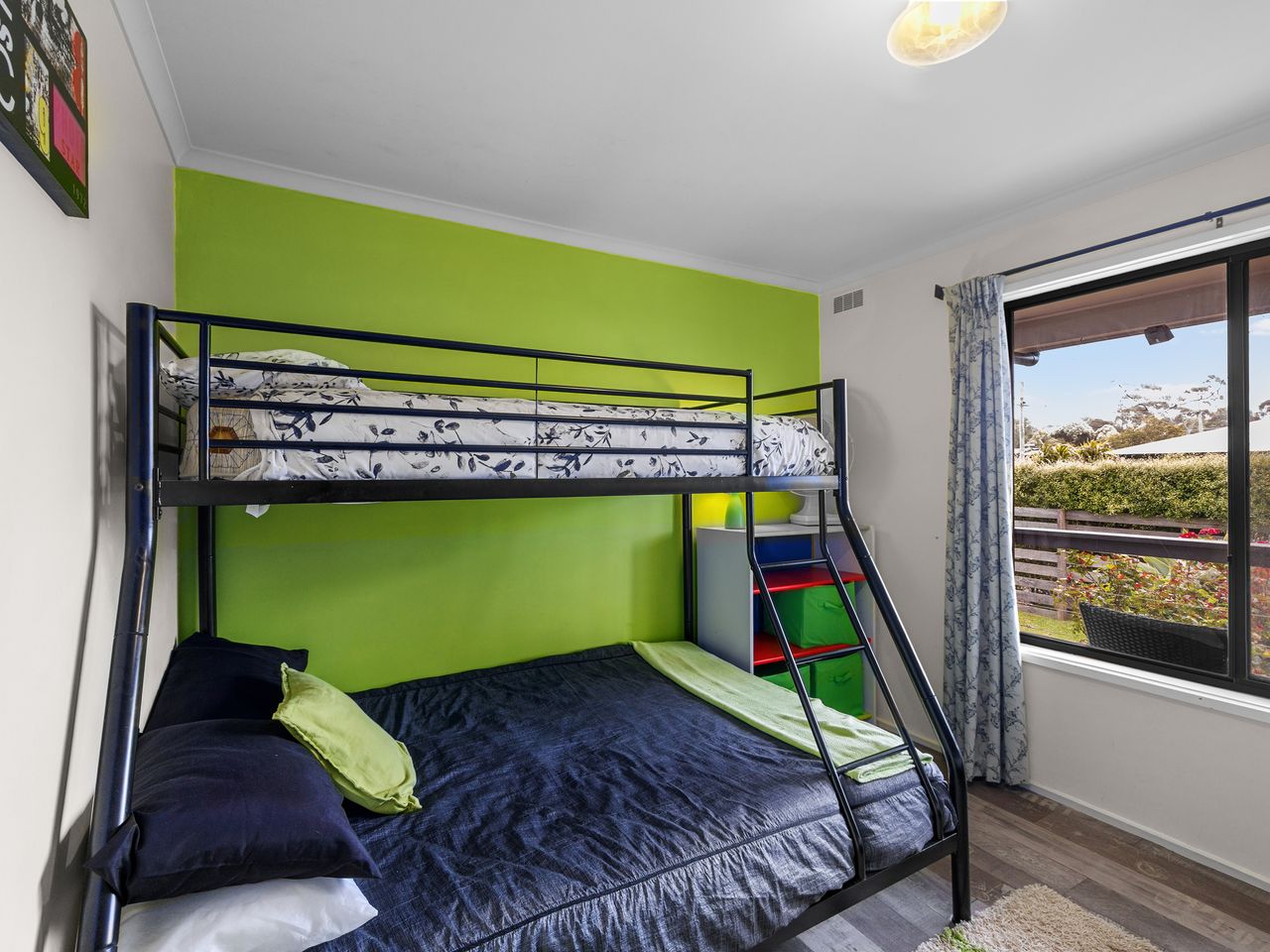 There are three bedrooms to accommodate your group: the main bedroom includes a queen bed along with built-in robes and an ensuite, the second bedroom features a double bed and the third bedroom offers two sets of single bunks—ideal for kids or additional guests.