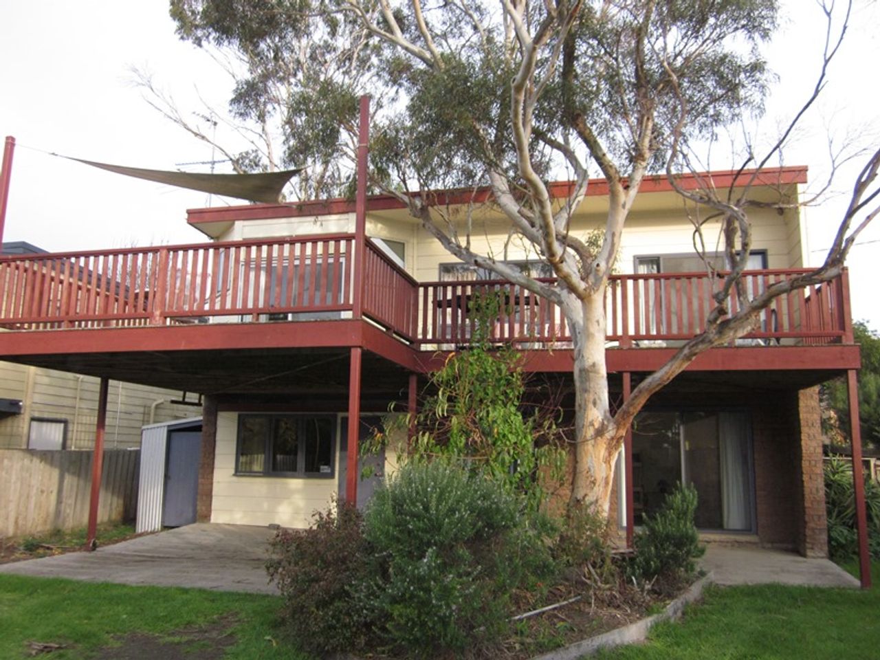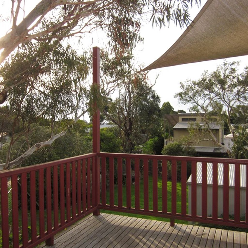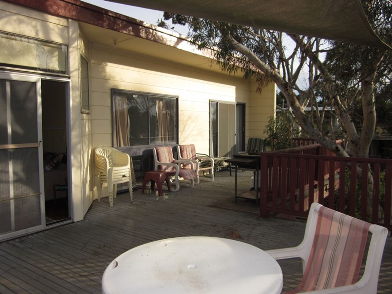 The main living is on the top floor with open plan living and kitchen area, there is gas heating as well as a split system heating and cooling unit, comfortable sofas and a tv and DVD player, the main lounge has sliding doors opening on to the large deck. The kitchen is well equipped with electric cooking and a microwave and there is a central dining table.