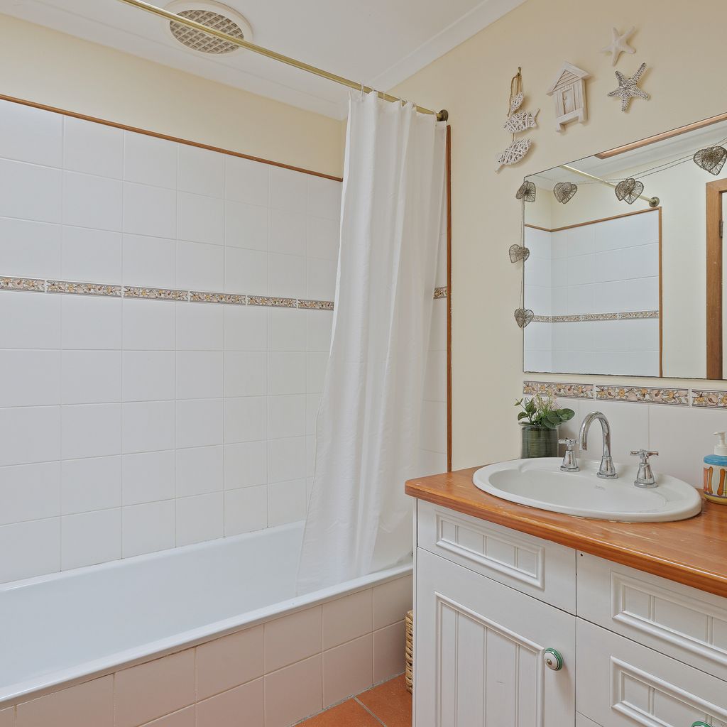 The property boasts four bedrooms, three of which are located on the second level. These include two queen beds and a tri-bunk (double on bottom, single on top), making it perfect for families. Also on this level is the main bathroom with a combined bath and shower, a separate toilet, and a laundry for added convenience.