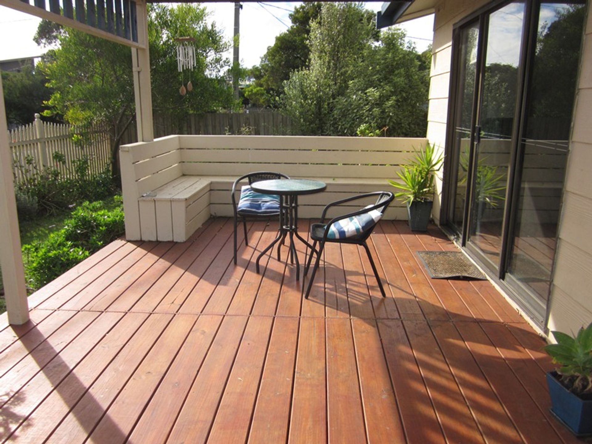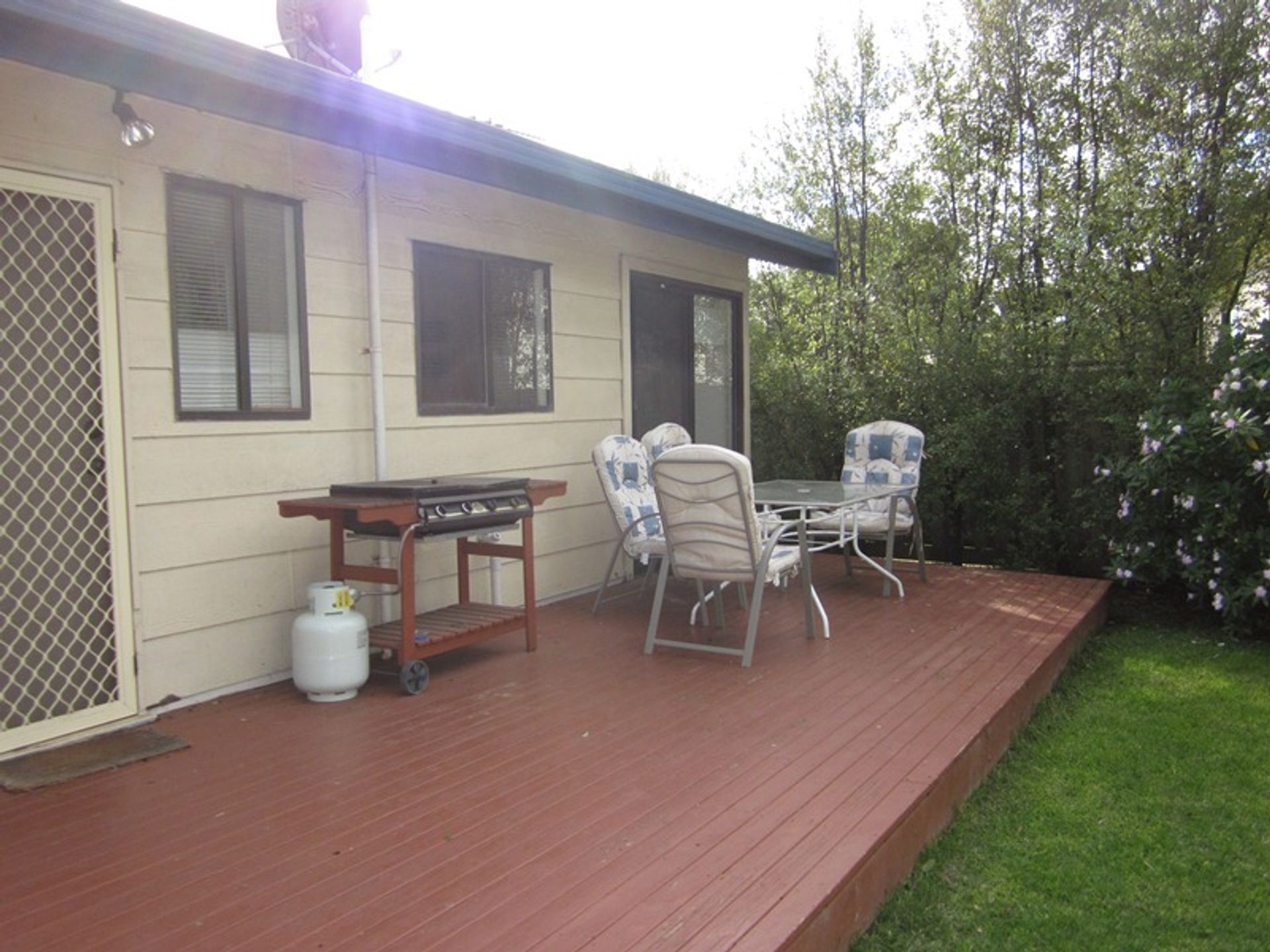 A great feature of this property are the 2 decks one at the front and one at the back of the house, The front deck is perfect for alfresco breakfasts and the back deck has the gas bbq and outdoor setting. The yard is a good size with a large grassy area, the large double garage is available for guest use and pets are considered, but must be kept outside (conditions apply).
