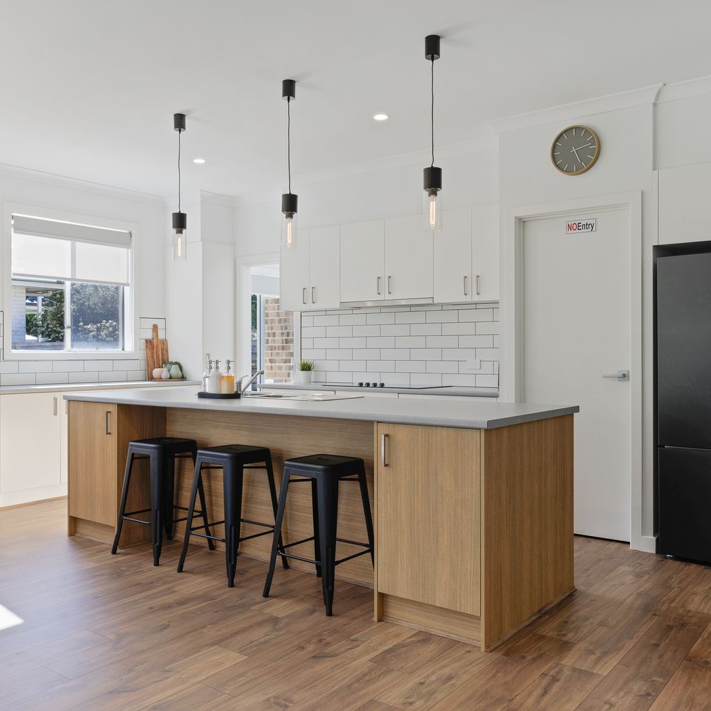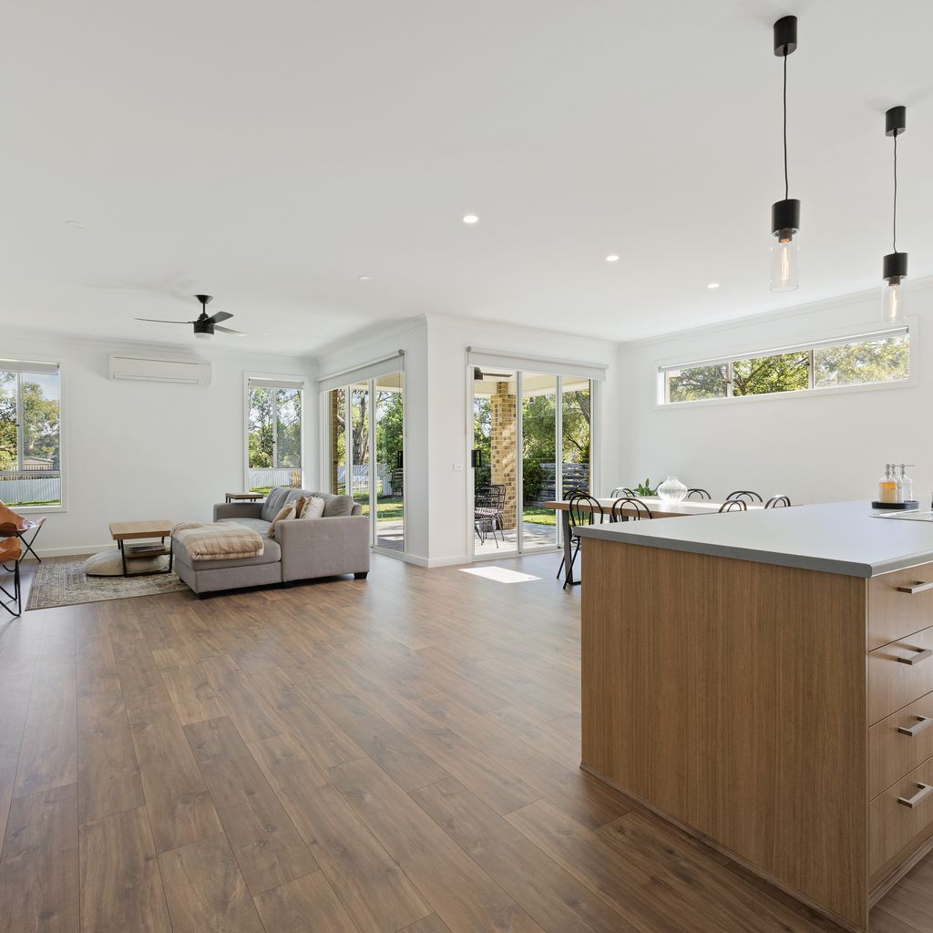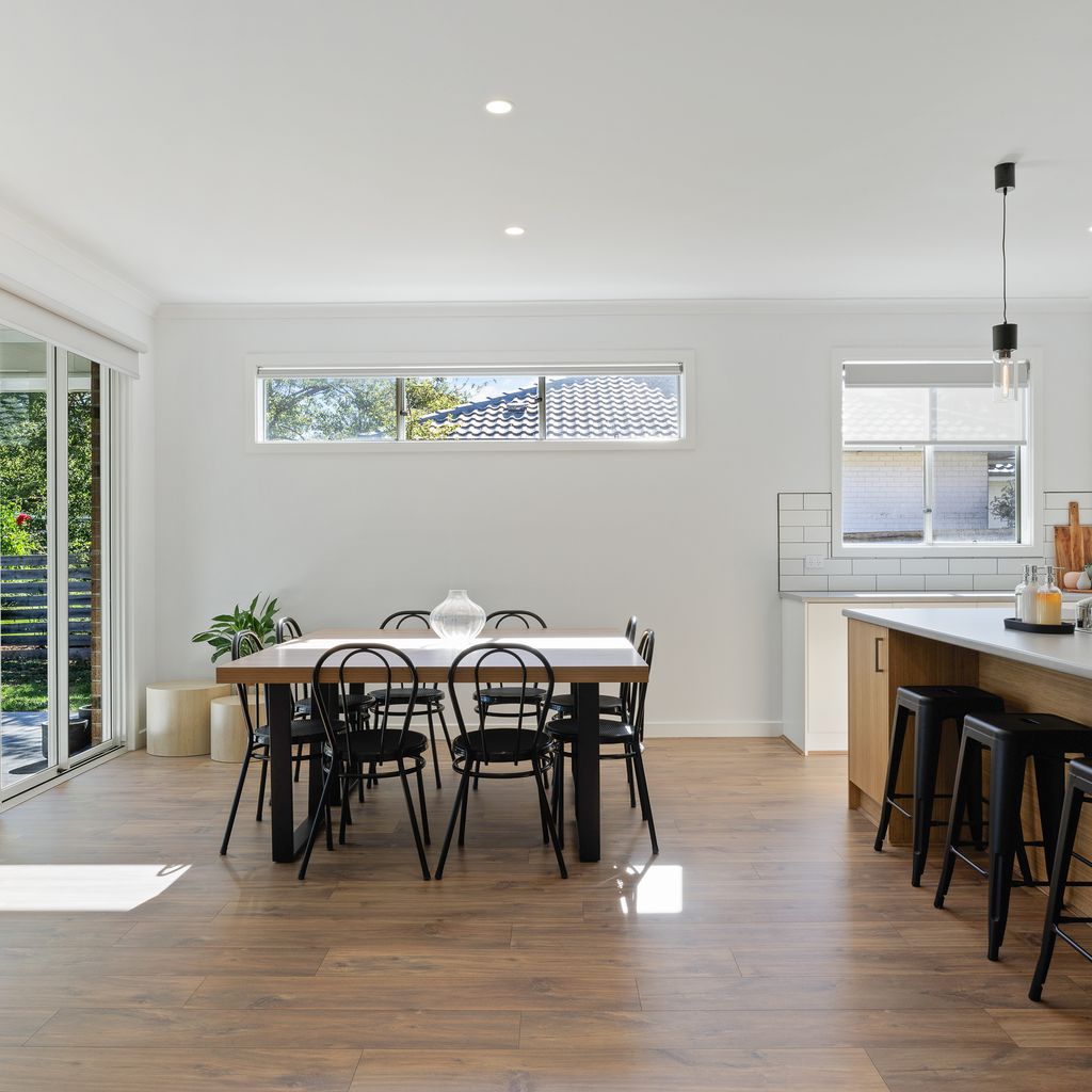With an abundance of natural light, the main living/dining room accommodates the modern kitchen including dishwasher and plenty of space for the family to enjoy.