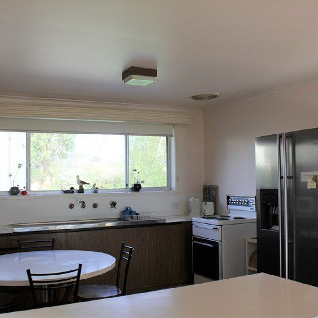 This is a cosy four bedroom brick home, featuring an open living area with kitchen including electric cooking and microwave, dining table and chairs. The living area has a Tv, Dvd, video and split system for heating / cooling. The large windows keep the sun streaming in and open up to the front balcony.