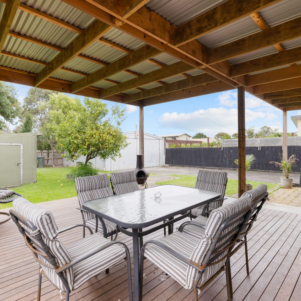 Sit outside under the covered deck area and have a bbq and drinks any time of year with the warming chimenea. Or just relax with a book and watch the kids run around the large fenced backyard.