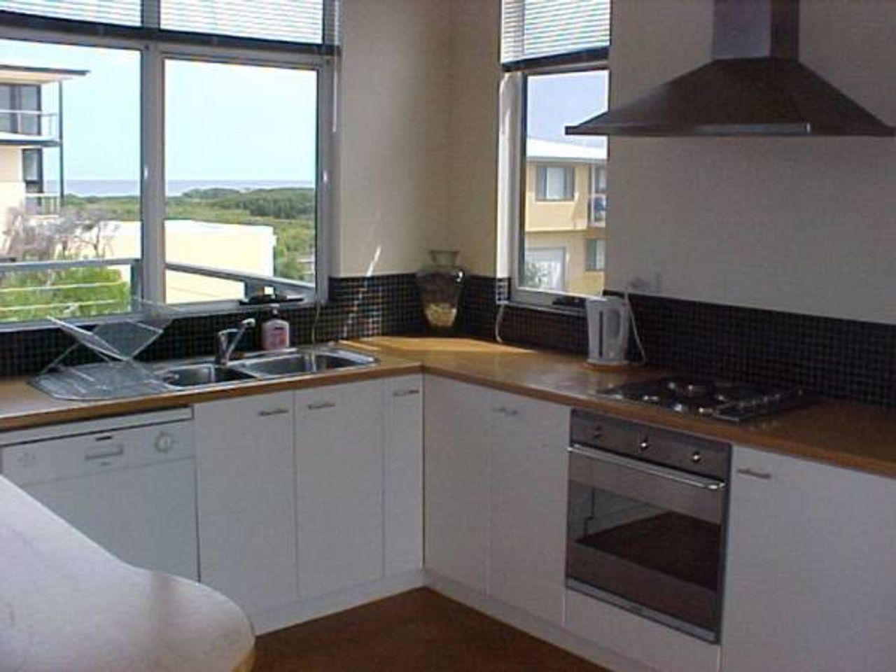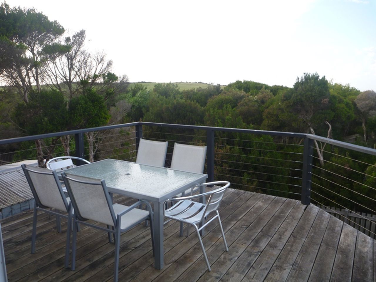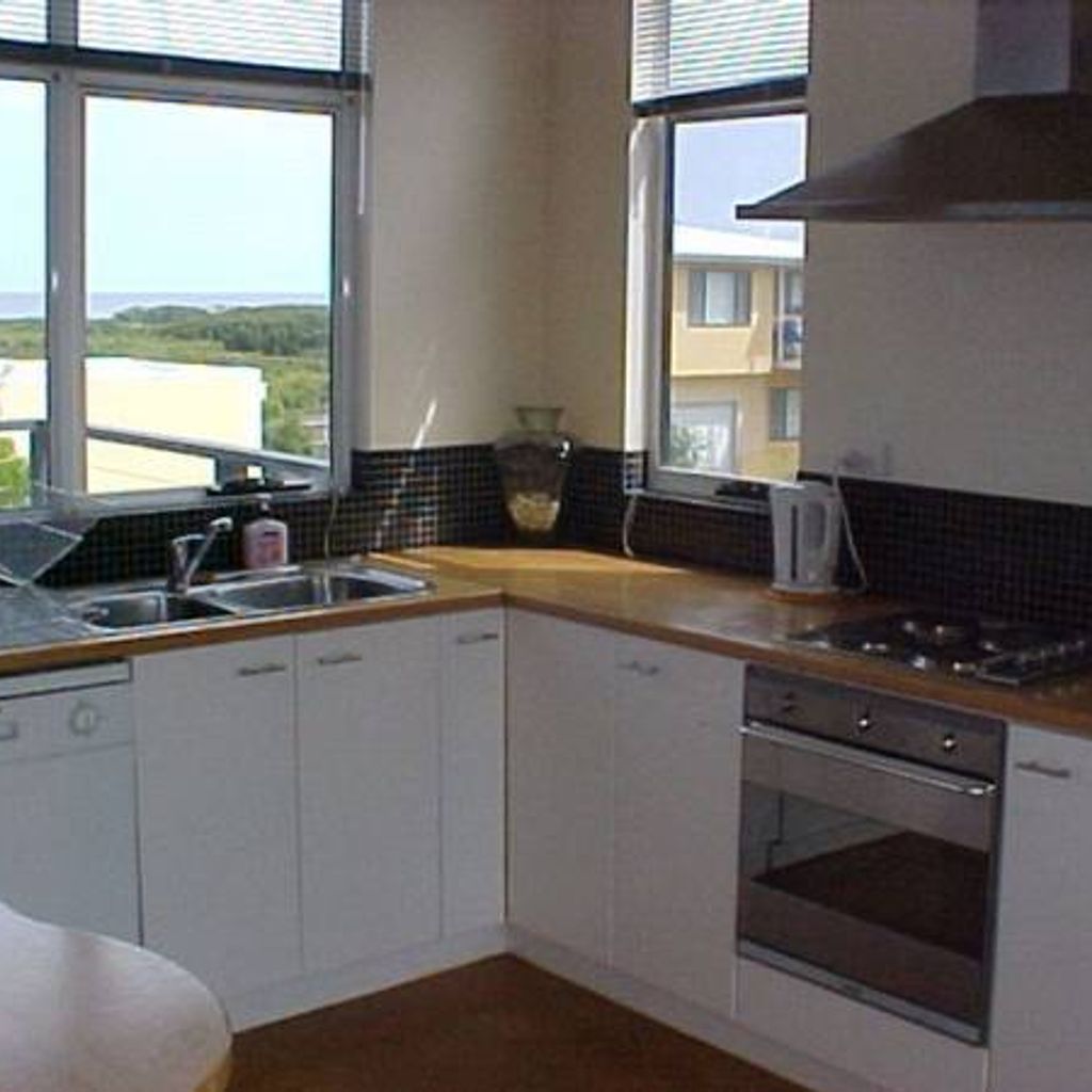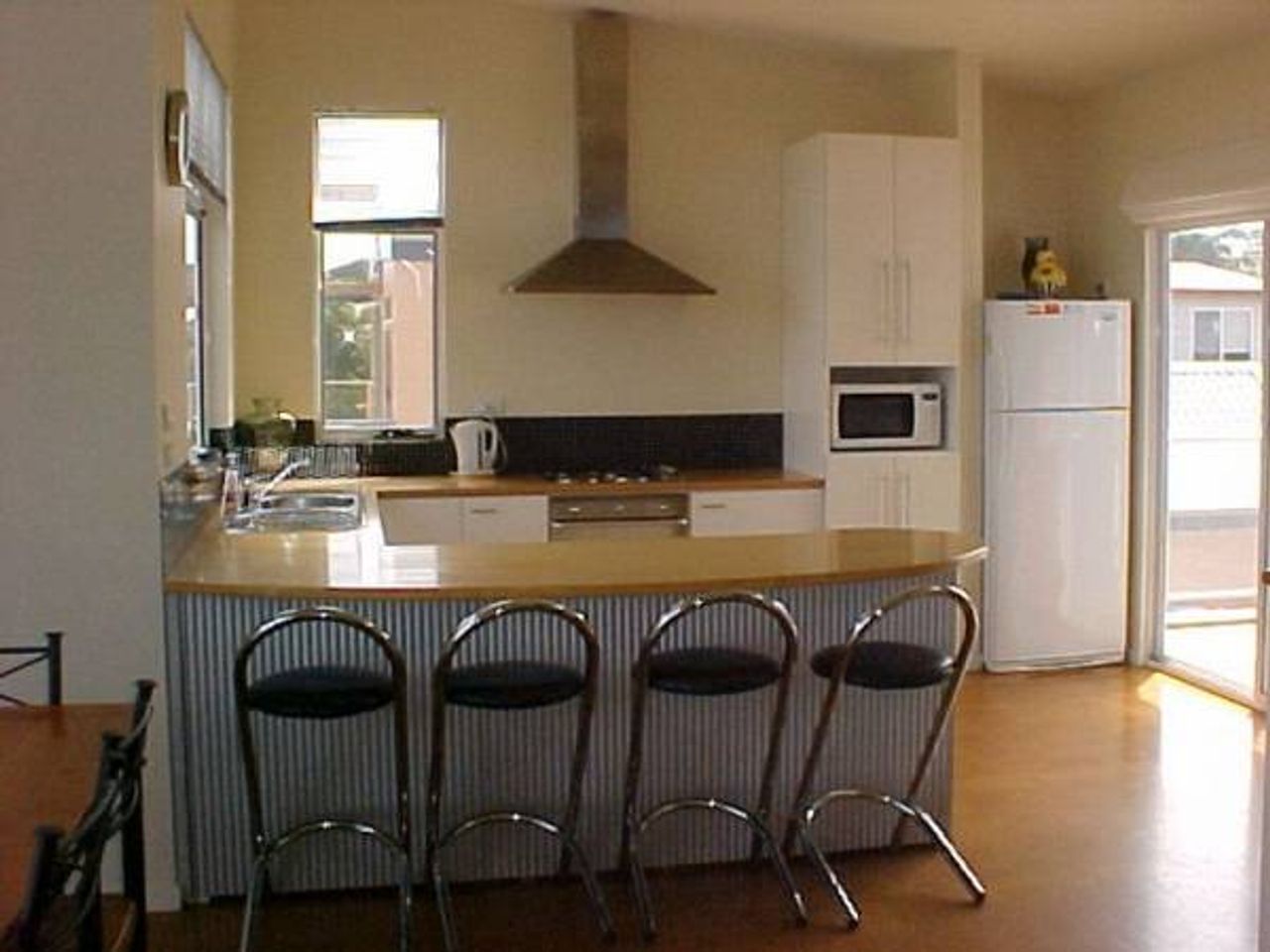 The upstairs living dining kitchen area is open and sunny and opens up to either deck areas. Featuring Tv and Dvd, comfortable sofas, well equipped kitchen with electric cooking, microwave and dishwasher and kitchen bench with 4 stools.