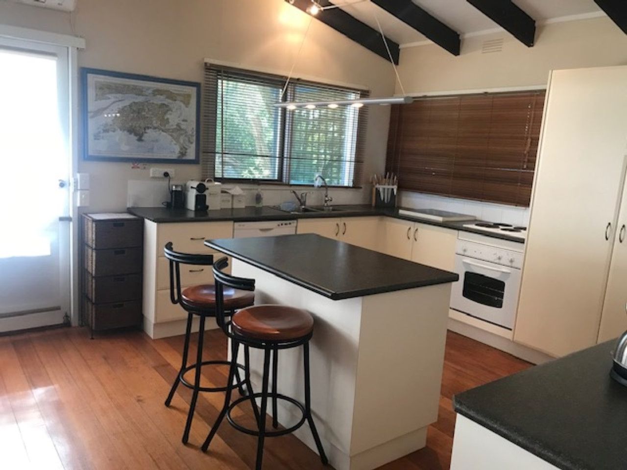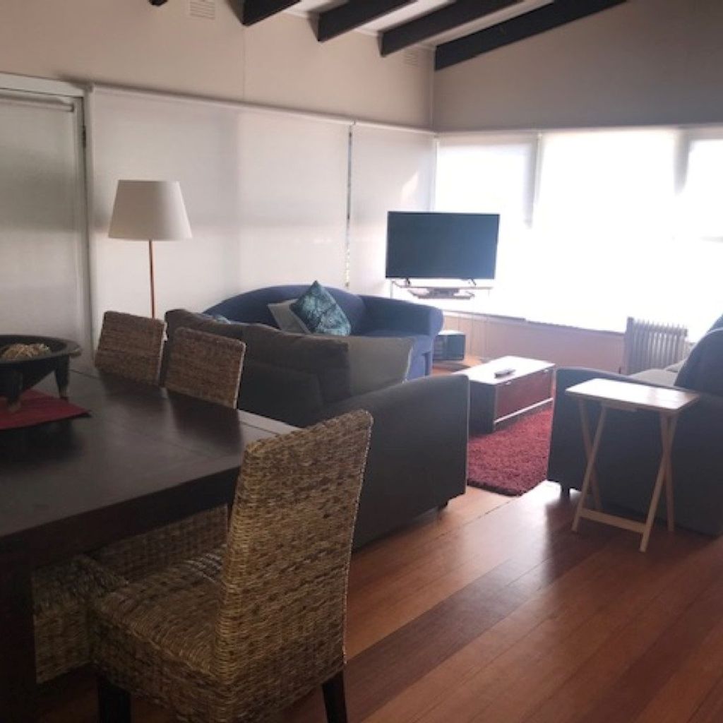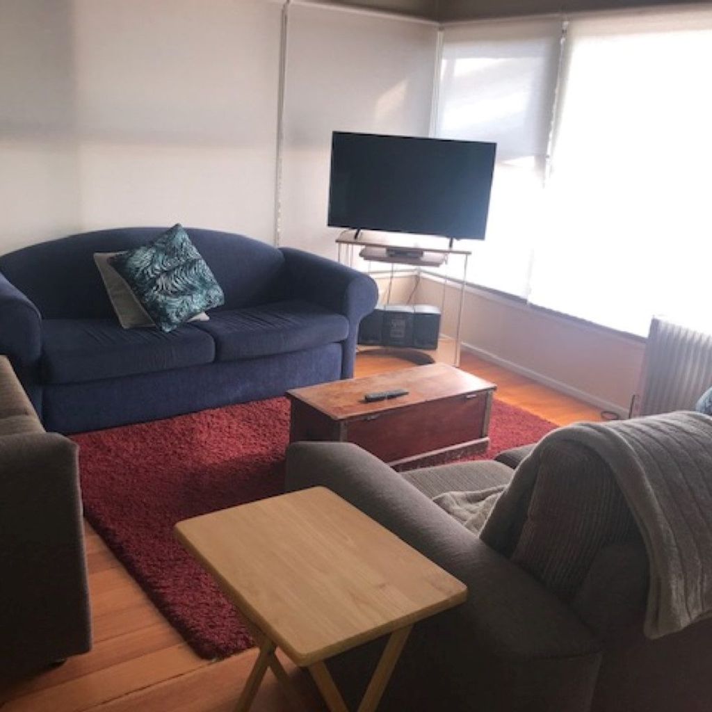 A lovely, sunny and well equipped property. There is a great deck with BBQ and outdoor setting surrounded by a large fully fenced garden. The lounge is open plan with tv and dvd, comfortable sofas and large dining table. The kitchen has electric cooking, microwave and dishwasher and all you will require to cook up a storm and feed the family. There is split system heating and cooling in the lounge and extra portable electric heating. One couch converts to a sofa bed for extra guests.