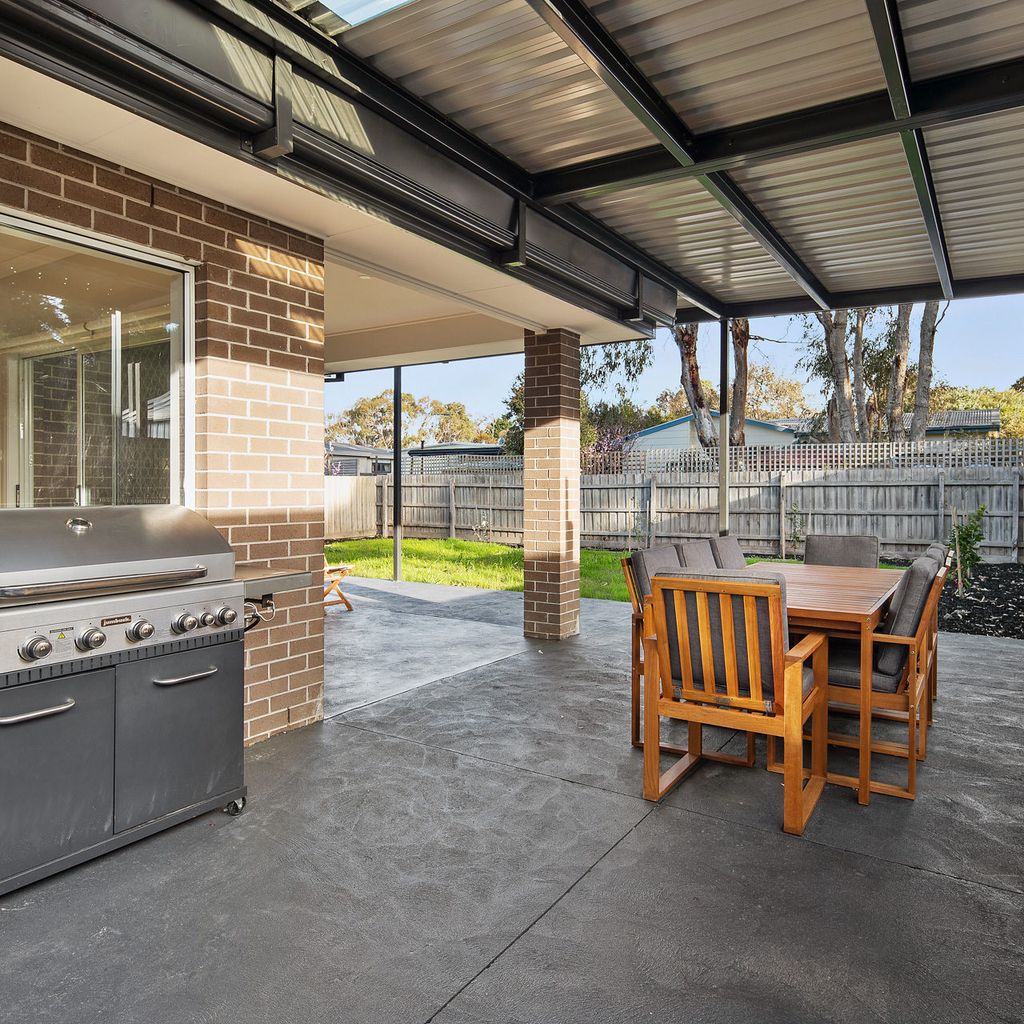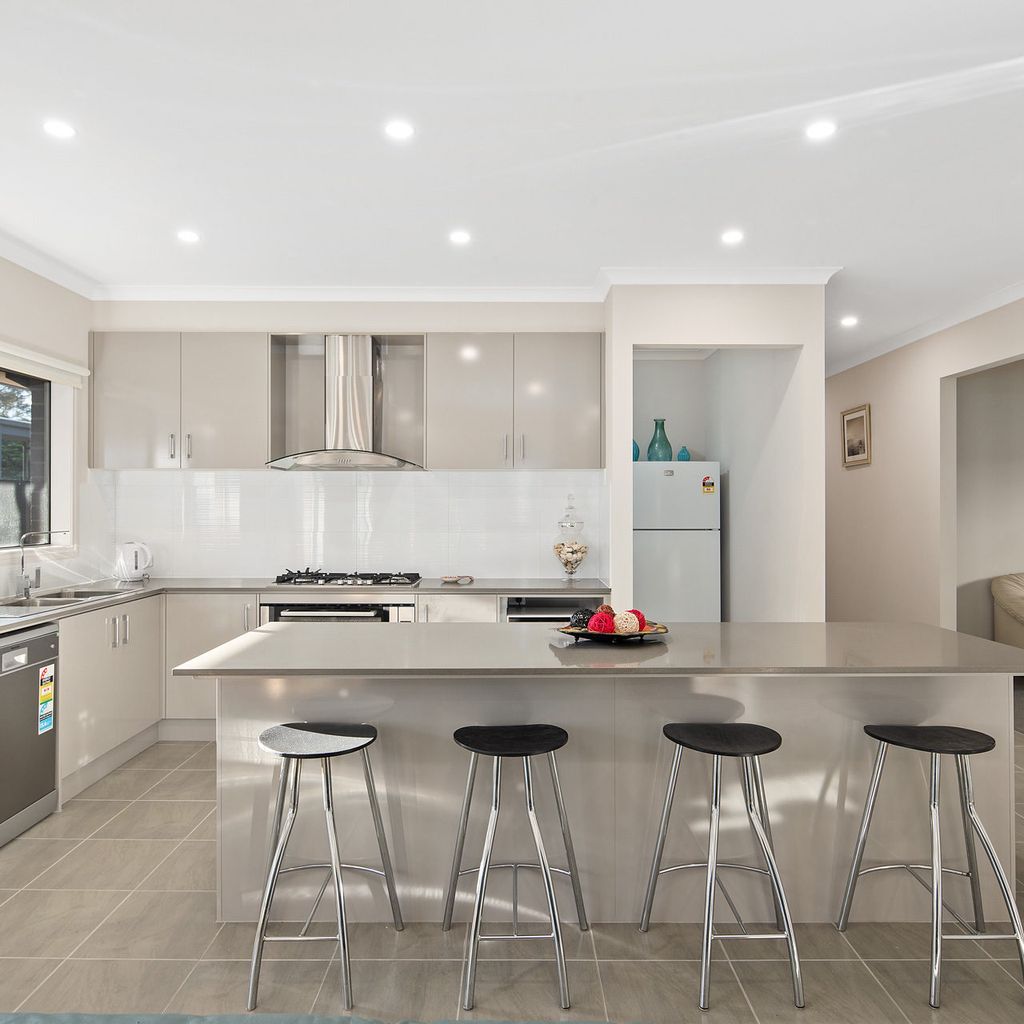 The open living area has a large fully contained kitchen with walk-in pantry and dishwasher, plenty of seating to enjoy a meal and the lounge area has ample chairs so everyone can relax and watch tv or enjoy a movie together. Glass sliding doors off the lounge lead out onto the spacious undercover area and is the perfect space to enjoy a family bbq and watch the kids play in the secure back yard. There is also a table tennis table for everyone to enjoy.