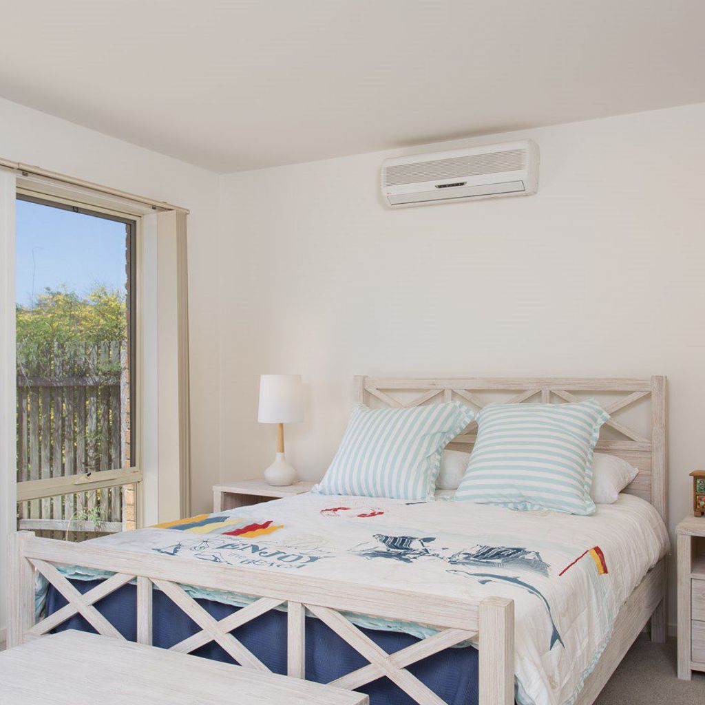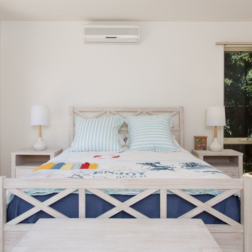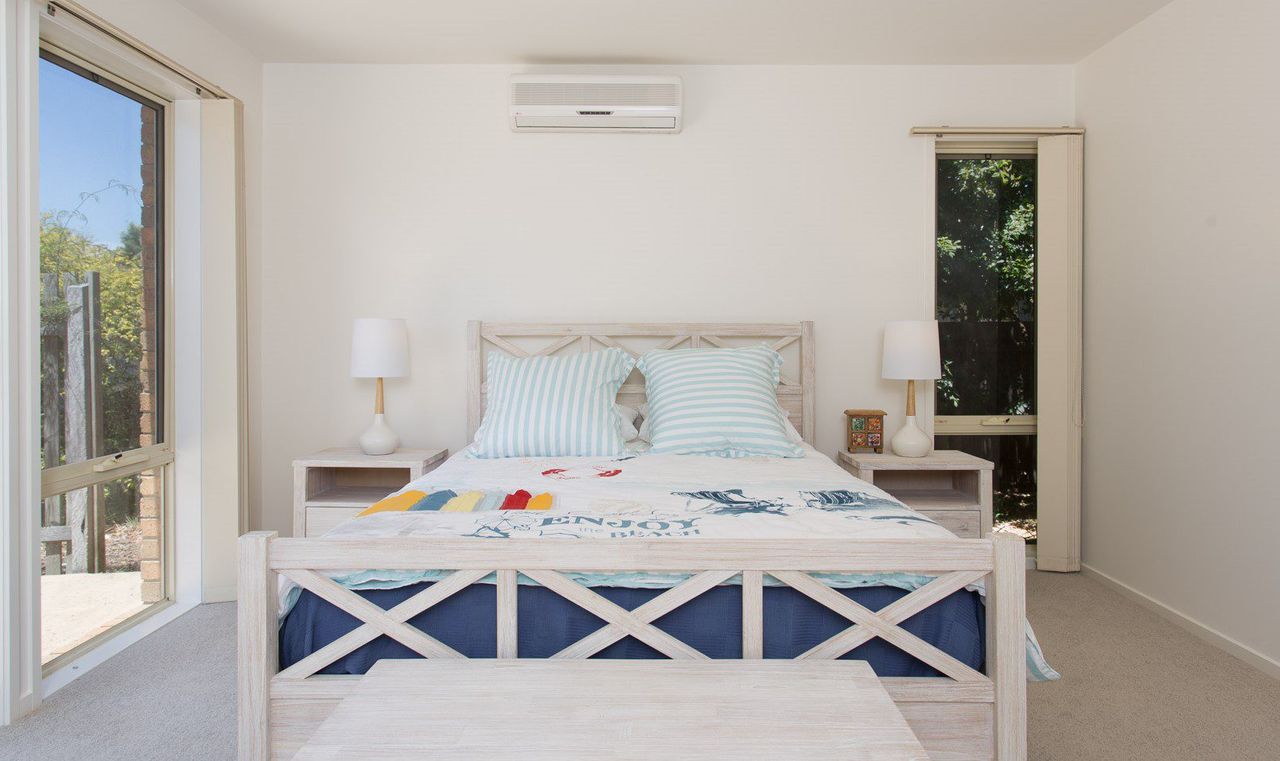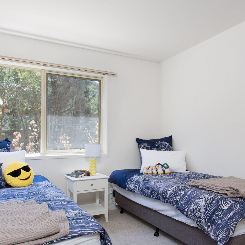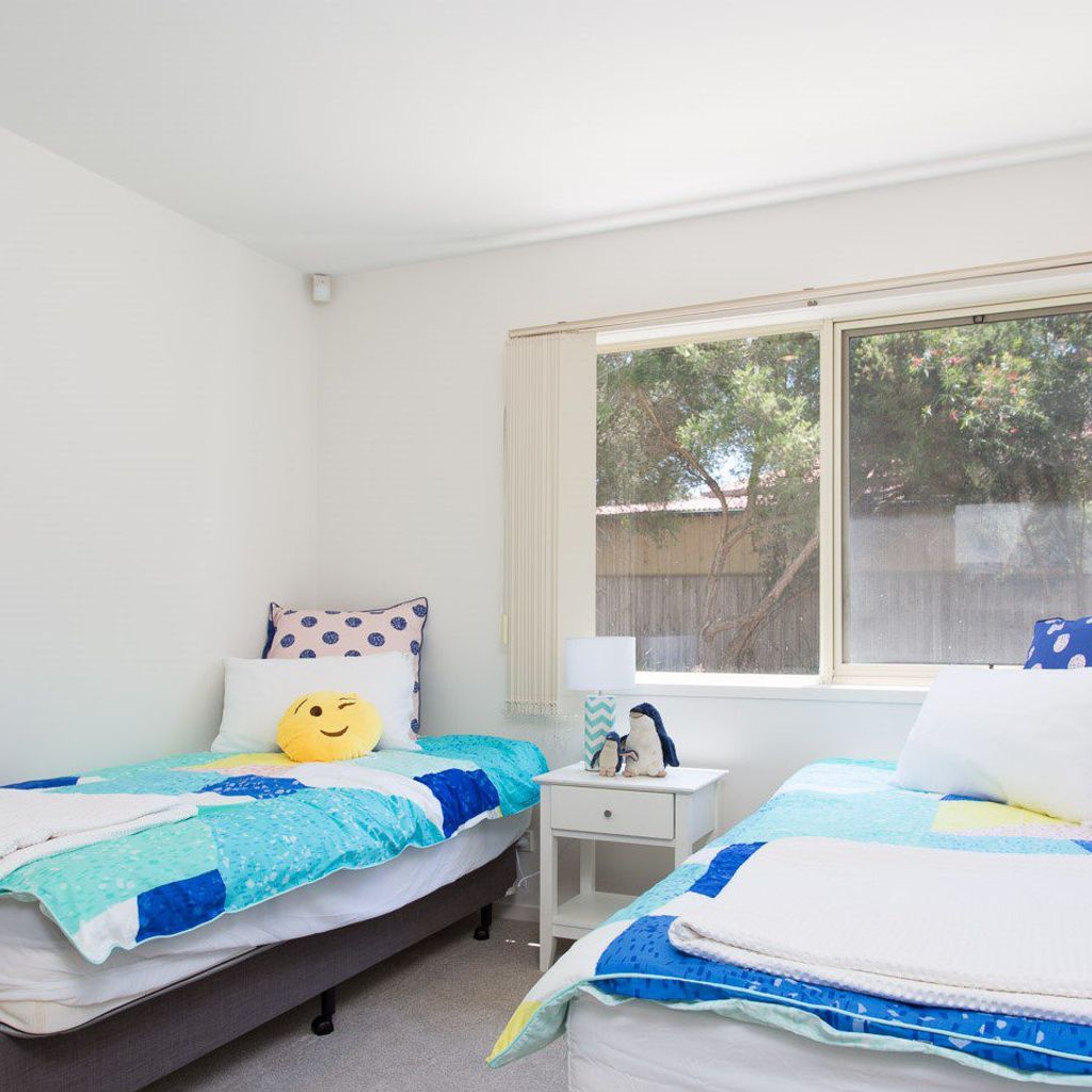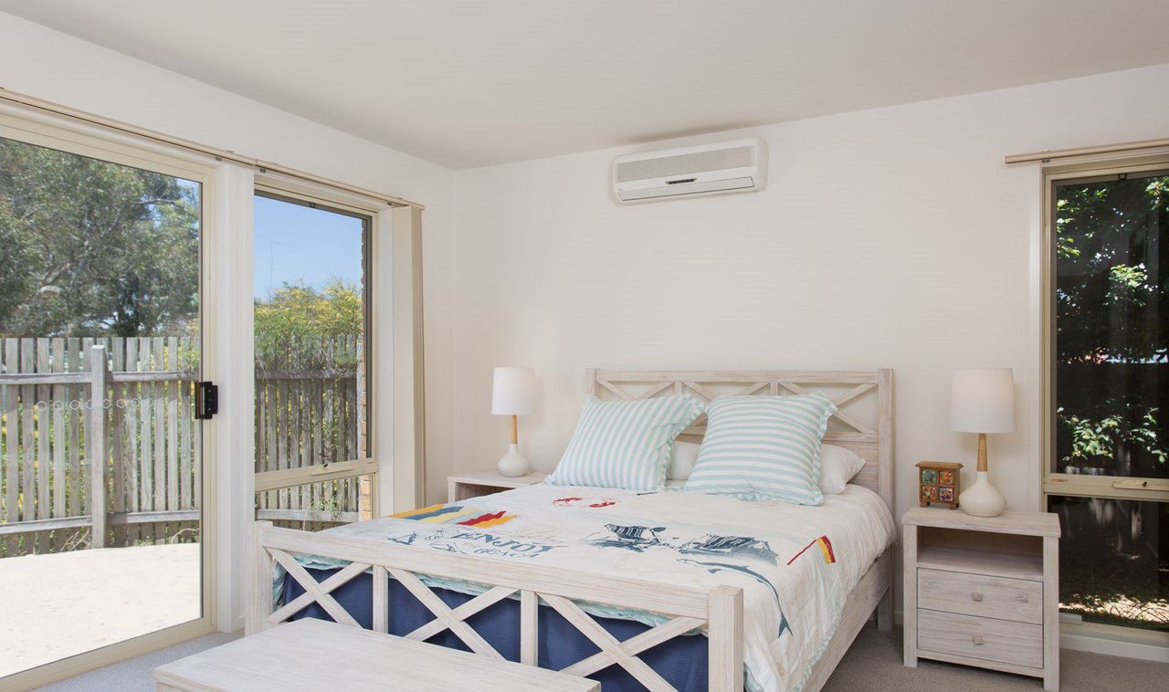 A queen size bed, ensuite with shower and toilet and access to its own private court yard allows complete privacy for the master bedroom. The second and third bedroom each have two king singles, which can join together to make a King sized beds.
