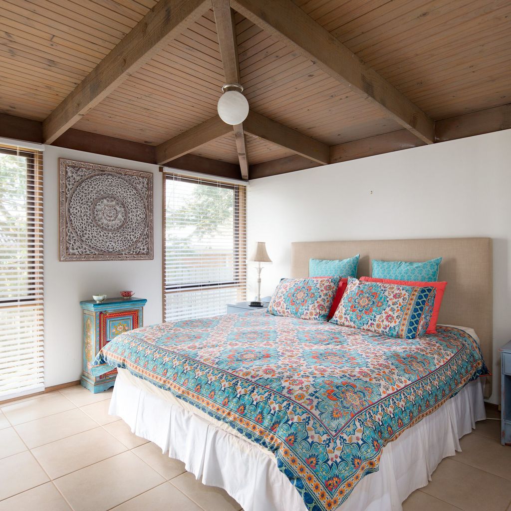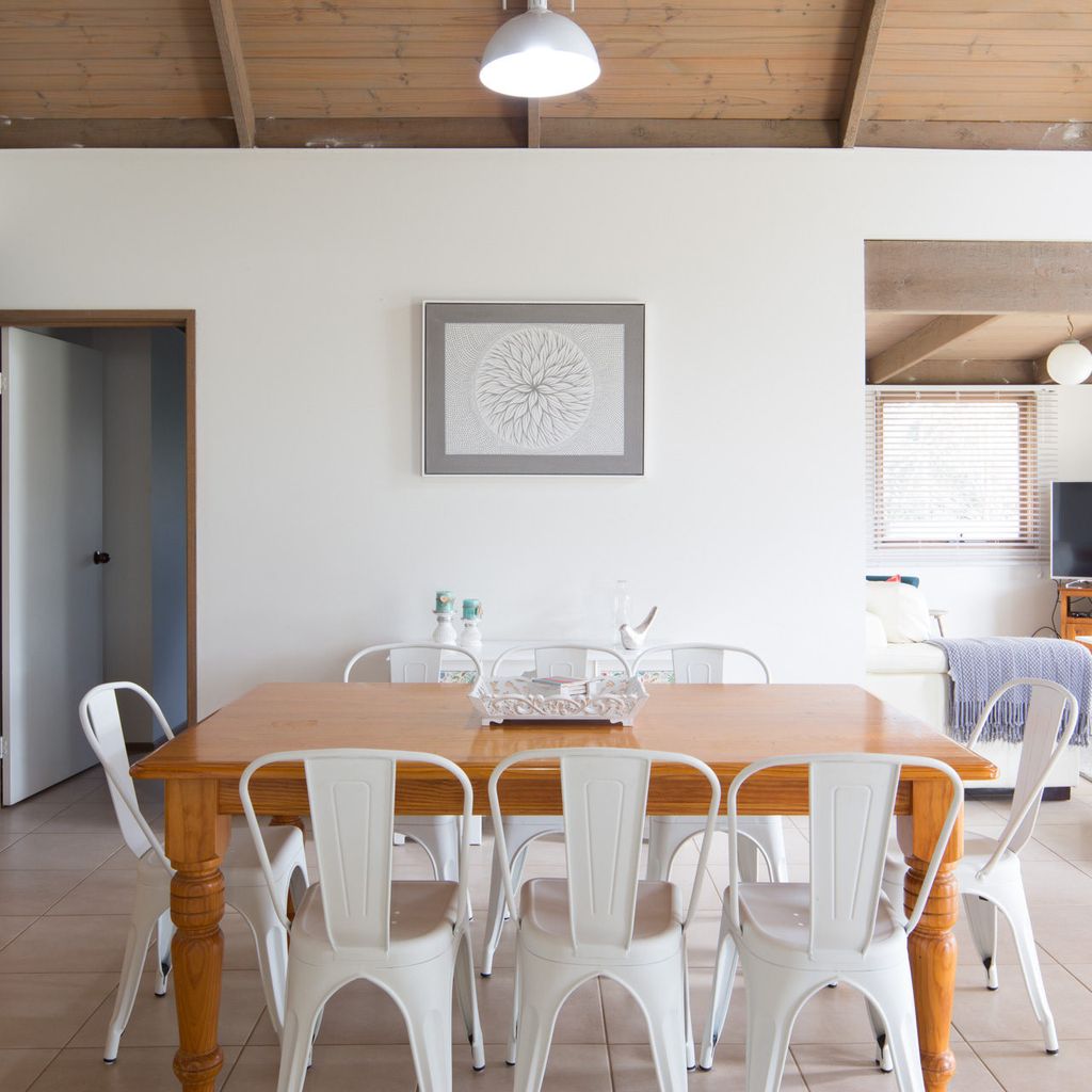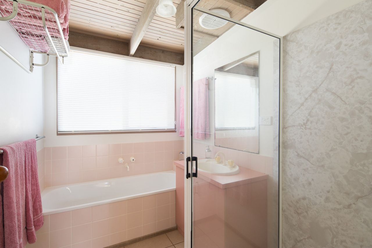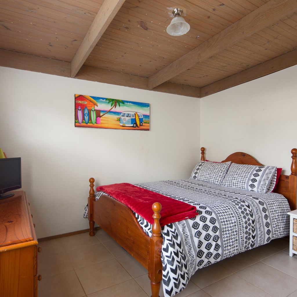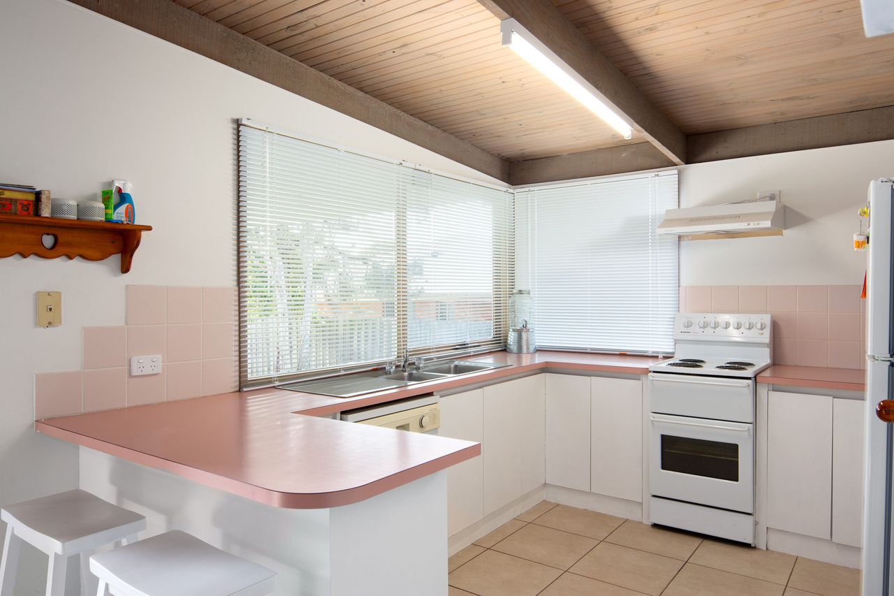 A unique and thoughtfully designed holiday home with timber ceilings throughout. Relax in the comfy lounge room whilst watching a movie or enjoy a book as the sun streams through the large windows. Open up the doors and you will walk out onto an expansive, covered deck with ample furniture to dine, have some drinks or just watch the kids play in the fenced yard.
