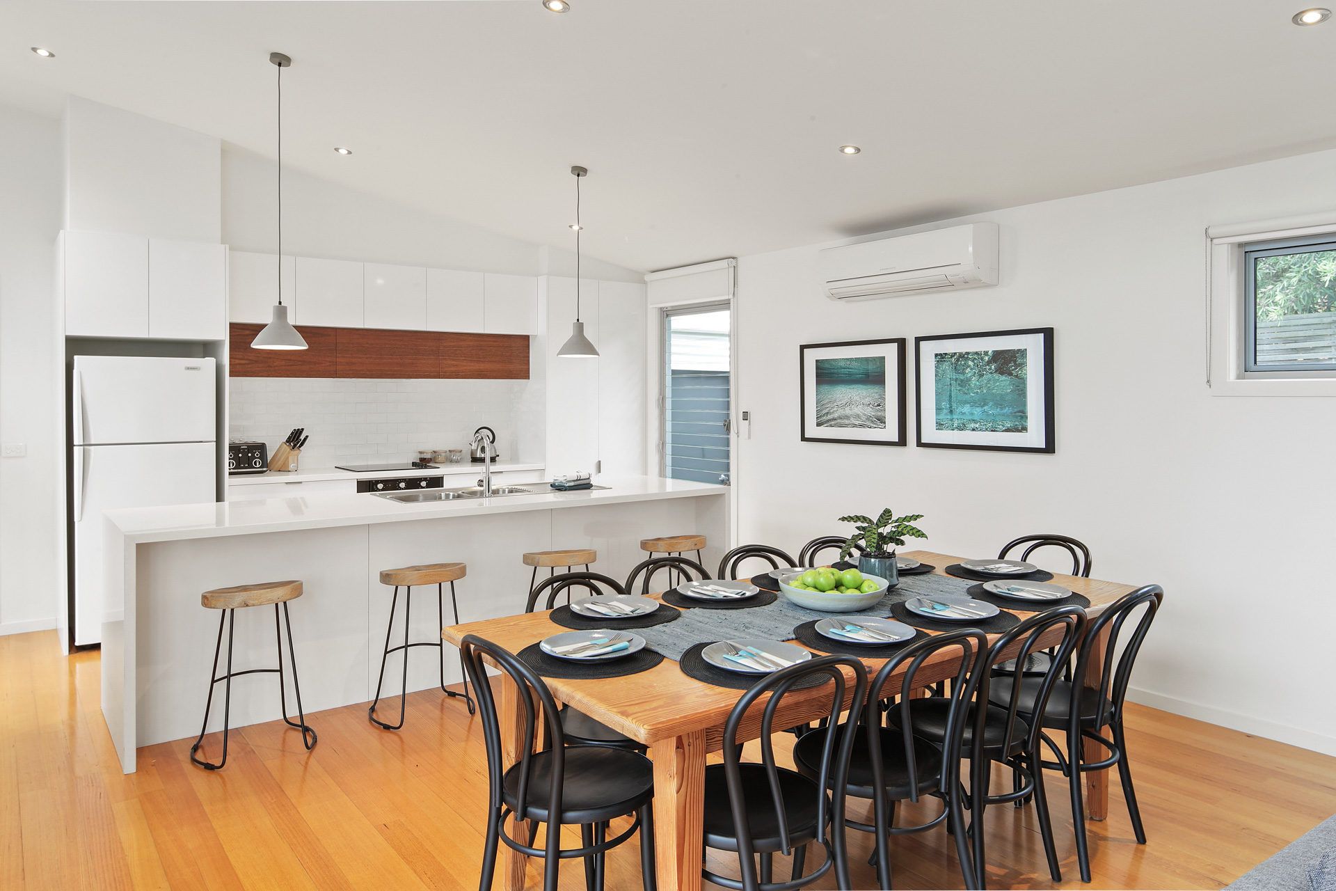 The modern kitchen is well equipped with dishwasher, electric cooktop and oven. Theres plenty of seating at the dining table and breakfast bar, ample room for everyone. The large living room flows on from the kitchen with a large modular lounge and flat screen tv, there is also WIFI at this property.