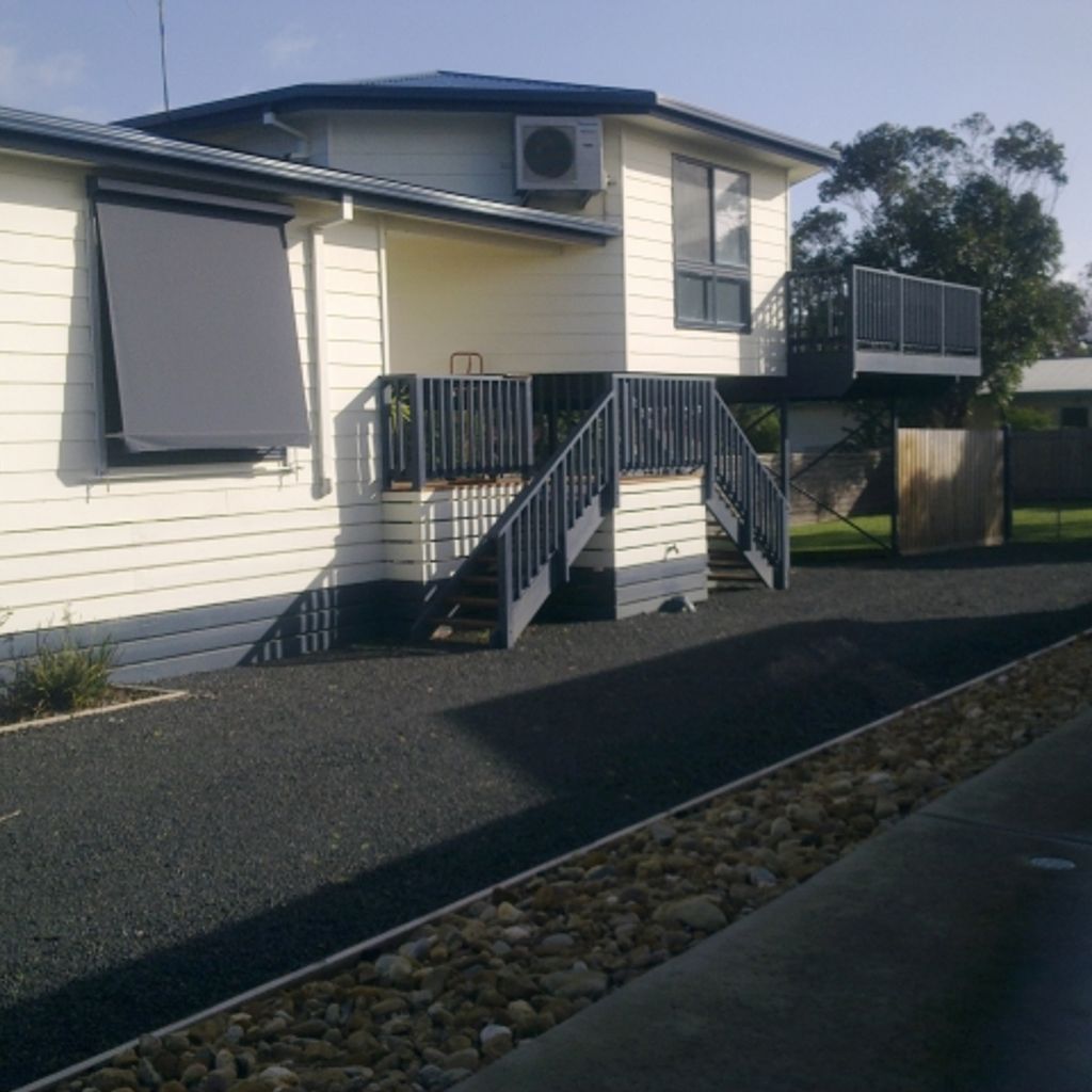 A well equipped kitchen with electric cooking, dishwasher and microwave and a dining area with enough seats for everyone. There are comfortable couches in the loungeroom along with TV and DVD, so you can enjoy a movie. Sliding doors lead out to the large deck with a bbq and outdoor setting, so you can enjoy a meal in the beautiful sunshine.