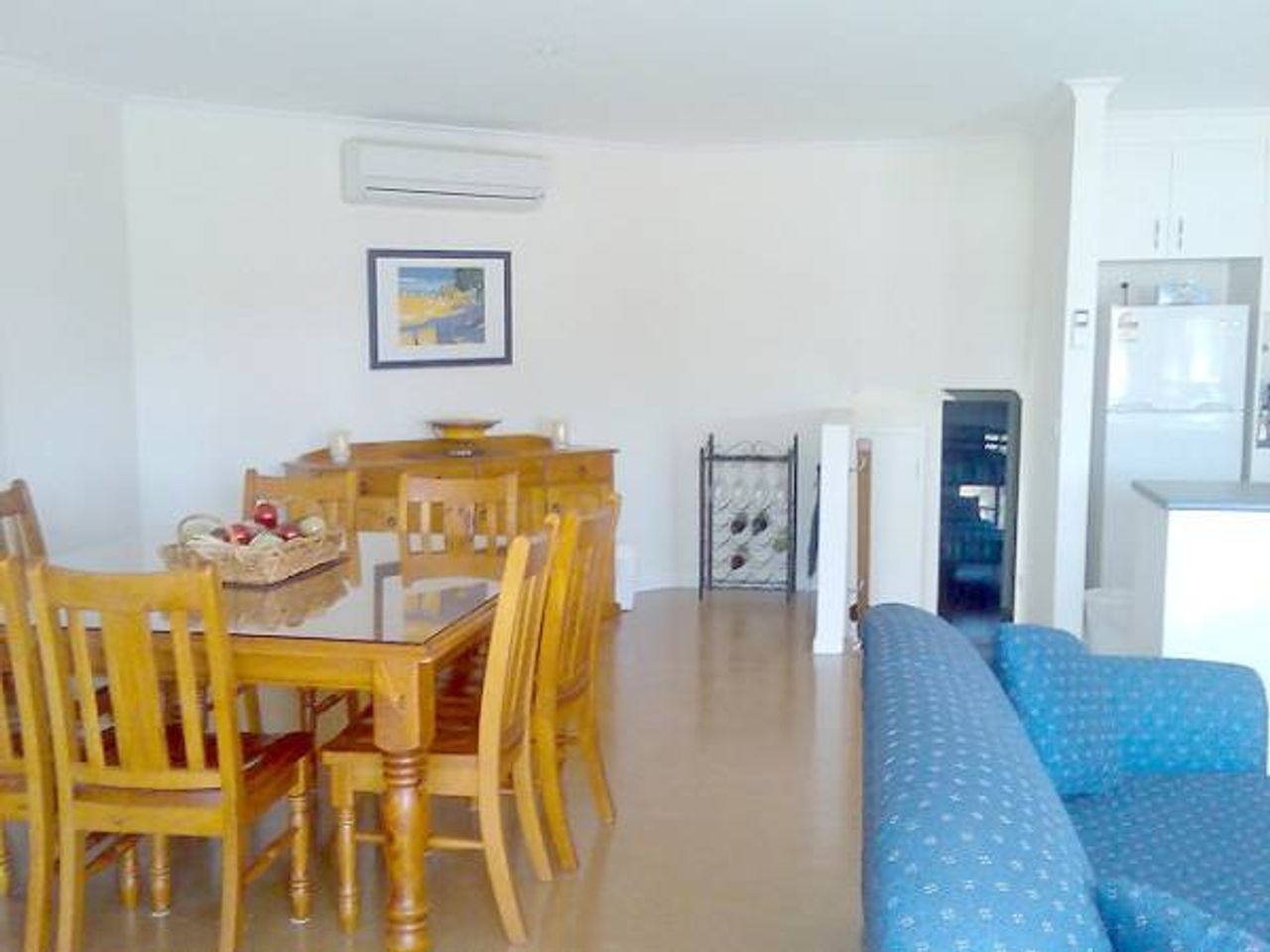 A well equipped kitchen with electric cooking, dishwasher and microwave and a dining area with enough seats for everyone. There are comfortable couches in the loungeroom along with TV and DVD, so you can enjoy a movie. Sliding doors lead out to the large deck with a bbq and outdoor setting, so you can enjoy a meal in the beautiful sunshine.