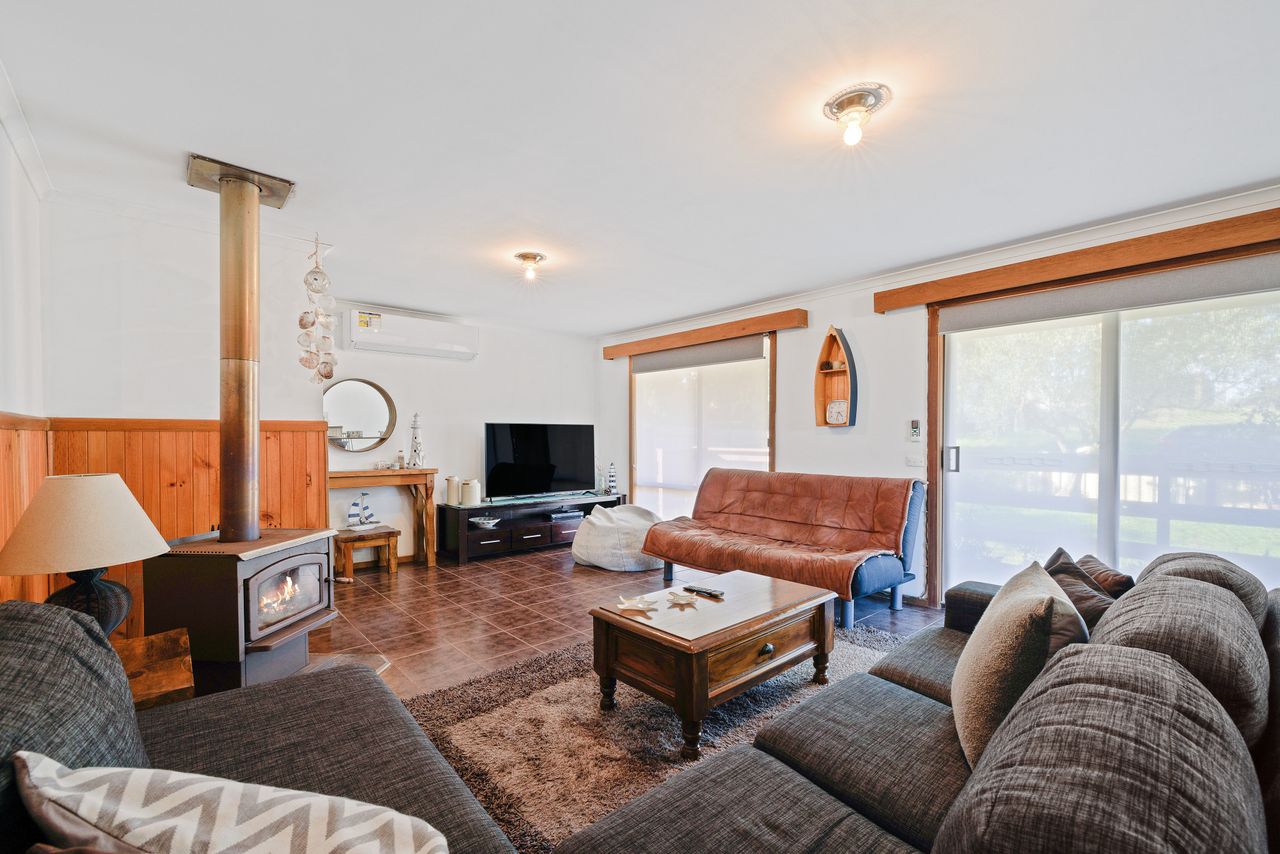 Inside the house is comfortable with flat screen tv and dvd in the lounge, good size dining table, newly tiled floors in lounge/dining/kitchen, wood heater as well as split system for heating and cooling in the lounge. The kitchen is well set up with gas cooking and a microwave.