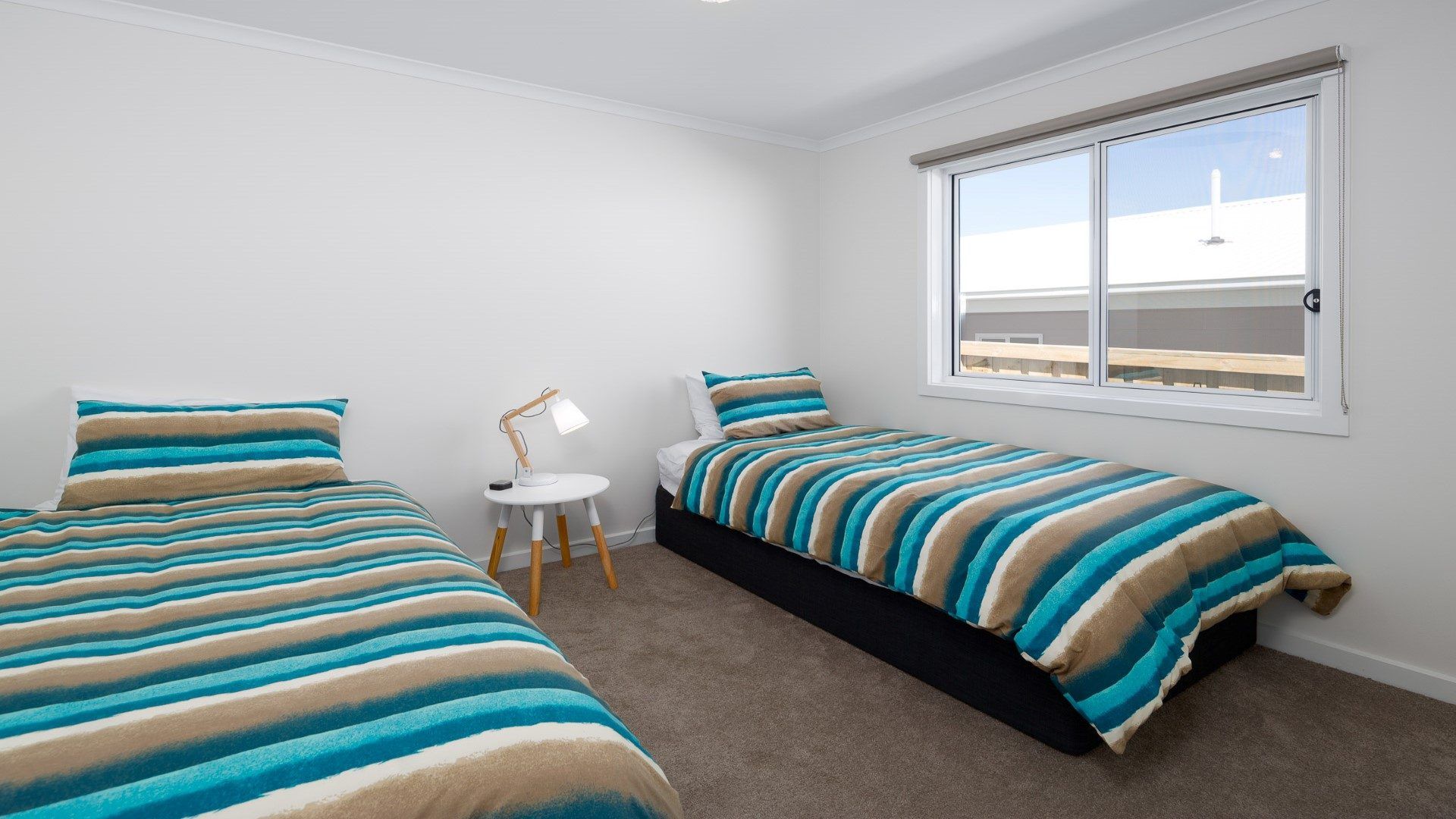 Main bedroom with queen size bed leads to an ensuite with shower and toilet. The following two bedrooms are set up with one with a queen bed and the other is perfect for the kids with two single beds.