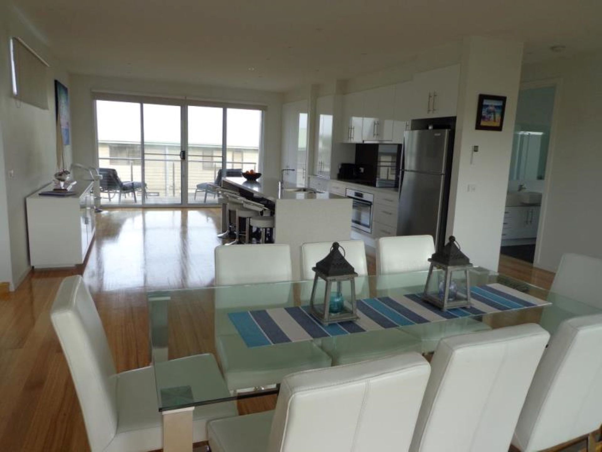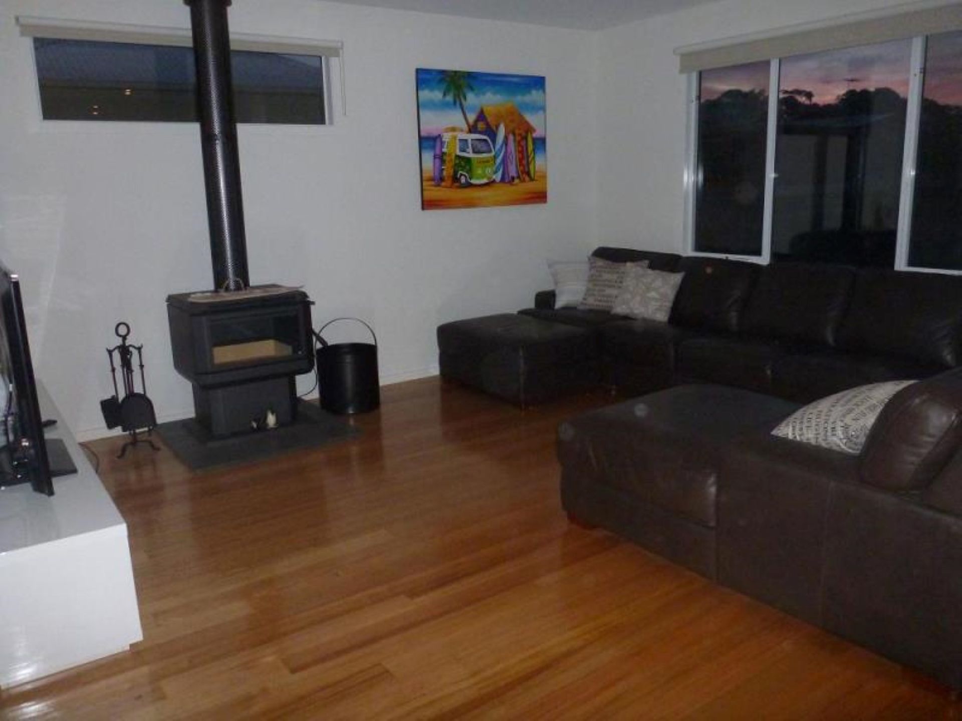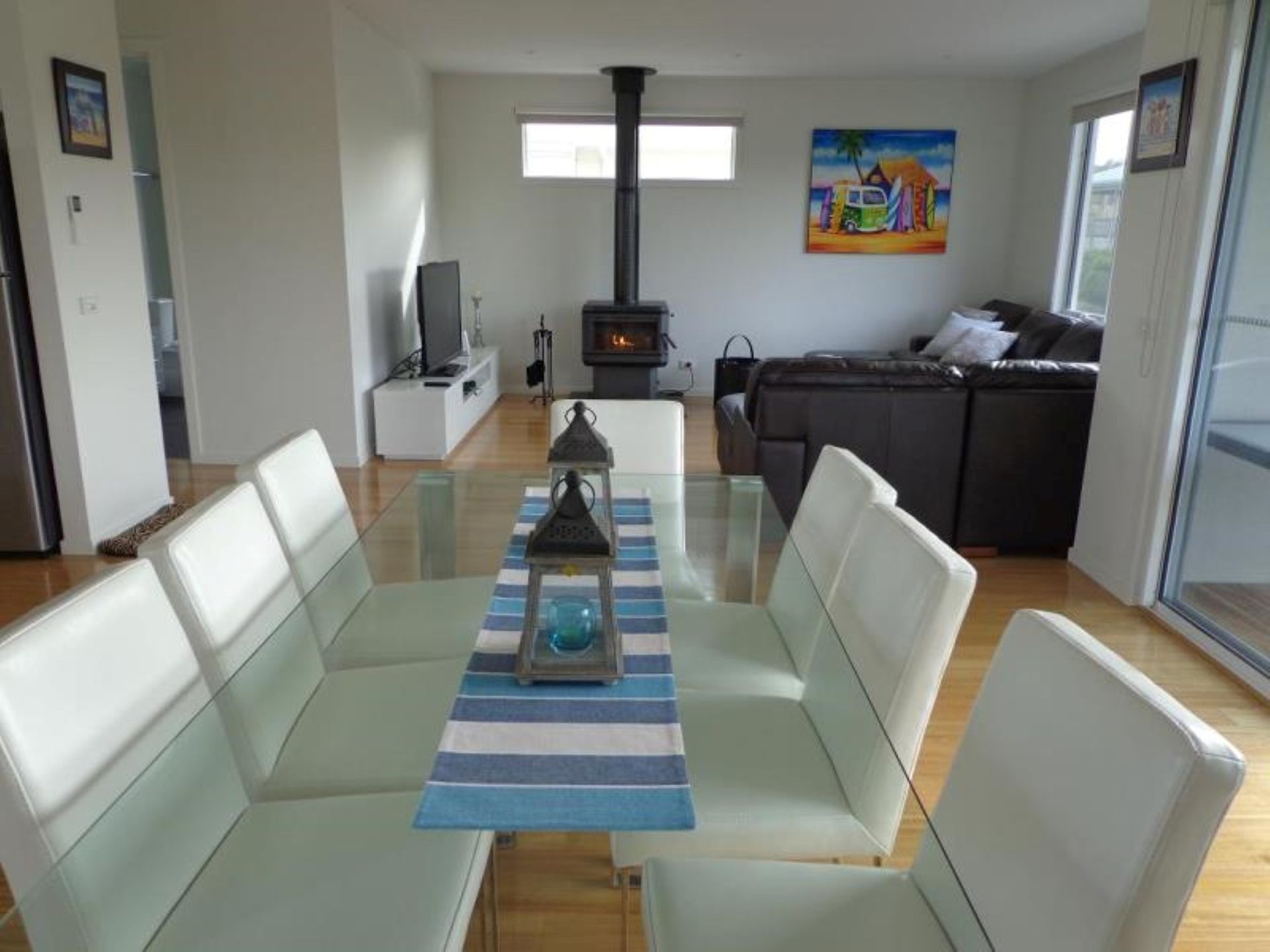 Our beach house offers modern spacious open plan living. The first floor has north and south facing balconies with bbq facilities, a fully equipped kitchen with Aldi Coffee Machine (bring your Aldi coffee pods), large living and dinning areas, master bedroom with queen size bed, bathroom with large shower and bath, a/c, Wood Heater, Flat Screen tv, iPod Docking Station and dvd player.