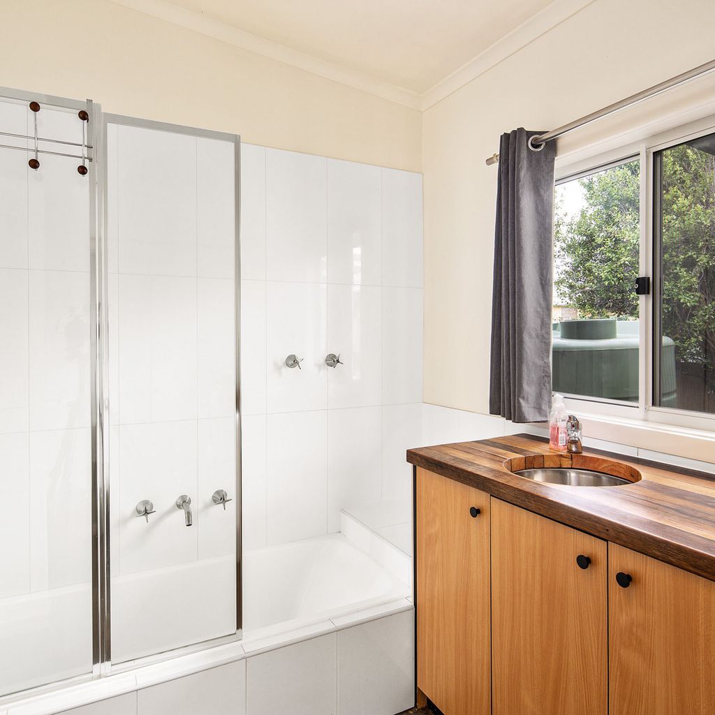 Split system heating and cooling in the main area will keep you comfortable year round and there is a washing machine included in the main bathroom for your convenience. The single garage is available for guest use.