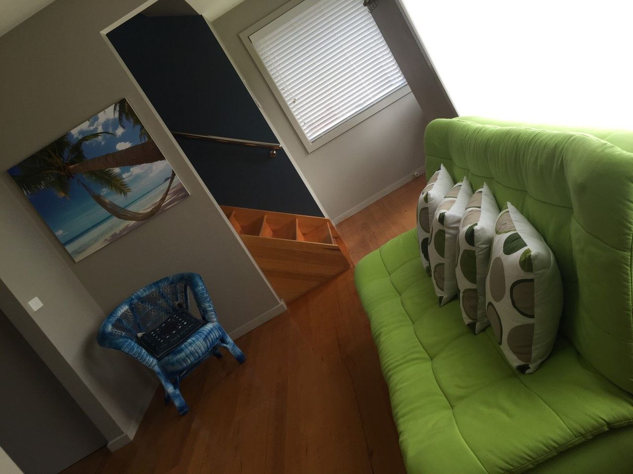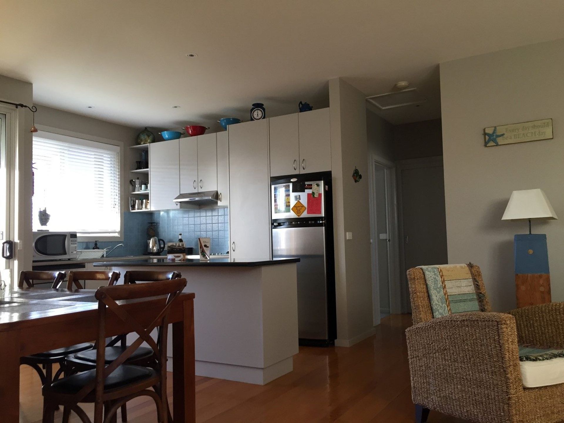 This townhouse is well set up for year-round holidays. Consisting of 3 bedrooms and 2 bathrooms, it features polished floorboards in the living areas and carpeted bedrooms. Upstairs is the fully equipped kitchen with electric appliances, lounge with Tv, Video, Dvd and stereo, games and books. 2 of the bedrooms and family bathroom are on this level.