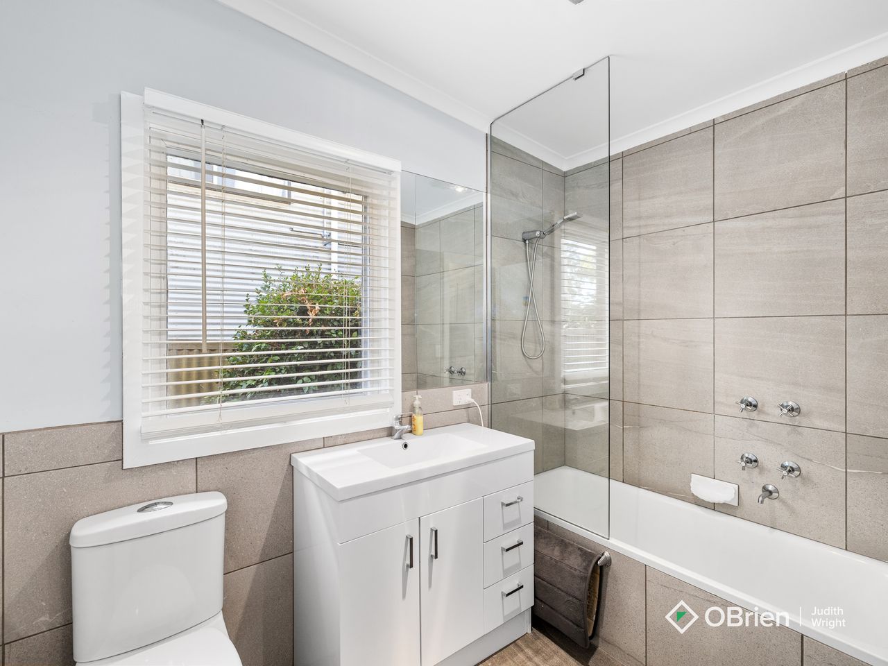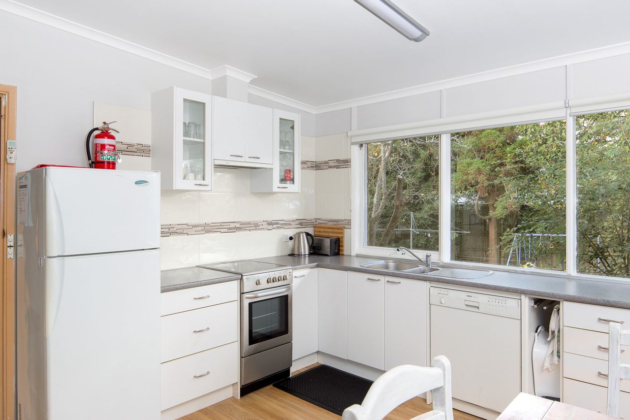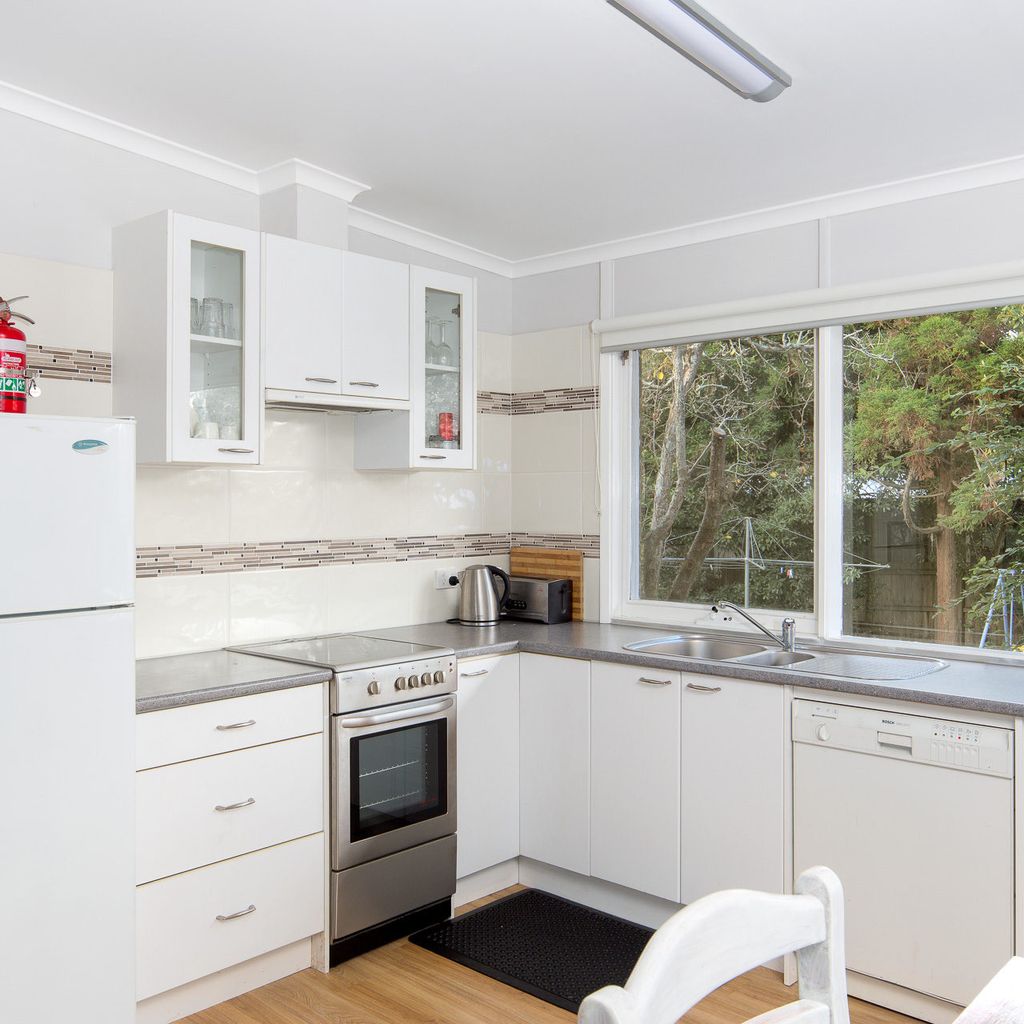 A fully equipped kitchen includes electric stove, microwave, fridge and dishwasher. There is a large dining table and comfortable leather lounge suite to relax on whilst watching the flat screen TV and a reverse-cycle AC in the living area. Wifi is available.