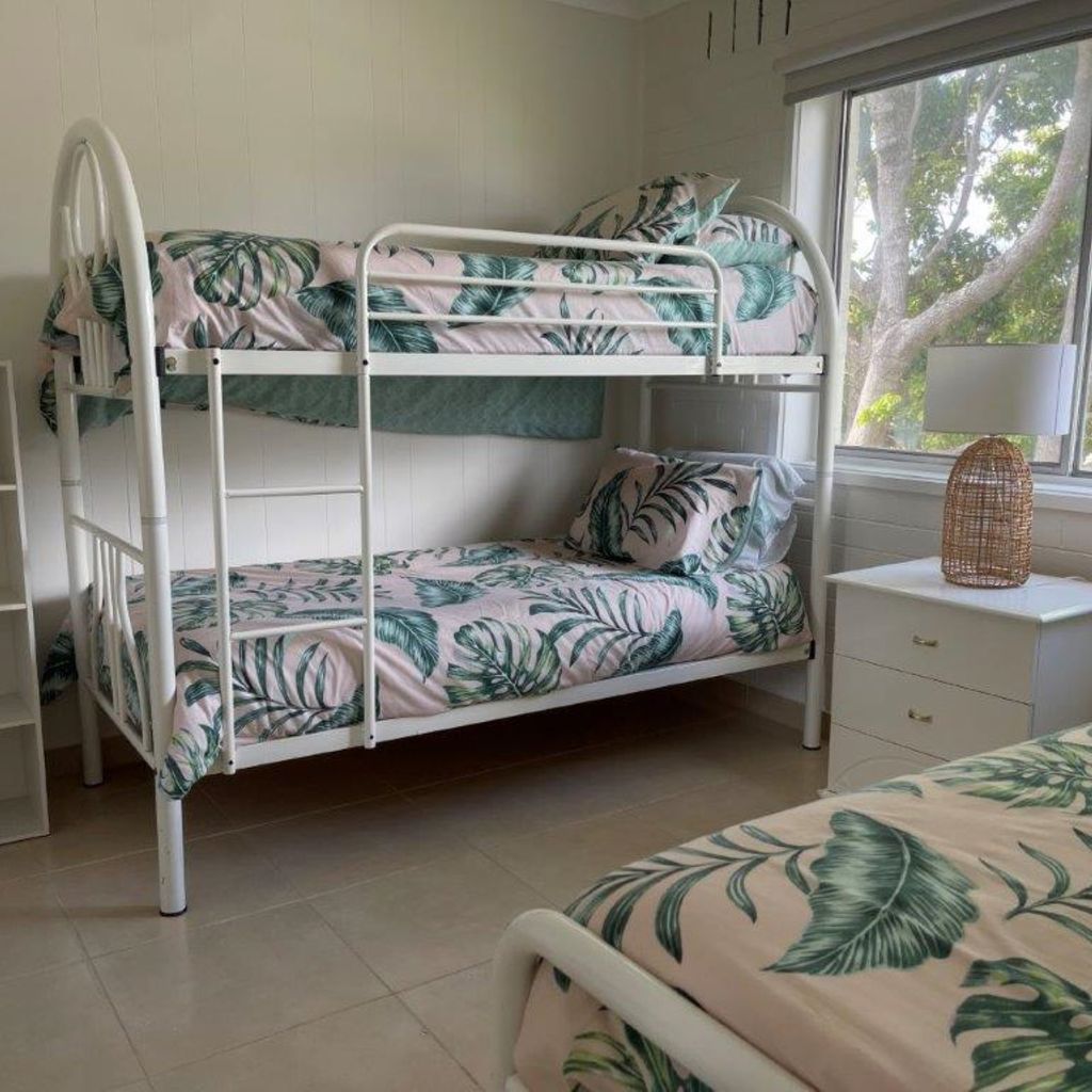 There are 2 large bedrooms, one has a queen bed and the other a bunk and single bed.
