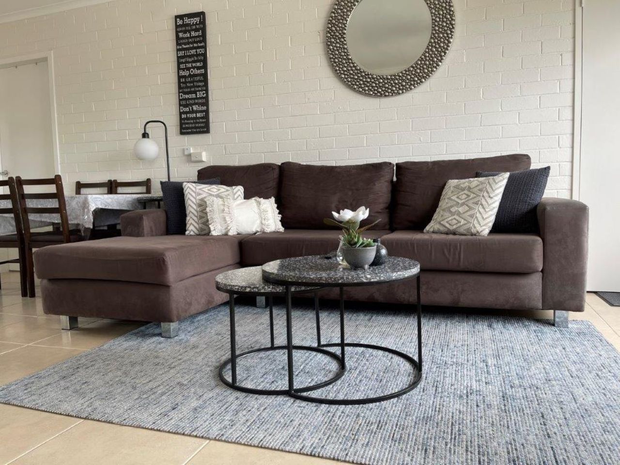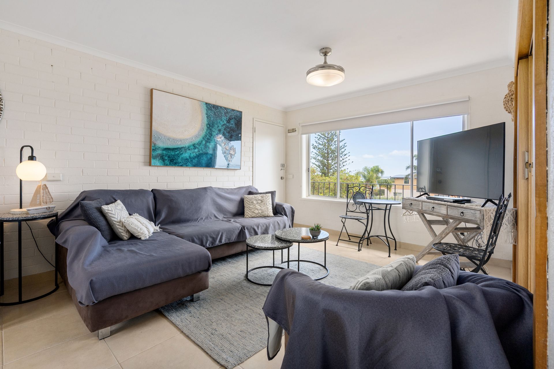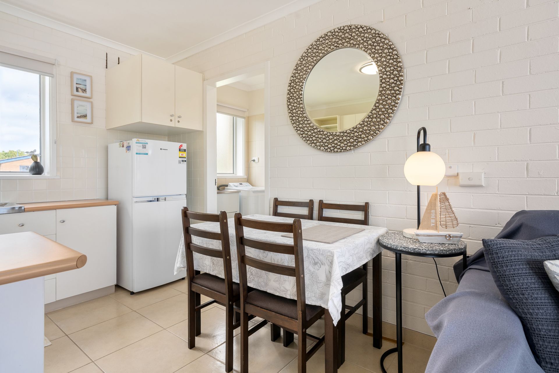 The L-shaped lounge is new and very comfortable to relax in whilst watching the large flat screen tv or dvd. The unit has electric bar heater. Electric cooking appliances, microwave and even coffee pod machine, along with everything else needed is in the kitchen, which has a breakfast bar with 3 stools.