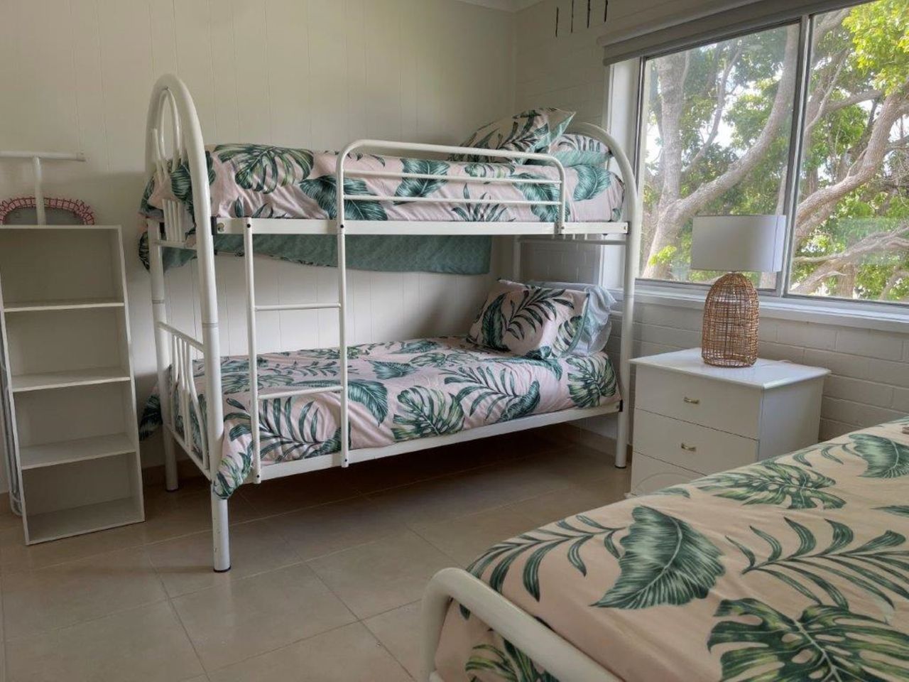 There are 2 large bedrooms, one has a queen bed and the other a bunk and single bed.