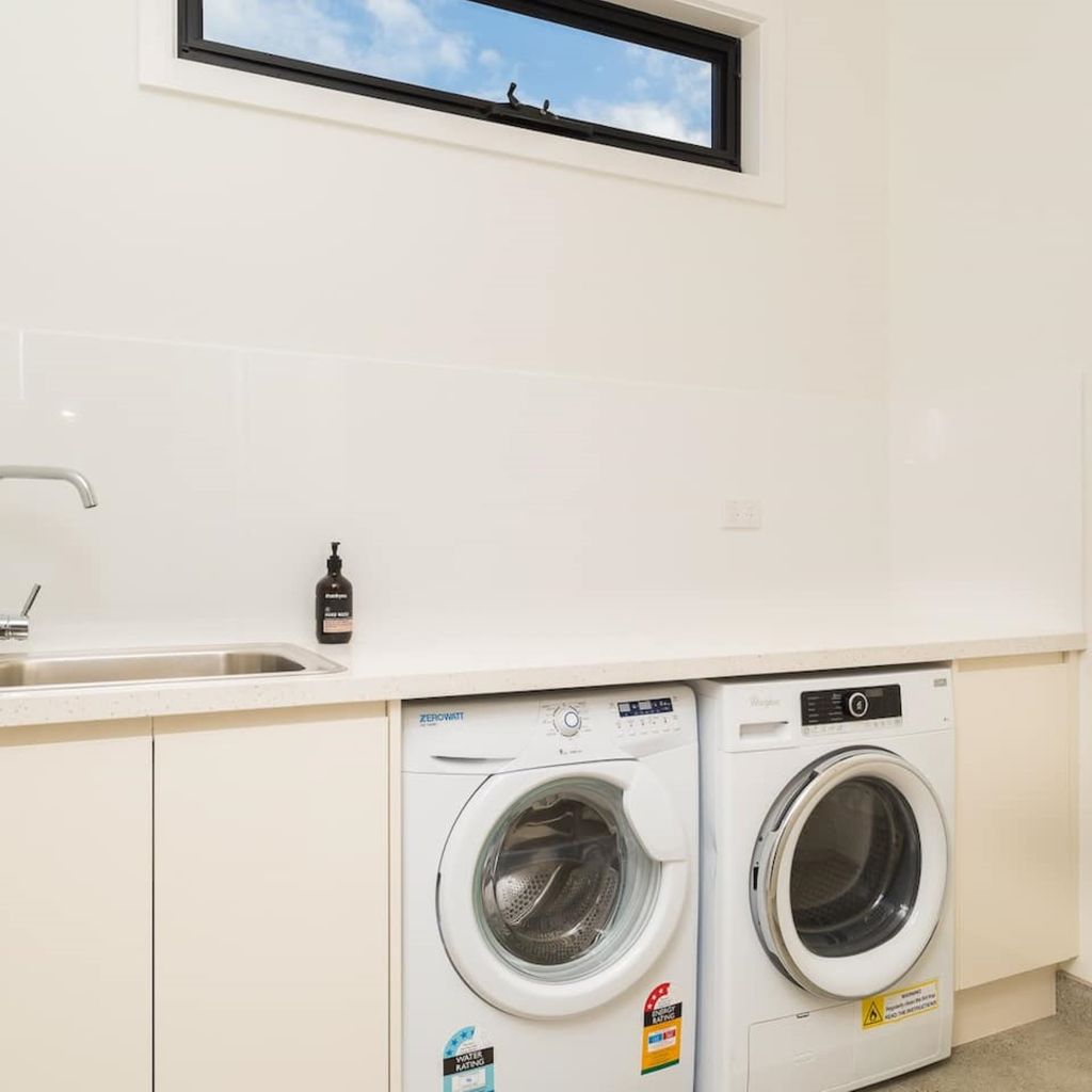 Downstairs contains another living area including large tv, a queen bedroom, two bunkrooms, a bathroom with shower, a separate toilet and a fully appointed laundry. Each bunkroom offers two king singles, one double and one single bed.