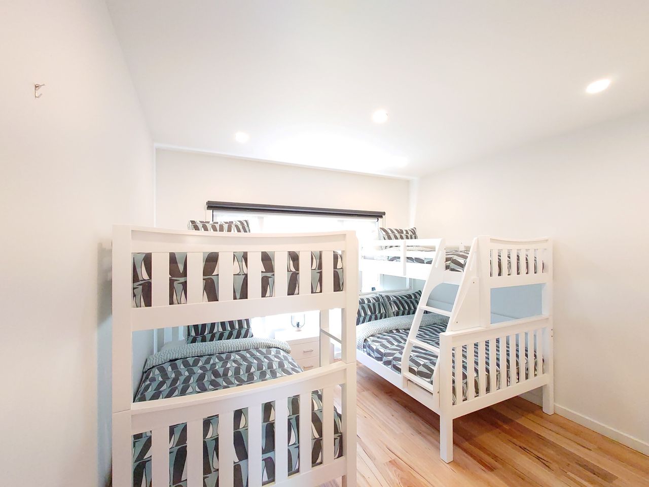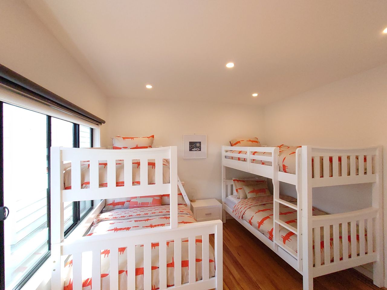 Set up for 2-3 families with one king master bedroom with ensuite, a queen bedroom as well as two bunk rooms for the kids with 2 bunk sets in each. (Please note the bunk weight capacity.) All rooms have built-in robes. Separate is a studio with a queen bed, kitchenette and bathroom.