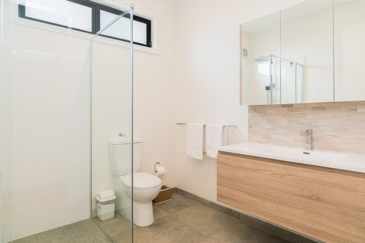 The master king bedroom has a large walk-in-wardrobe and an en-suite with a freestanding bath, shower & toilet.