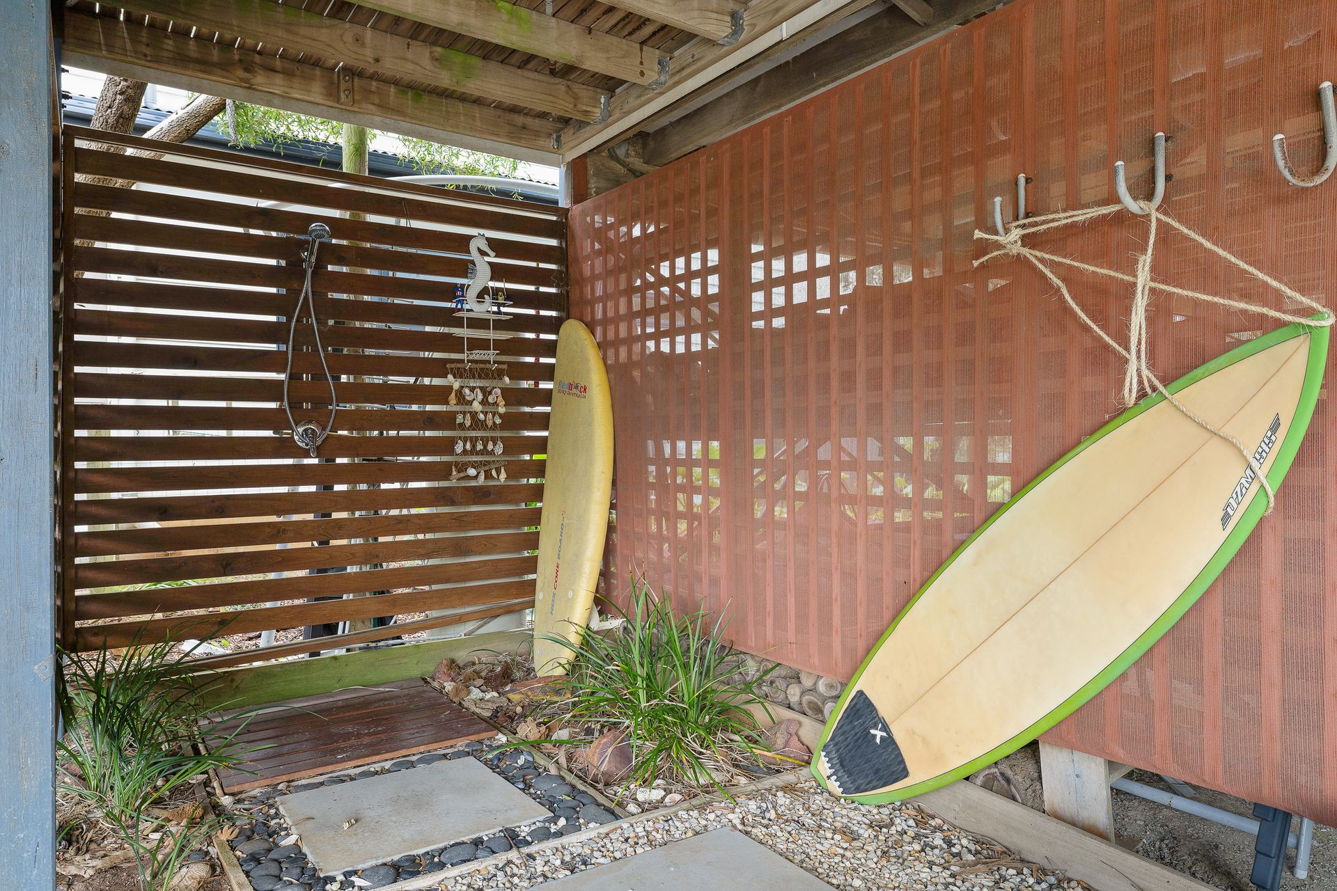 Simply stroll to the beach, wash off when you return in the outdoor shower and relax on the deck with a cold drink or a BBQ on the Webber-Q. In the colder winter months, enjoy the cosy wood fire (wood provided).