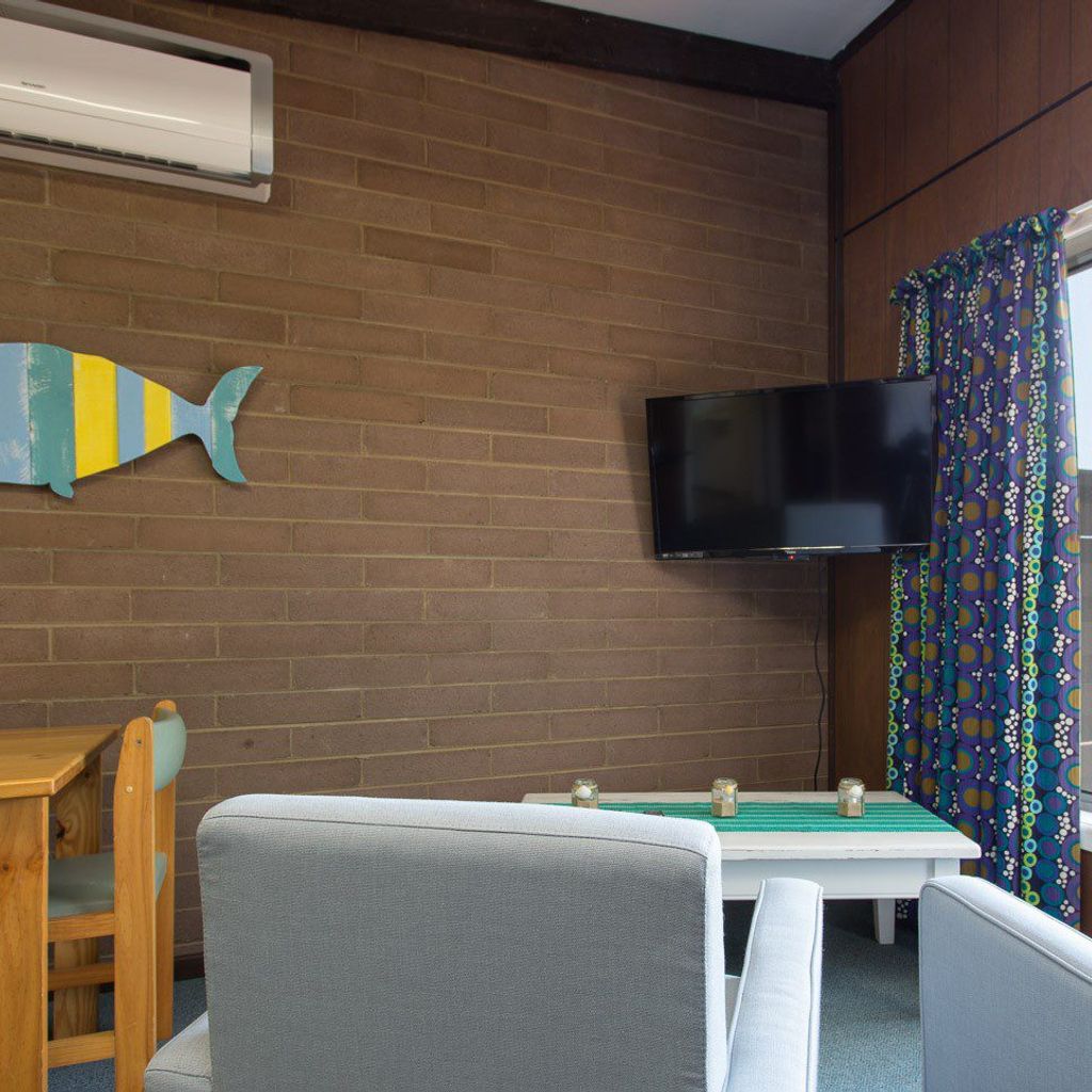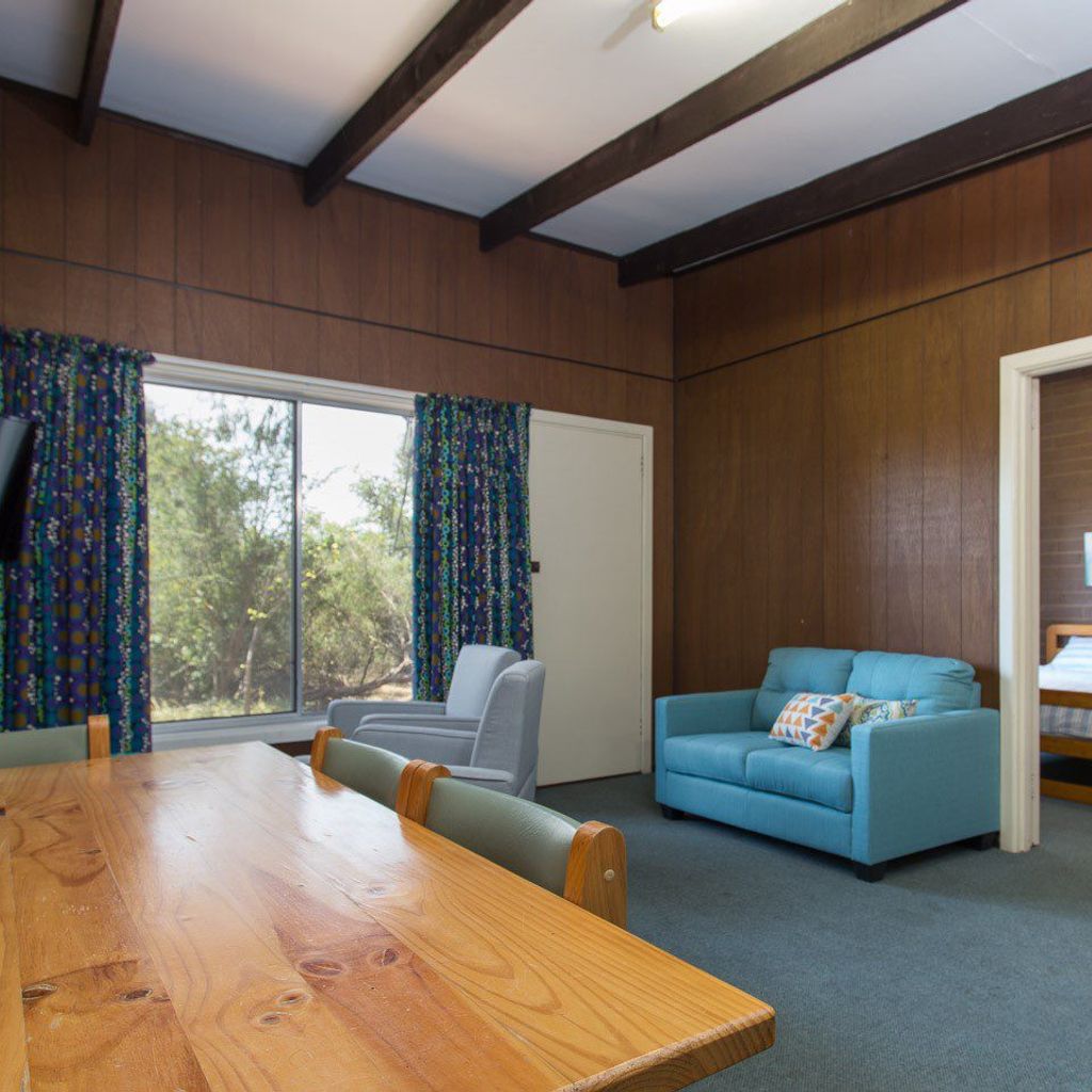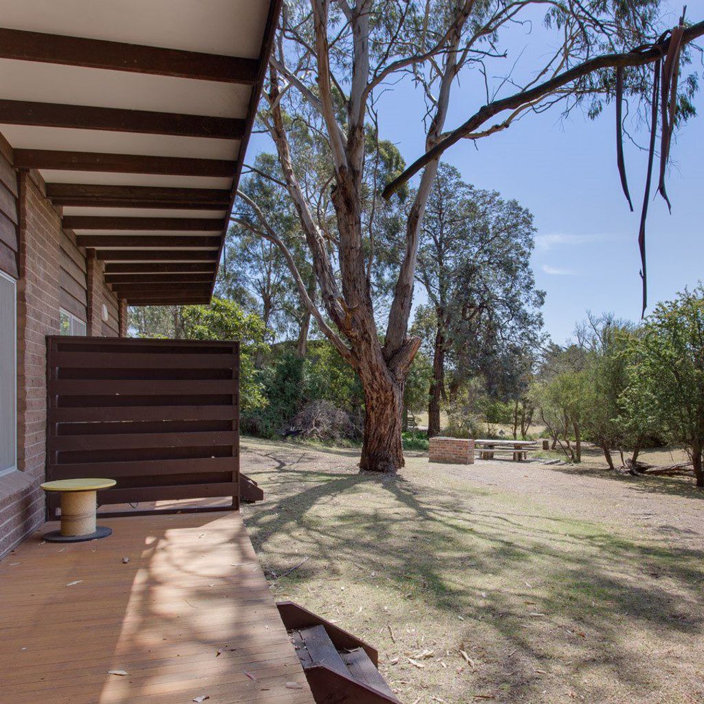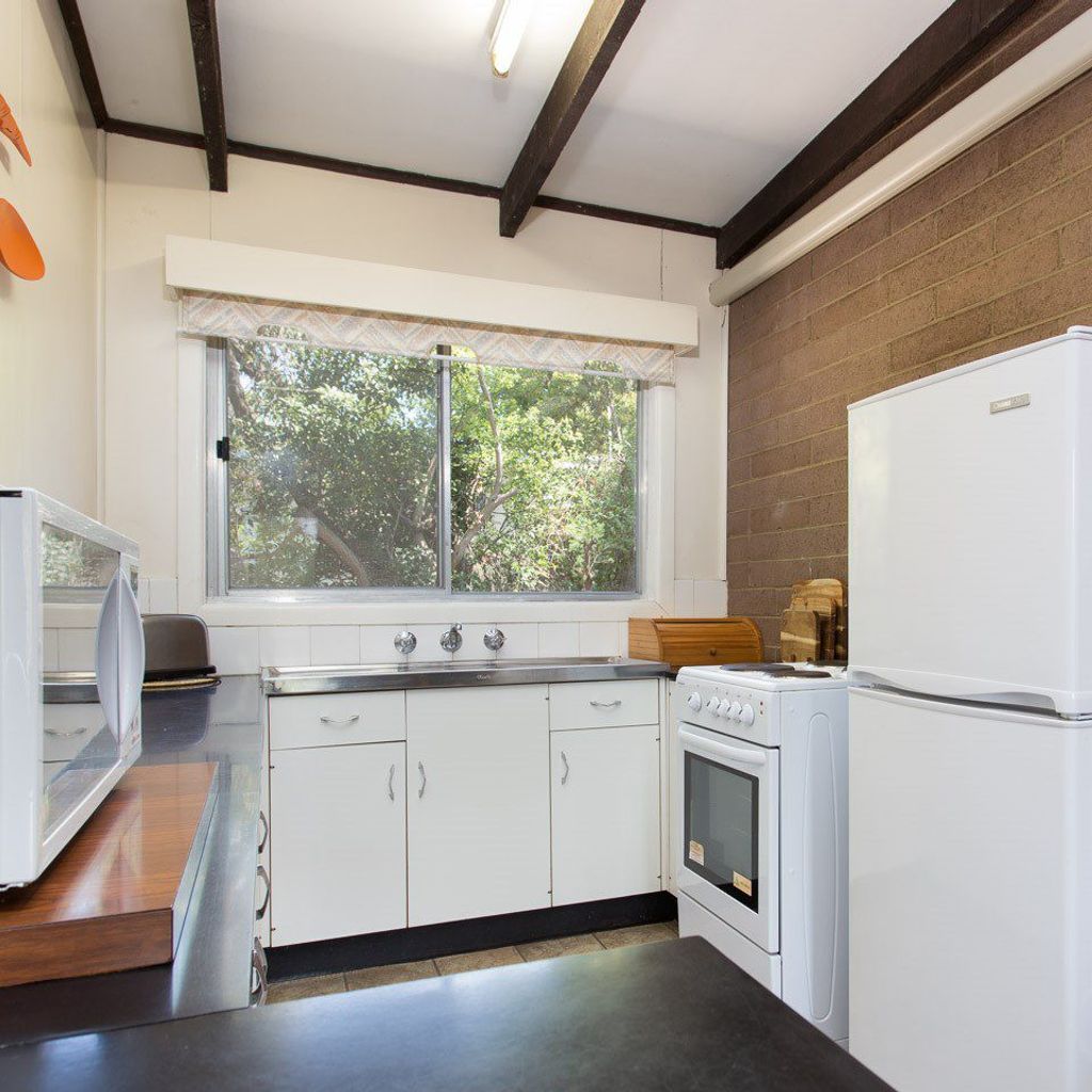 The good sized front windows look out onto the native ti tree communal area that has wooden picnic setting and built in gas bbq. Each unit has a small private north facing deck.
