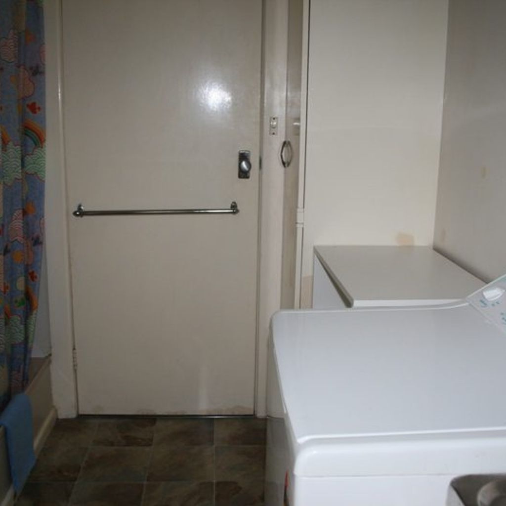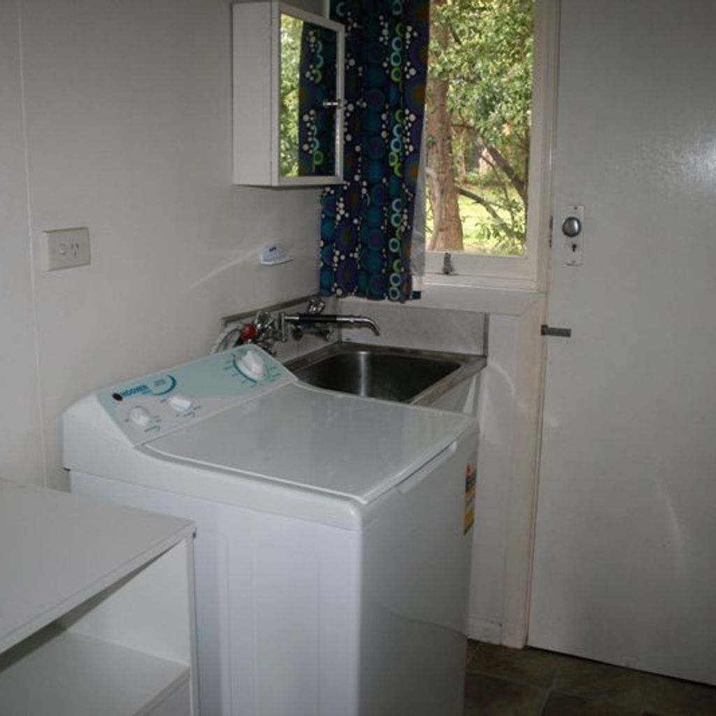 The main bedroom has a Queen bed and second bedroom with 2 single beds. The combined bathroom and laundry has a shower, washing machine, iron & ironing board and there is a separate toilet.