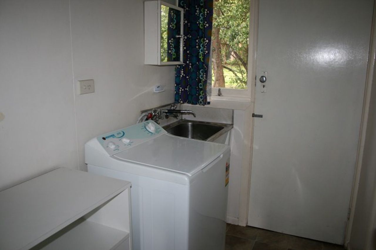 The main bedroom has a Queen bed and second bedroom with 2 single beds. The combined bathroom and laundry has a shower, washing machine, iron & ironing board and there is a separate toilet.