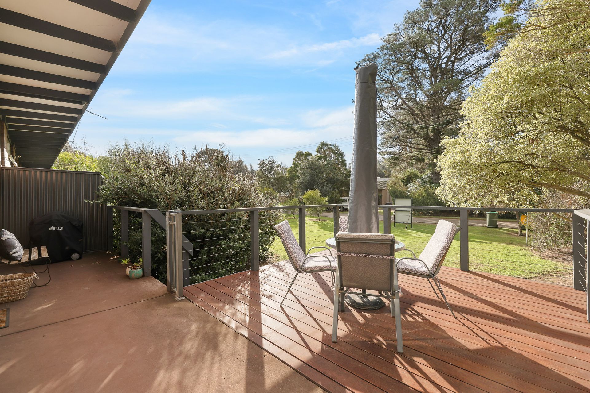 The kitchen is well equipped with a coffee machine, electric cooking, a medium sized fridge and a microwave. The kitchen is fully self-contained with ample pots and pans, cutlery and crockery and a central dining table.. There are two bedrooms and the bathroom is combined with the laundry where there is a washing machine, iron and ironing board, laundry trough, wash basin, shower and toilet. There is a lovely deck at the front of the property with room to sit in the sun and relax.