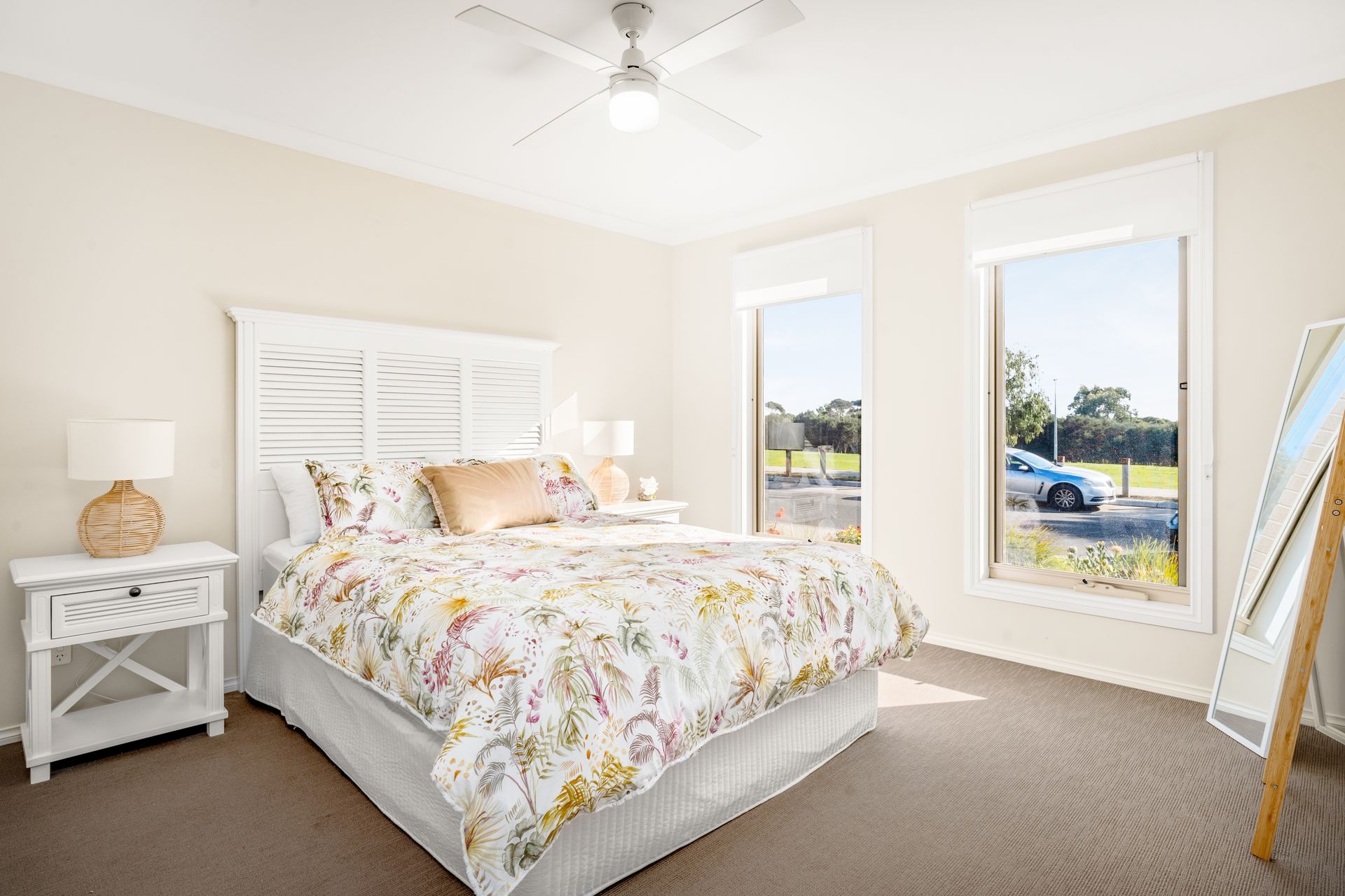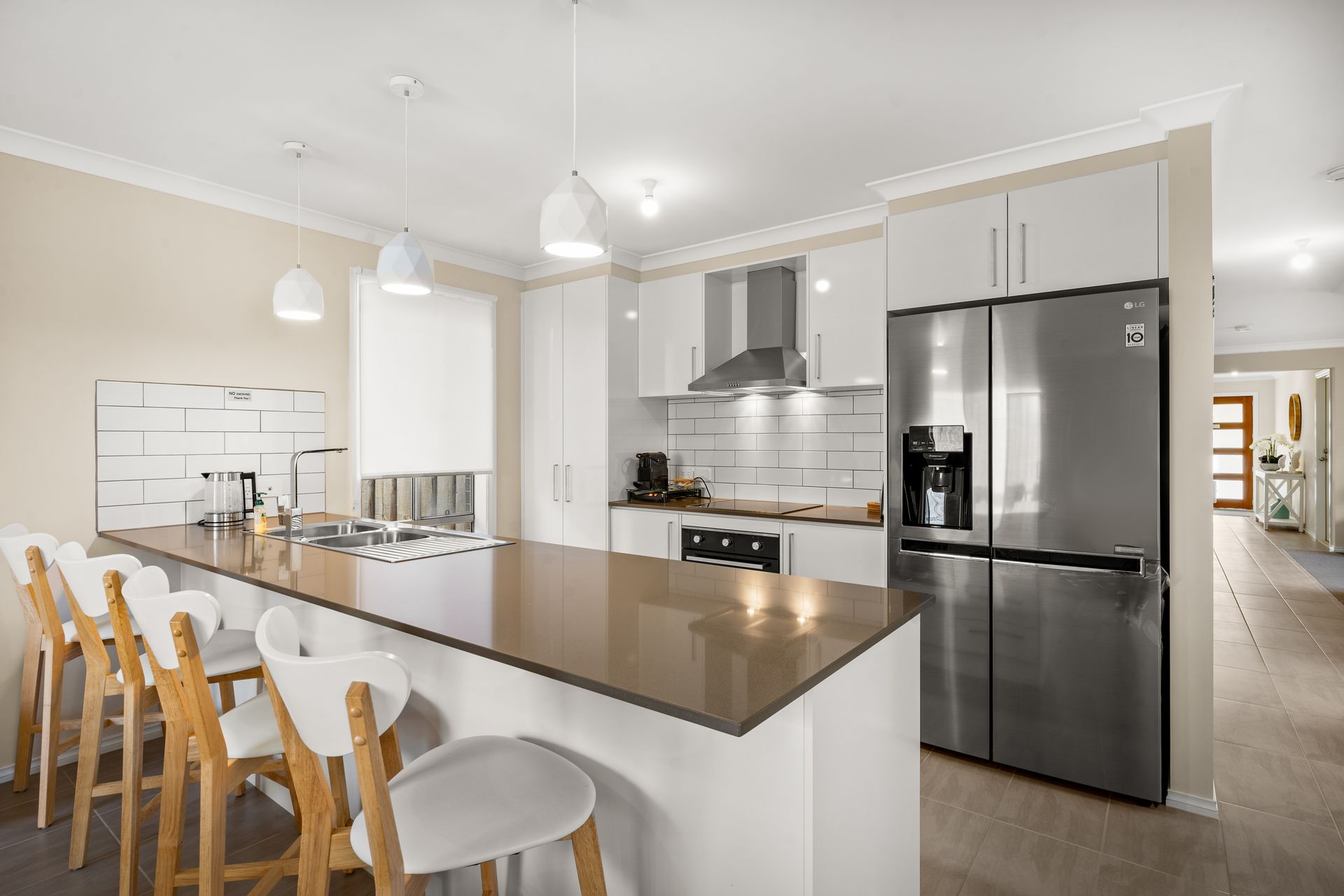 Step into a realm of relaxation where modern comforts harmonize with the calming essence of the ocean. With its coastal-inspired design, "Island Tranquility" offers a tranquil haven where you can unwind and rejuvenate. This modern 4-bedroom, 2-bathroom holiday home embodies a coastal, beachy ambiance that sets the perfect tone for any getaway.