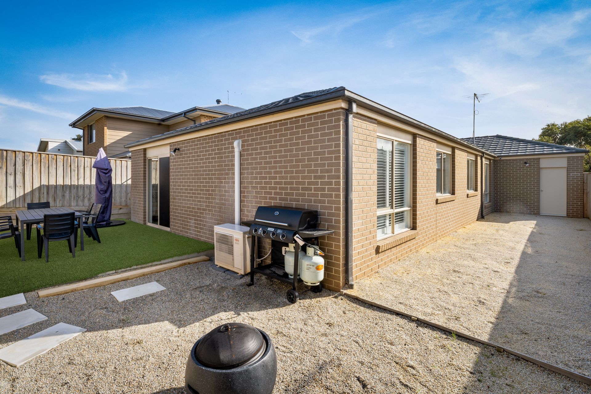 Inside, the house boasts a seamless blend of style and comfort, with four spacious bedrooms, with ceiling fans, that promise restful nights. The two well-appointed bathrooms offer convenience and privacy, catering to your every need. Enjoy the well appointed kitchen with stainless steel appliances, electric cooking and kitchen bench with room for 4. There are 2 separate seating areas.