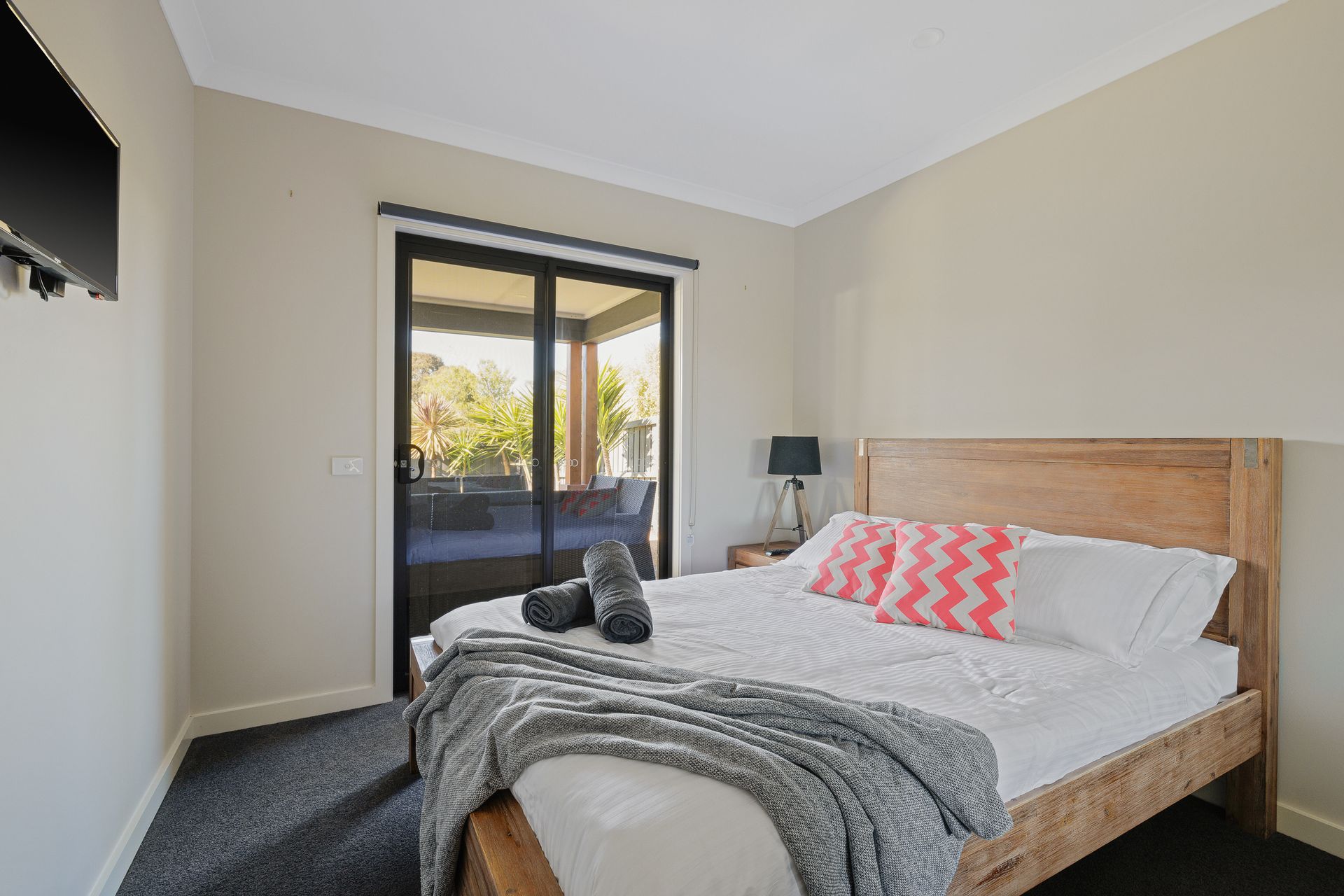 Bedroom two consists of a tri-bunk (double bed on bottom, single on top) as well as a trundle bed and has it's own tv which makes it the perfect space for the kids. Bedroom 3 and 4 both have queen size beds and one has it's own tv.