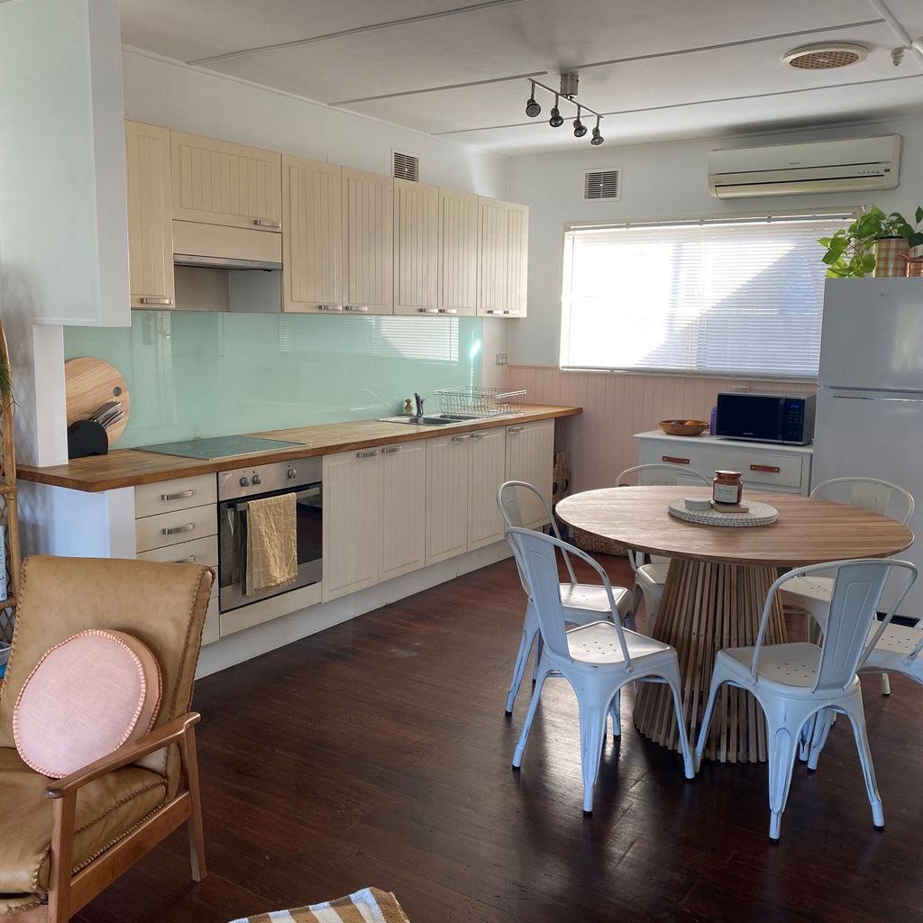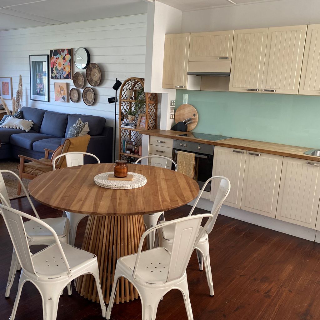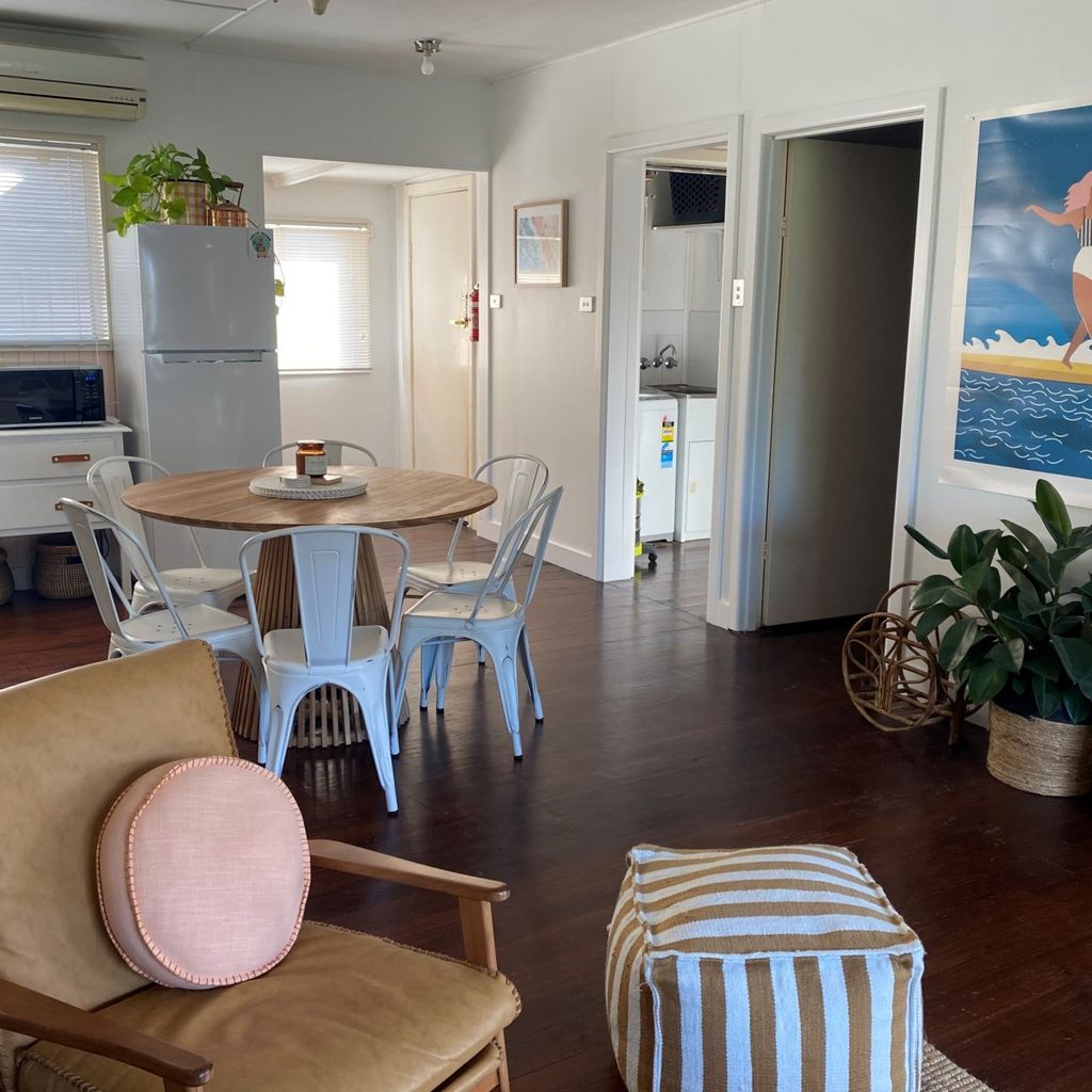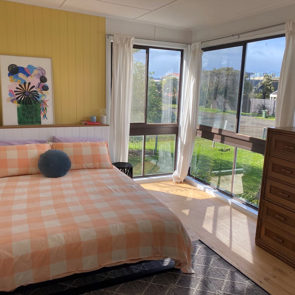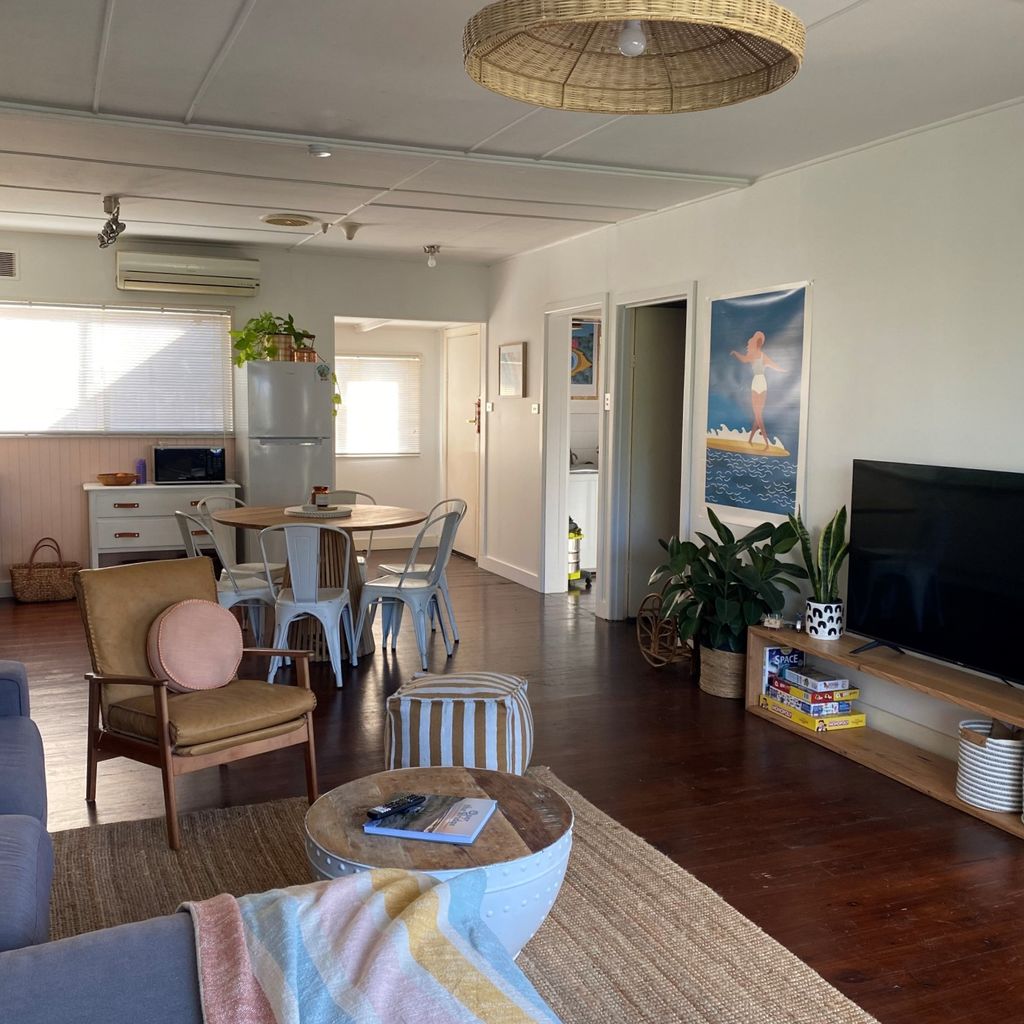 The property provides a large open plan living space with large flat screen TV, perfect for movies or summer sport and a well-equipped kitchen for preparing meals. The main bedroom has a queen size bed and large windows to let the sunshine in. The second bedroom has a tri-bunk (double on bottom & single on top) as well as a single bunk bed, the perfect space for the kids! The property also includes reverse cycle heating and cooling, a spacious bathroom with bath and a separate laundry with washing machine for added convenience.