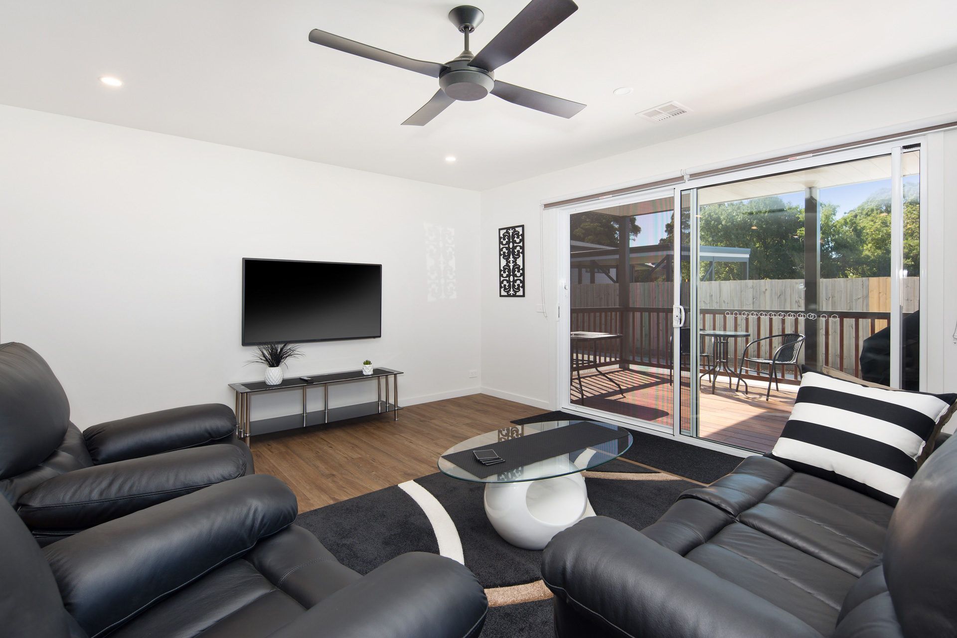 You are greeted with an attractive front garden and a newly built timber townhouse. A light-filled entrance hall flows into the stunning lounge and transitions into a spacious new crisp white kitchen with glass splash back. A fully equipped kitchen with stone bench tops, stainless steel appliances and filtered water tap integrates seamlessly with the nearby dining area and outdoor decking area, a perfect spot to entertain and relax after dark. This stunning property boasts a large, fully secure backyard for the children to play in while the adults are relaxing on the beautifully appointed deck.