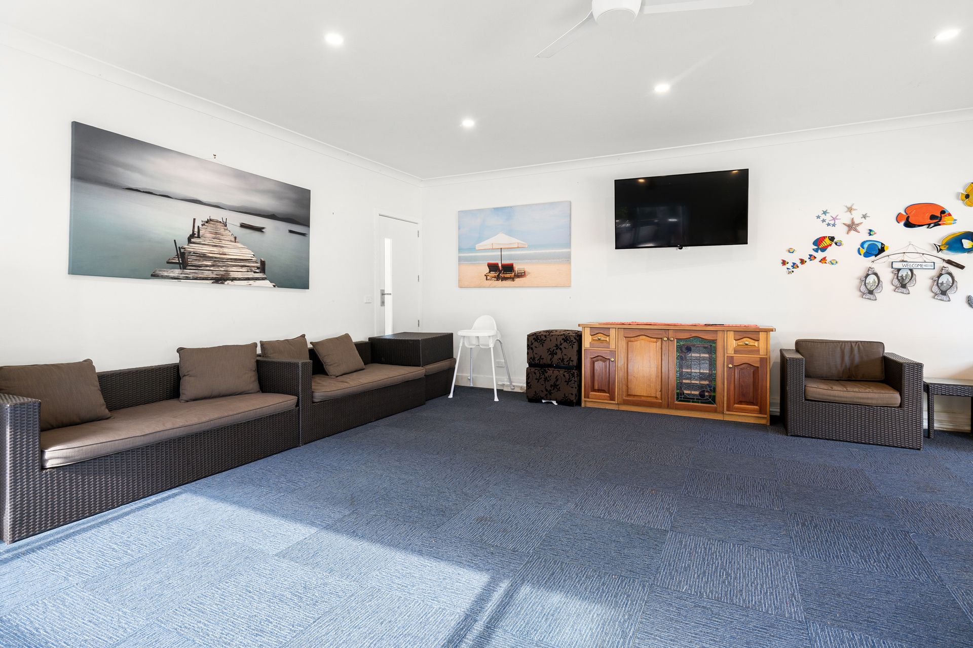 Inside, the home is spacious, comfortable, and thoughtfully equipped for year-round stays, with multiple living zones including a games room, cozy fireplace, and modern comforts throughout. Featuring five bedrooms, a fully equipped kitchen with dishwasher, laundry with washing machine, iron and board, and baby-friendly amenities including a cot, high chair & Baby Safety Gate.