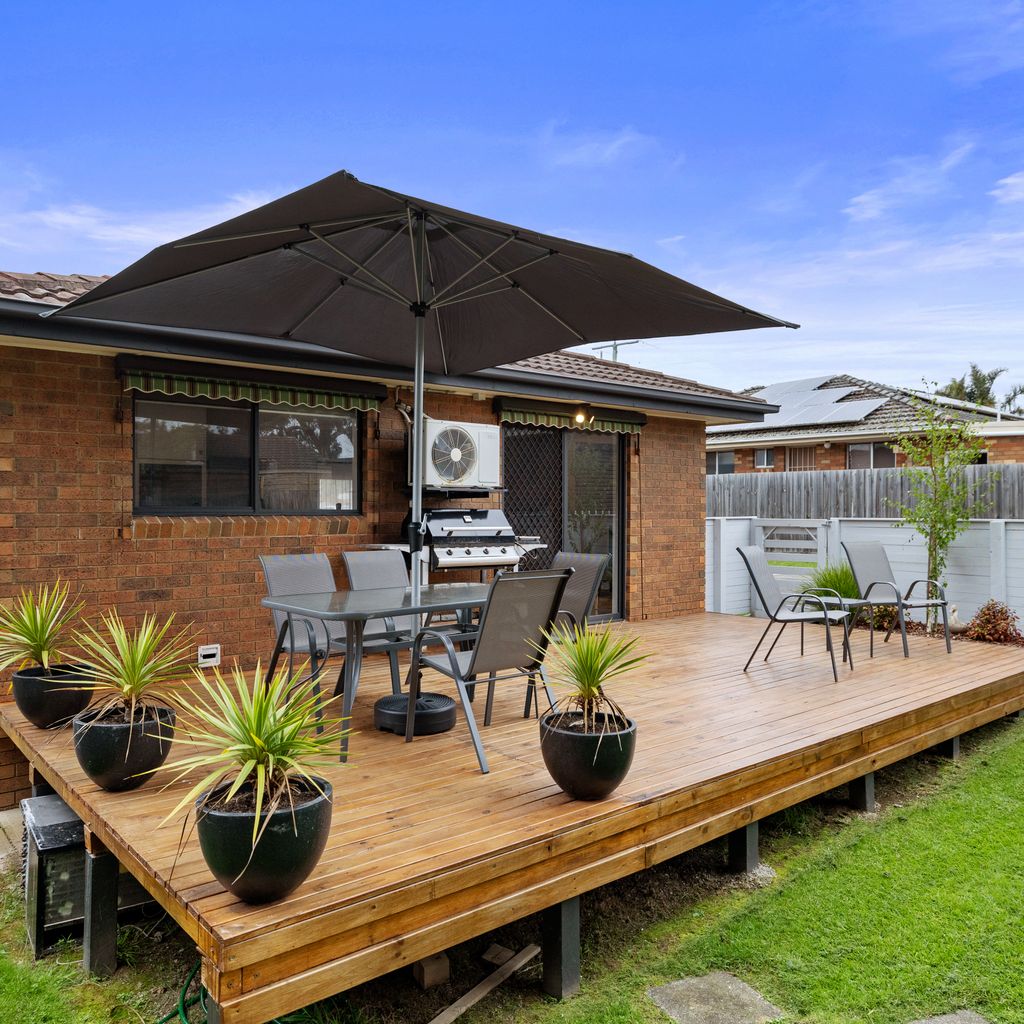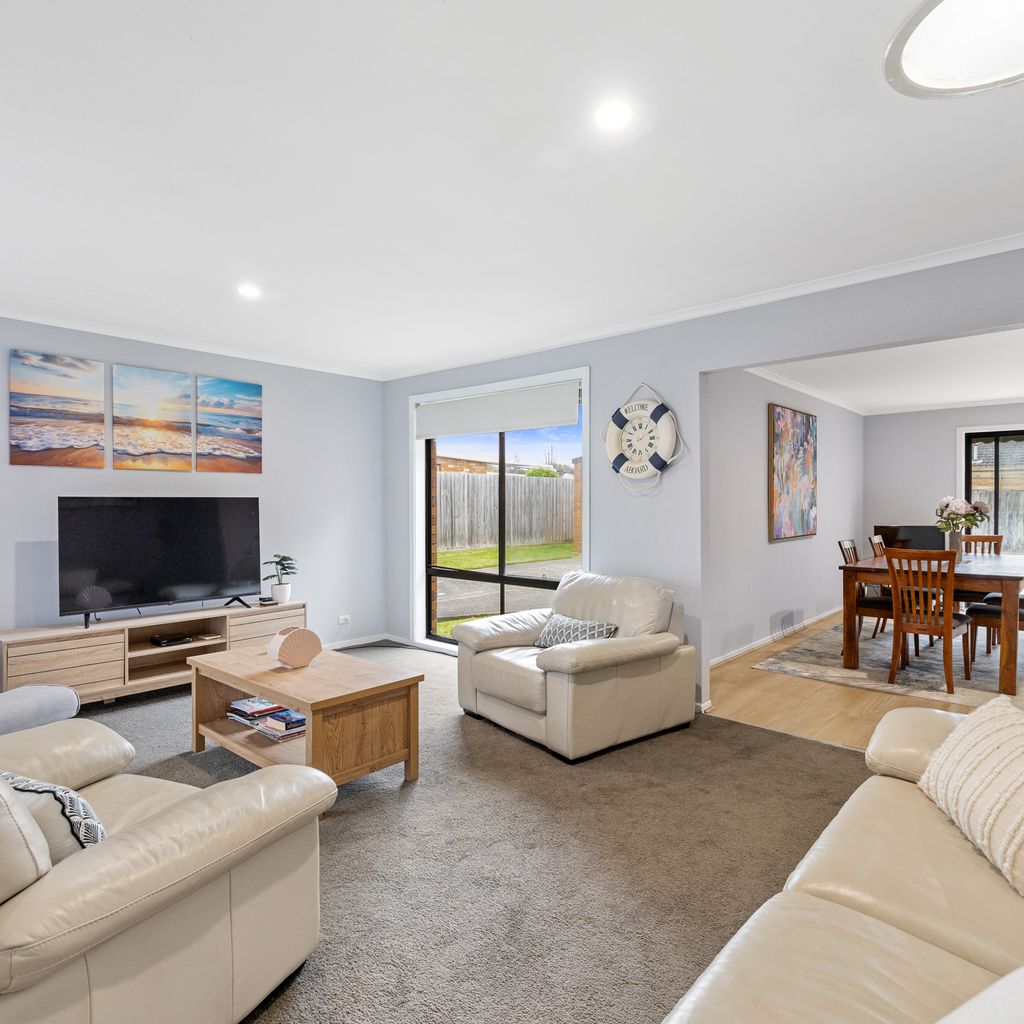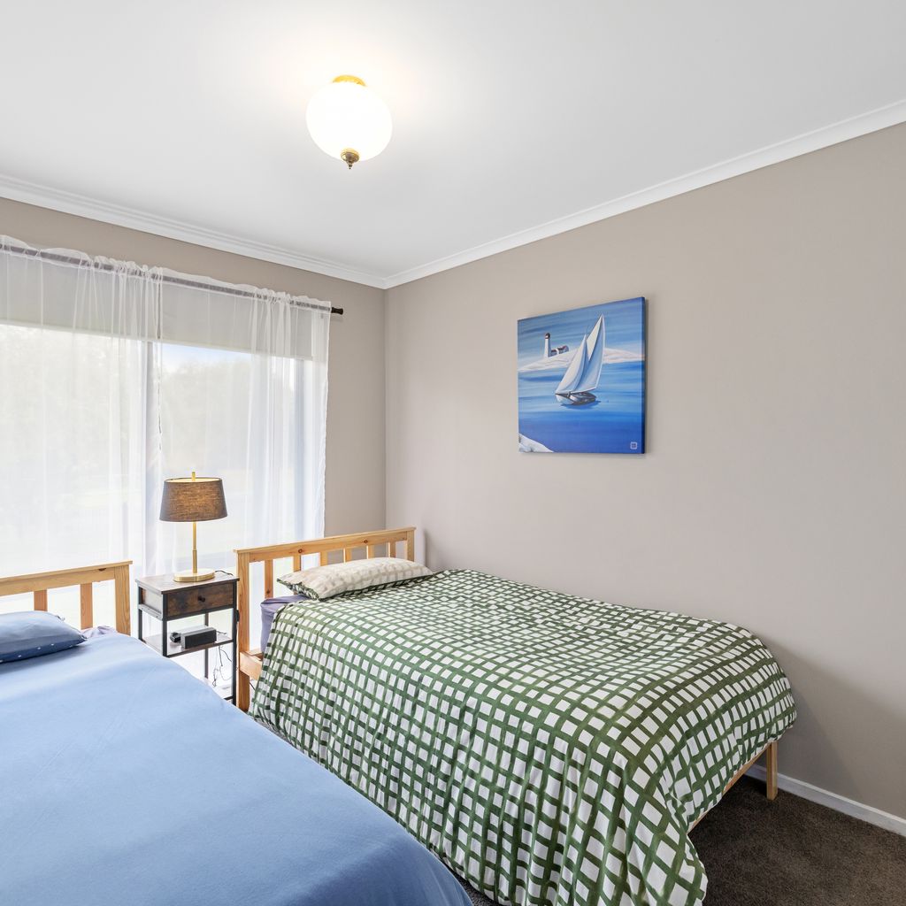 Enjoy a comfortable family getaway in this well-equipped holiday home, perfectly located just minutes from Cowes’ beaches, shops, and cafes. The open-plan kitchen features a dishwasher, coffee pod machine, microwave, and island bench flowing into the dining area. A cosy lounge offers a Smart TV, WiFi, and DVD player for easy entertainment.