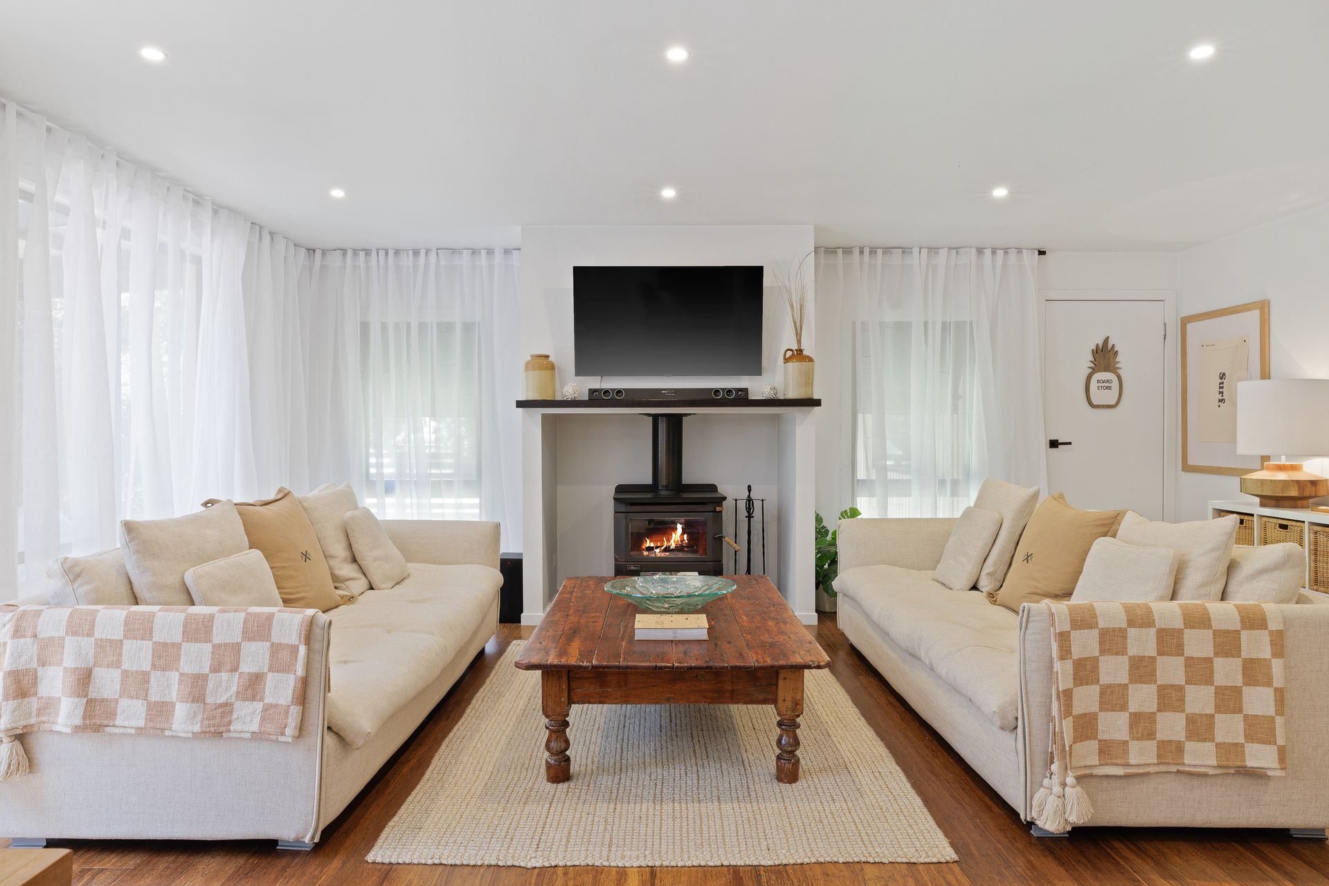 This stunning modern holiday home offers Free Wi-fi for your convenience. A beautiful outdoor area for summer entertaining and woodfire for cozy winter nights