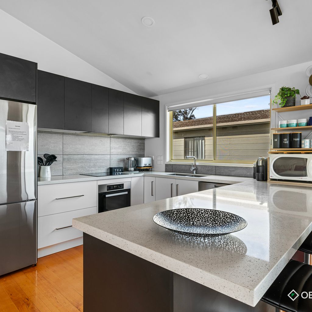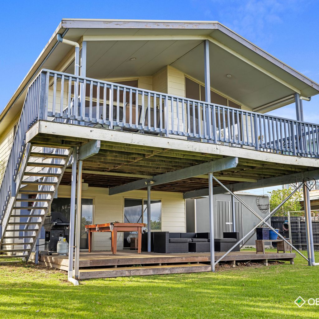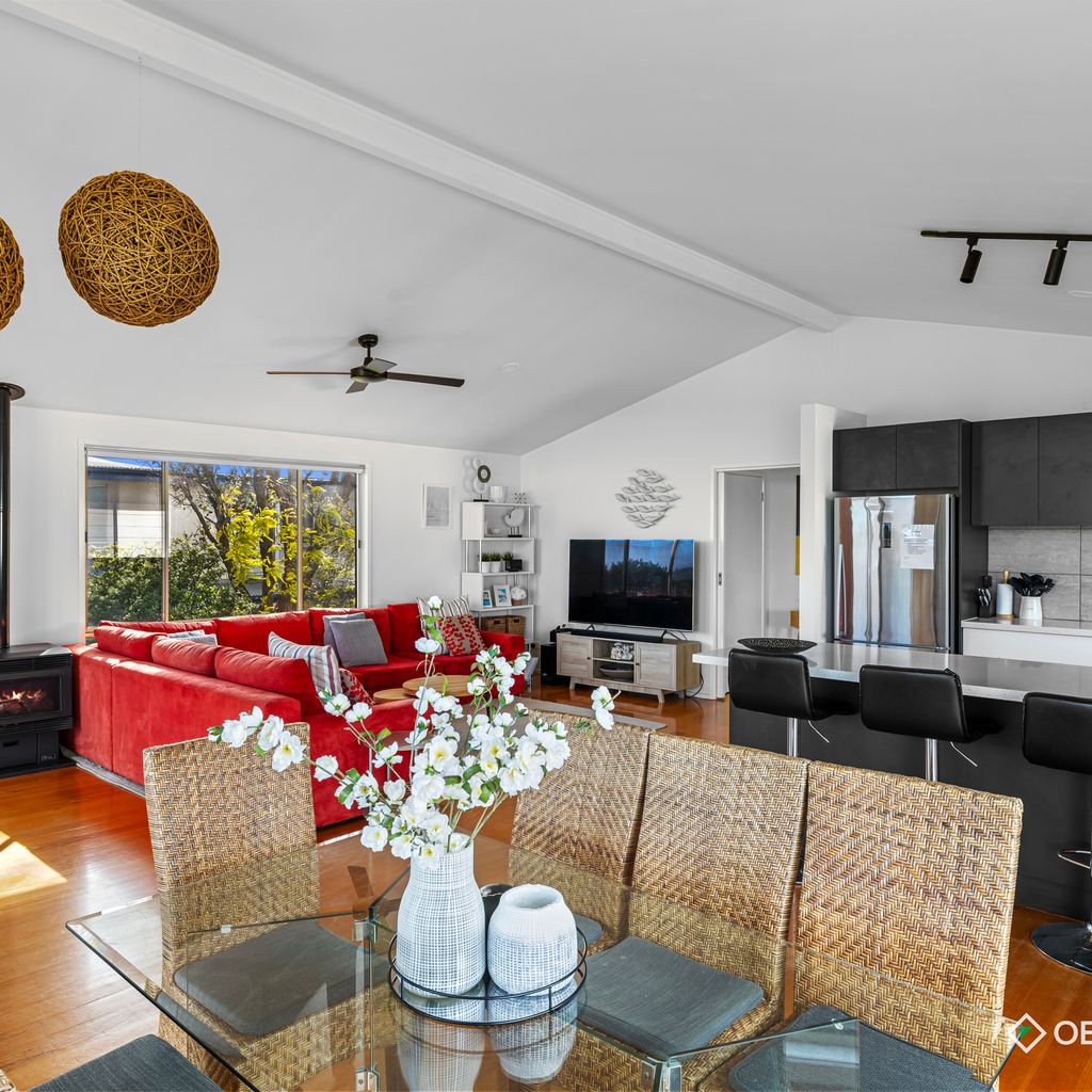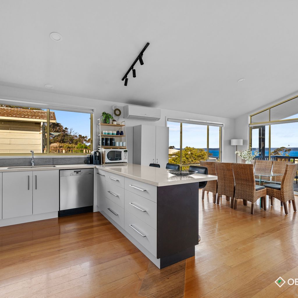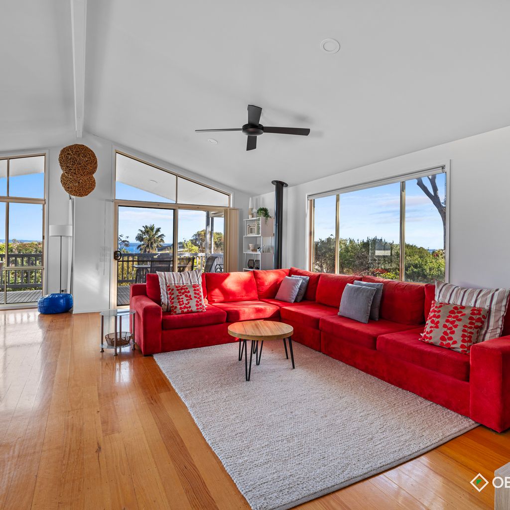 The large upstairs deck is an ideal spot to take in panoramic coastal views—perfect for morning coffees, sunset cocktails, or simply unwinding with the sound of the waves in the distance. Inside, the home is fully equipped for modern living, with a well-appointed kitchen that includes a dishwasher for your convenience. The spacious living room features a cozy gas heater, split system heating/cooling and ceiling fan for year round comfort.