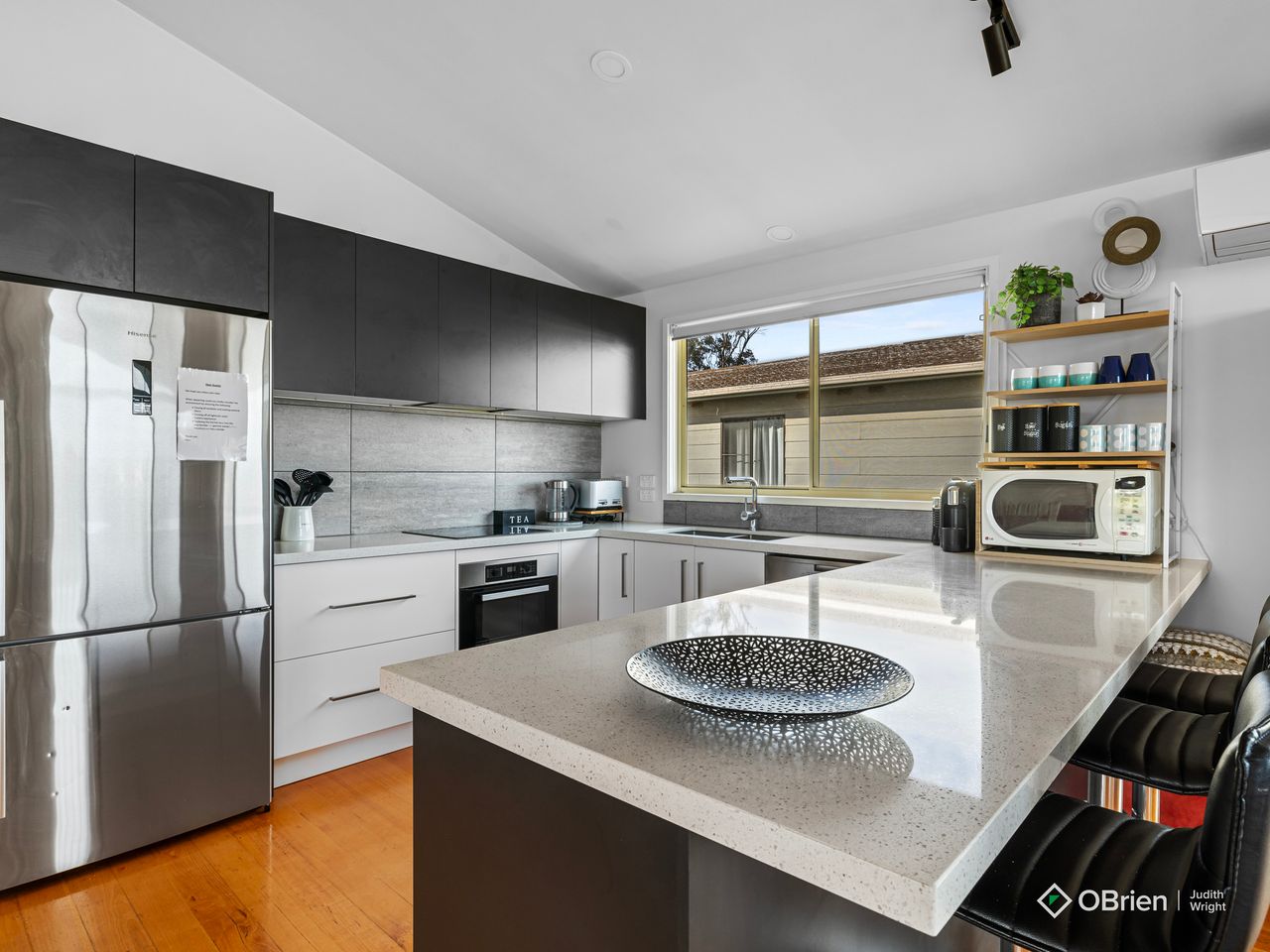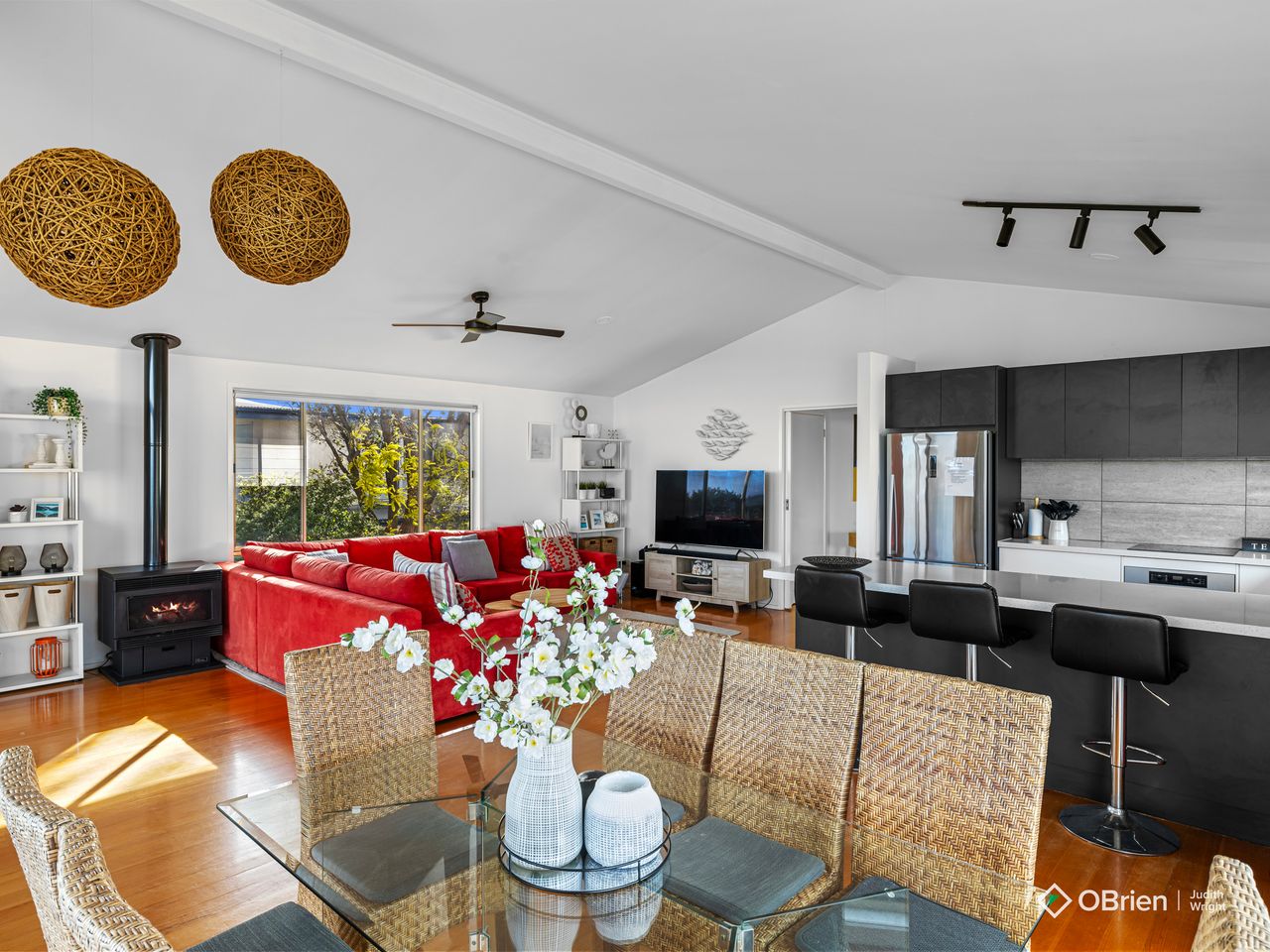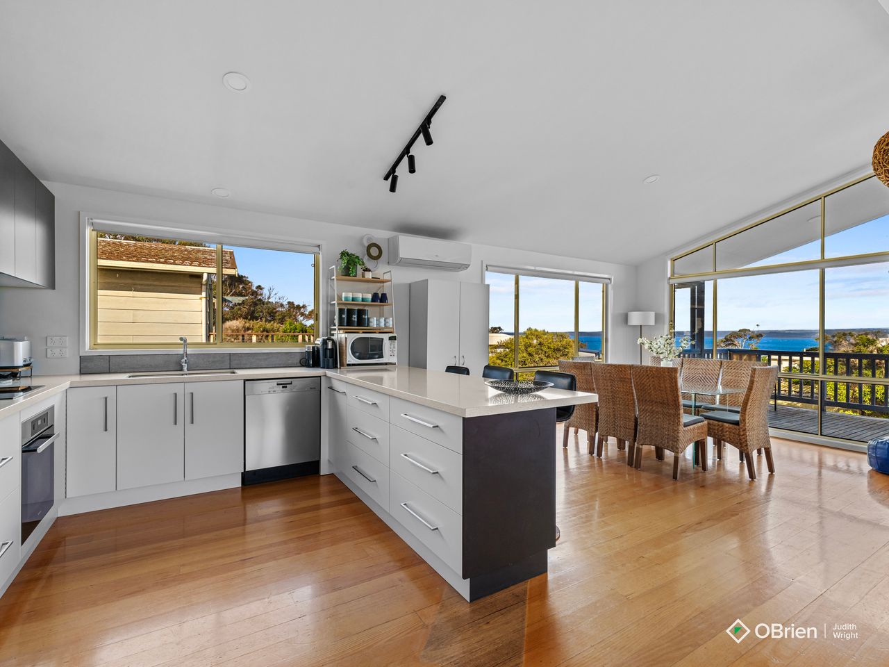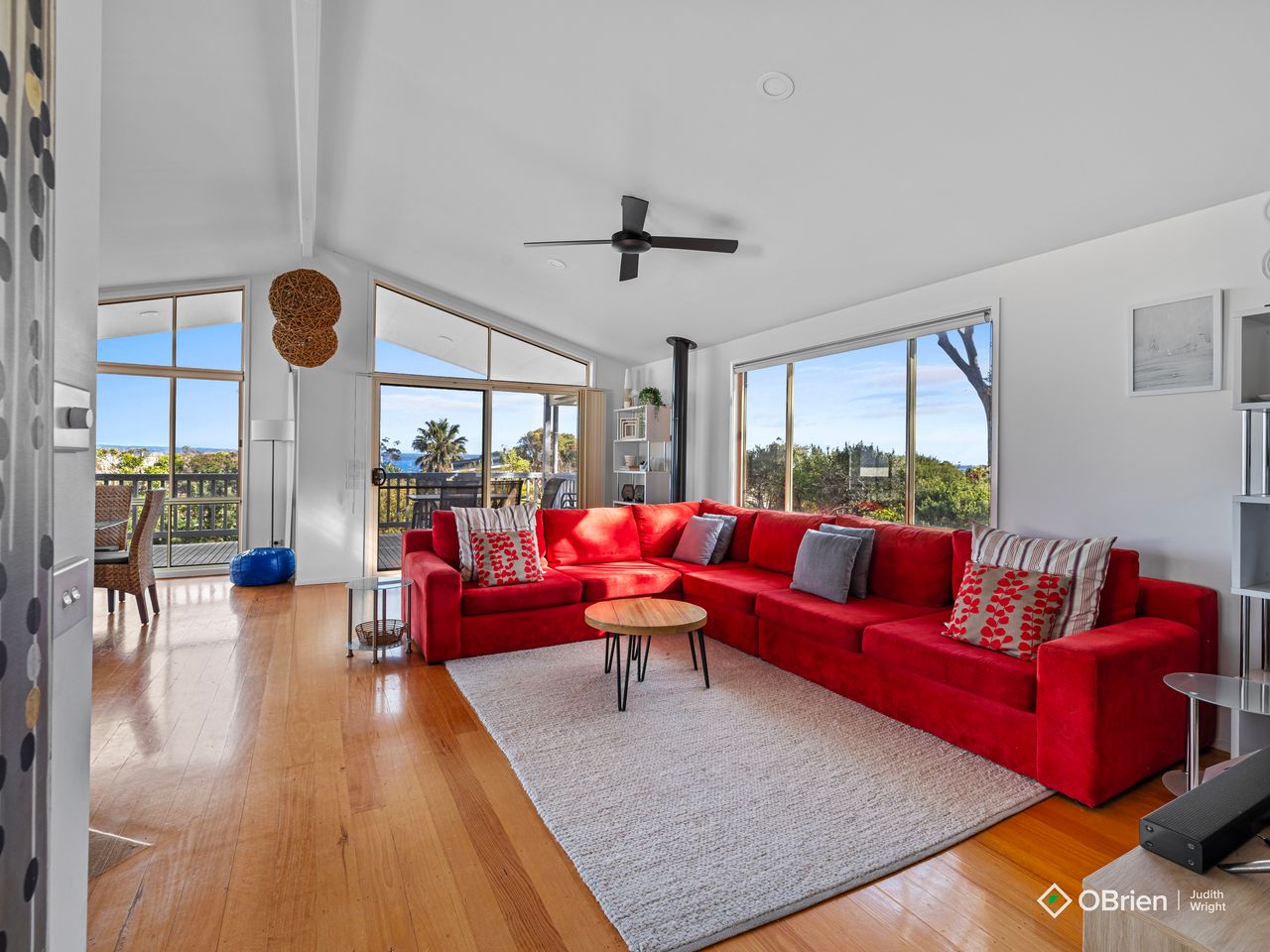 The large upstairs deck is an ideal spot to take in panoramic coastal views—perfect for morning coffees, sunset cocktails, or simply unwinding with the sound of the waves in the distance. Inside, the home is fully equipped for modern living, with a well-appointed kitchen that includes a dishwasher for your convenience. The spacious living room features a cozy gas heater, split system heating/cooling and ceiling fan for year round comfort.