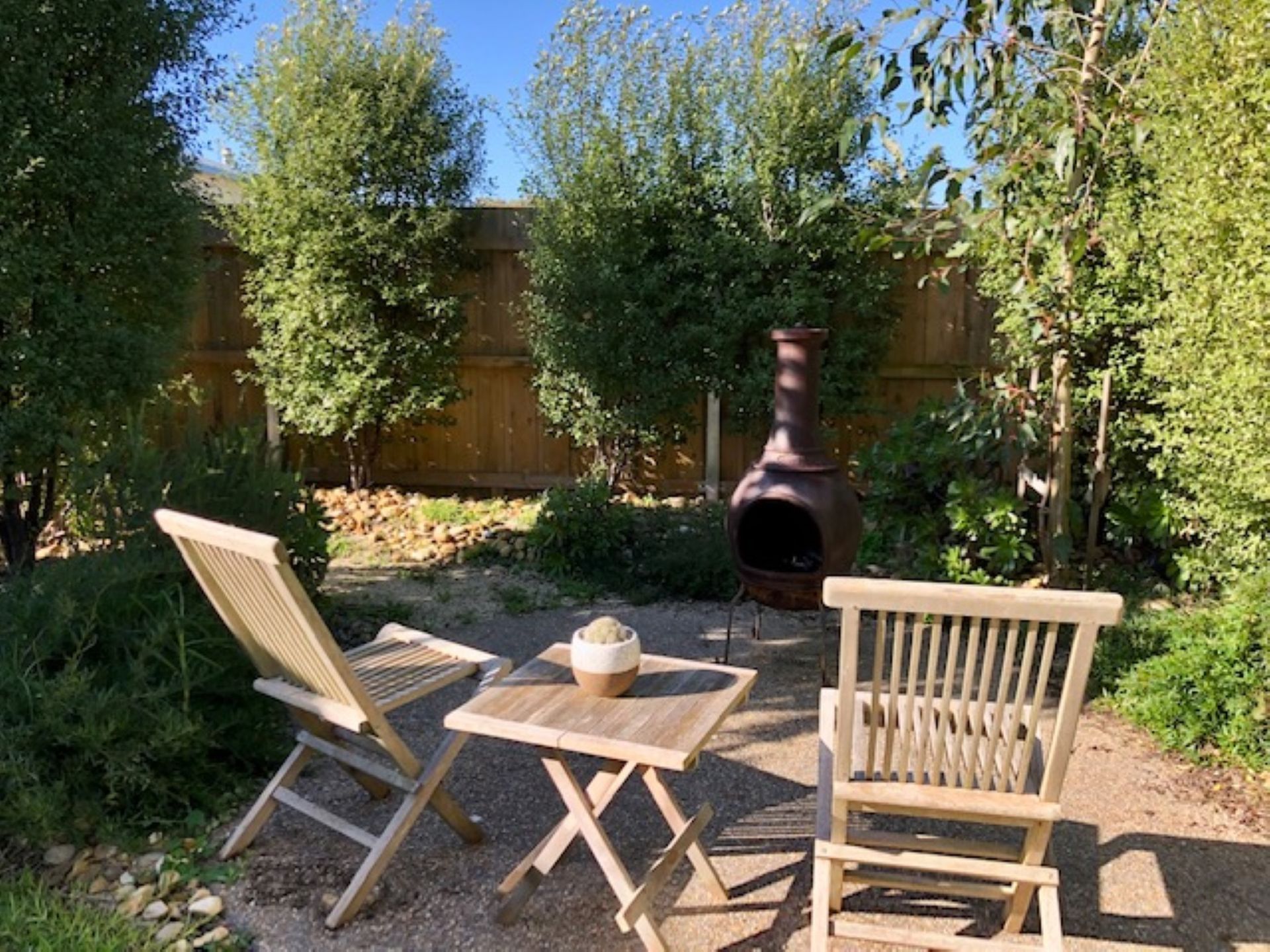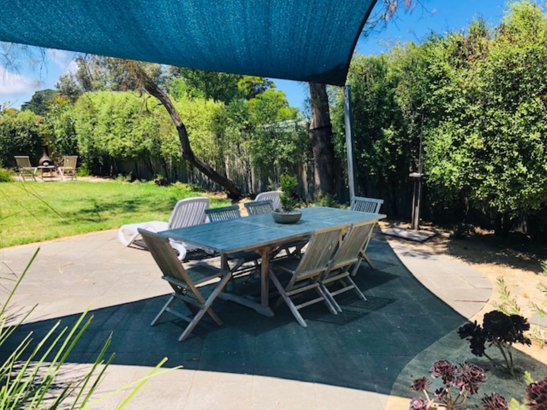 Outside, the expansive garden beckons with a covered deck offering a cosy space with couch, coffee table and bbq. There is also a table setting for 8 beneath a vibrant blue shade sail. Here, children can play on the trampoline, dig in the sandpit, or engage with the multitude of outdoor toys thoughtfully provided.