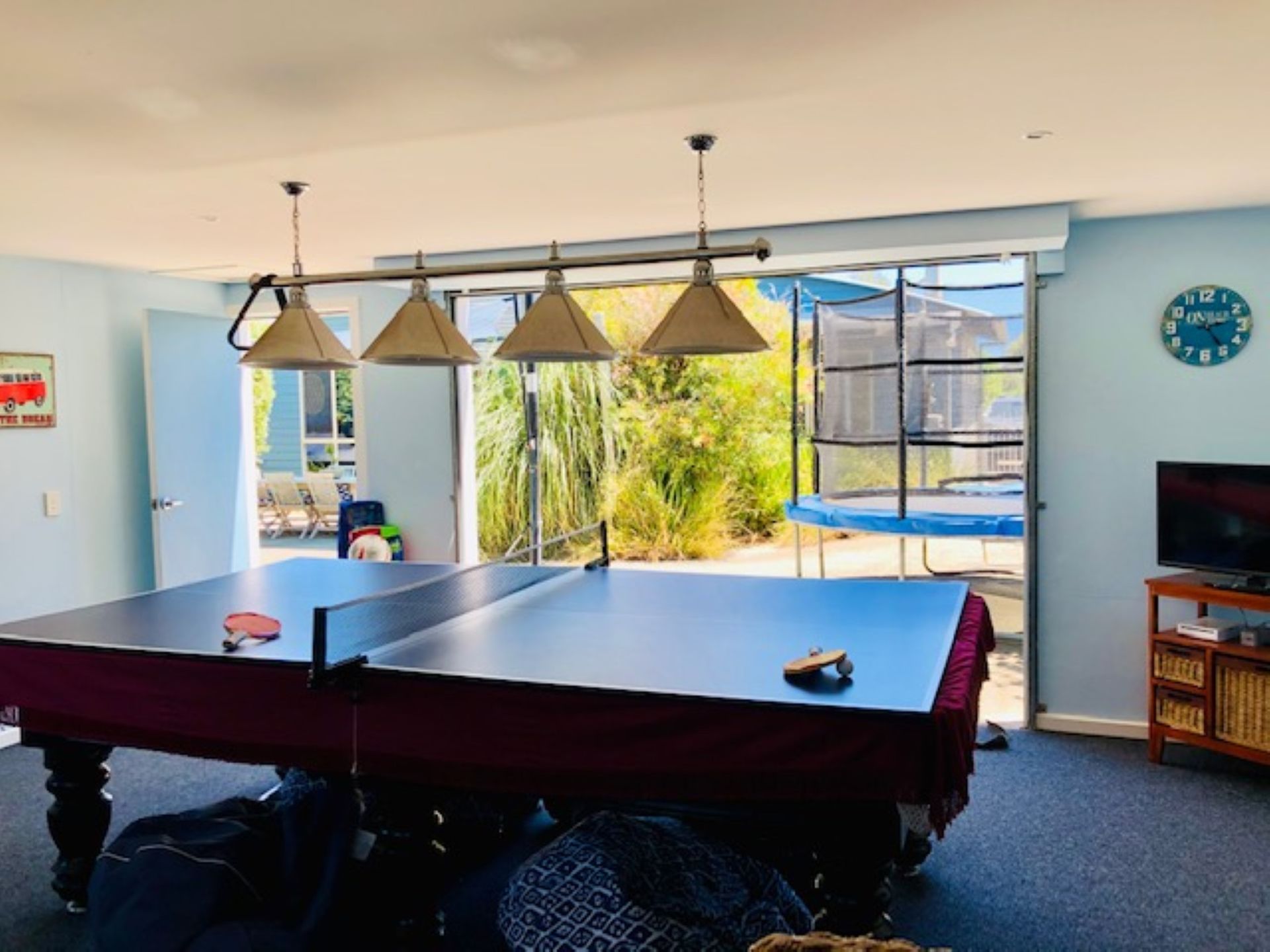 A clever conversion from garage to games room offers a delightful space for both kids and adults to unwind and entertain. Featuring a full-size pool table, a table tennis table, foosball, dartboard, TV/DVD, Playstation, WiFi, bar and stools, an array of toys, and indoor/outdoor bean bags - there's no shortage of amusement options.