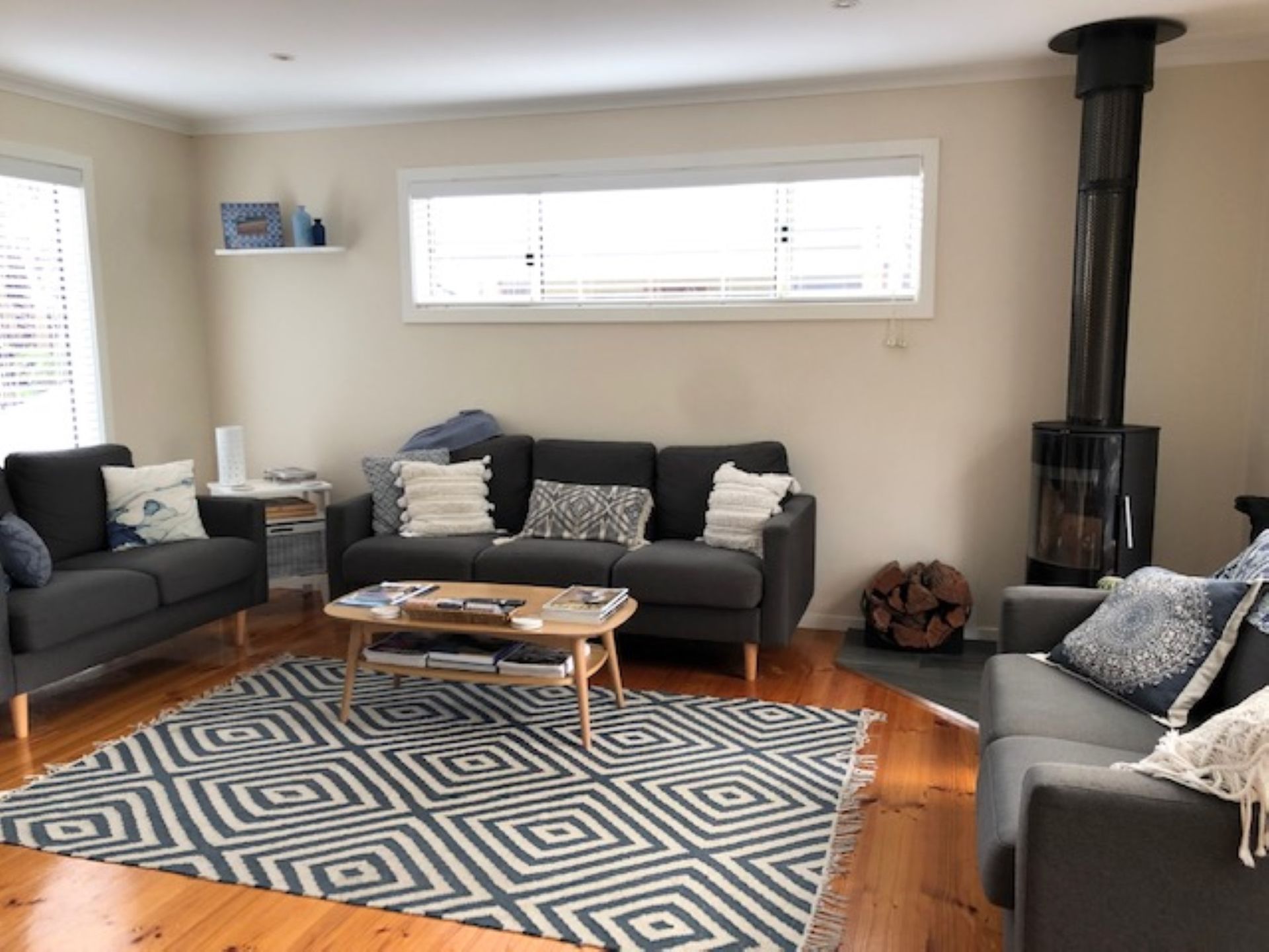 This captivating two-storey beach house exudes an ambiance of lightness and serenity, adorned with tasteful furnishings throughout. The living area features a modern Danish wood heater, inviting warmth and coziness on chilly winter nights, making it an idyllic family refuge accommodating 1-2 families, promising something special for everyone.